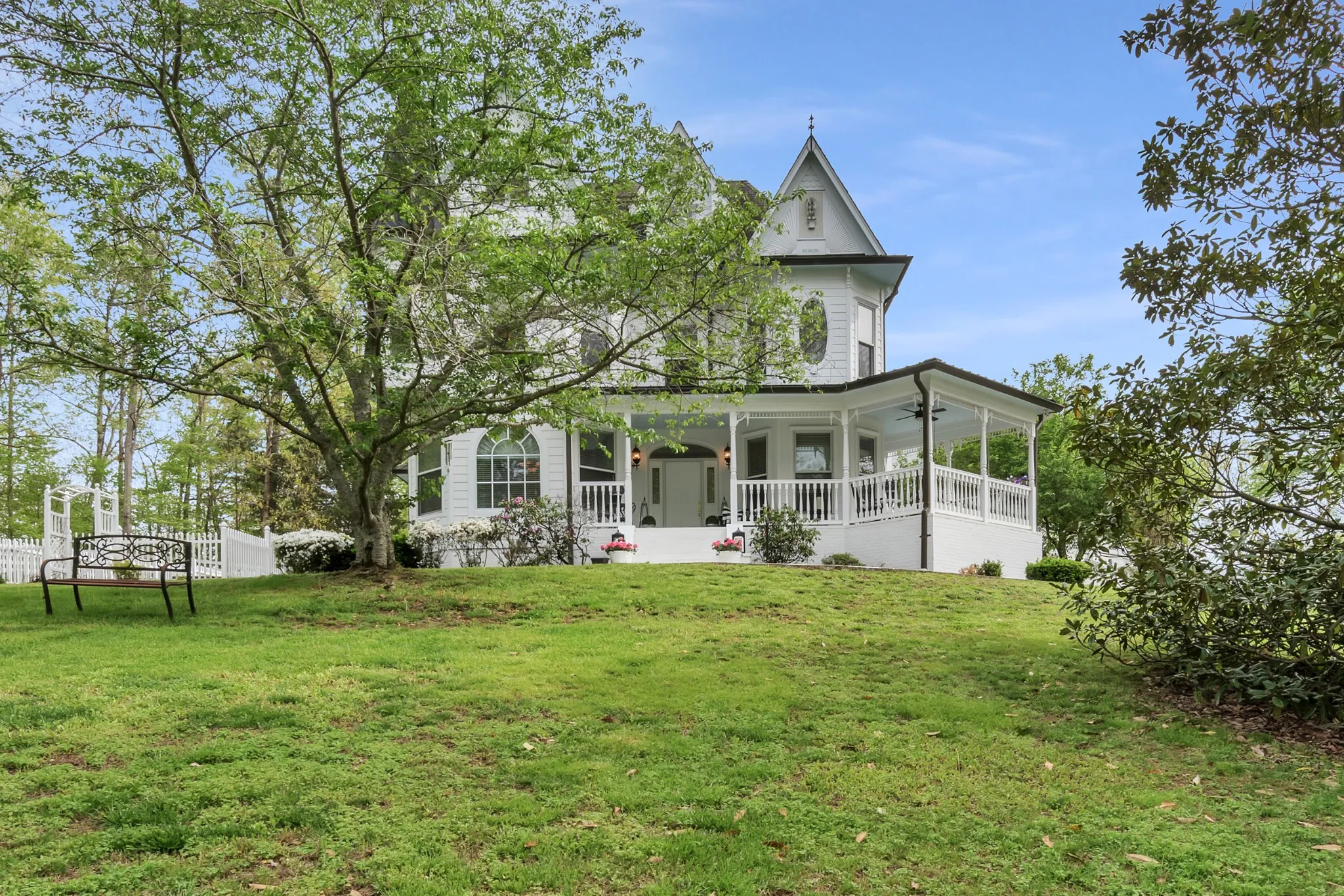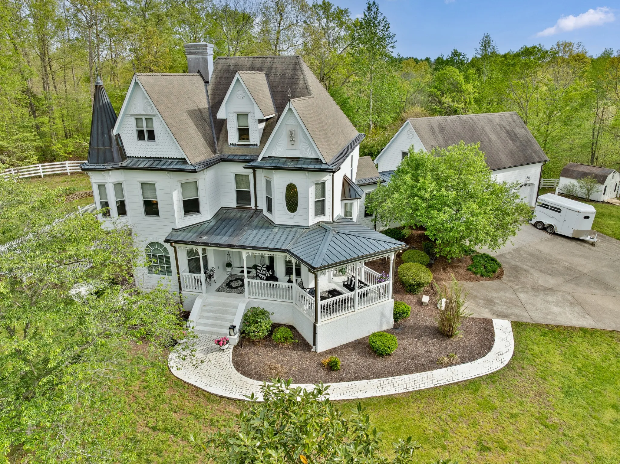 Perched peacefully atop a hill, this stunning 6-bedroom, 3.5-bath Victorian estate sits on 20 fully fenced acres within a 32± acre tract, offering privacy, pastureland, and timeless character. Known as Three Gables, the 4,122 sq ft custom home was built in 2000 for the town’s primary physician and blends classic Victorian architecture with modern convenience.