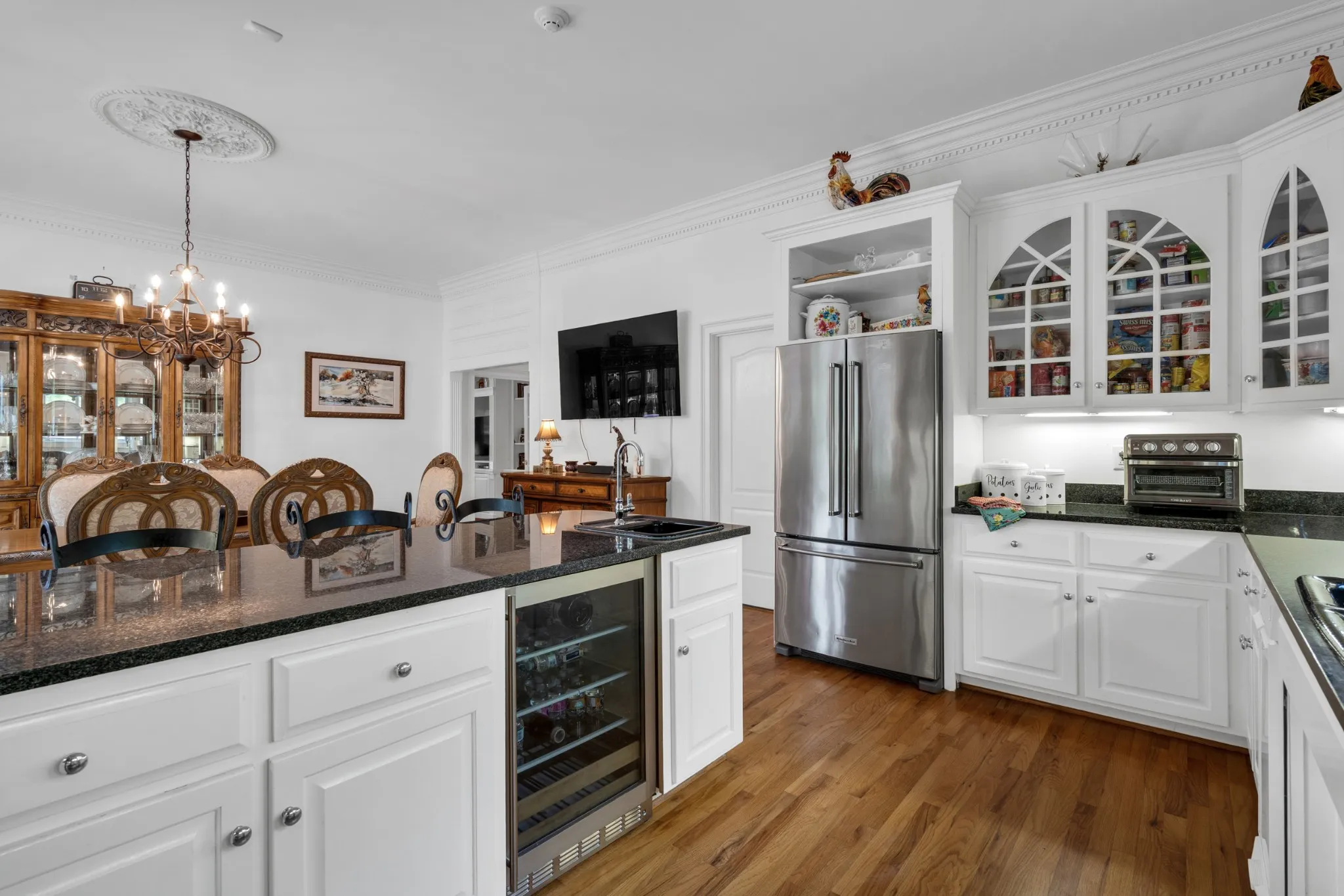 Above the three-bay climate-controlled garage is a private studio apartment with separate entrance, ideal for guests, office space, or creative studio.