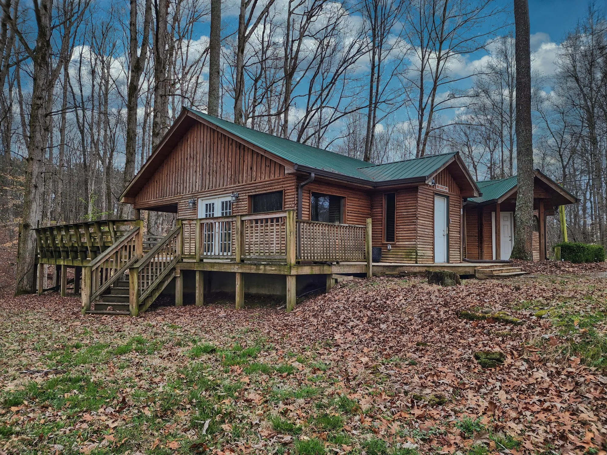 Experience a woodsy resort ambiance perfect for entertaining, featuring an expansive wrap-around deck with built-in seating that overlooks a serene on-property creek. Following a complete professional remodel, the interior boasts stunning architectural details, including vaulted and tray ceilings, recessed lighting, and a blend of ceramic, travertine, and wood flooring accented by decorative medallions.