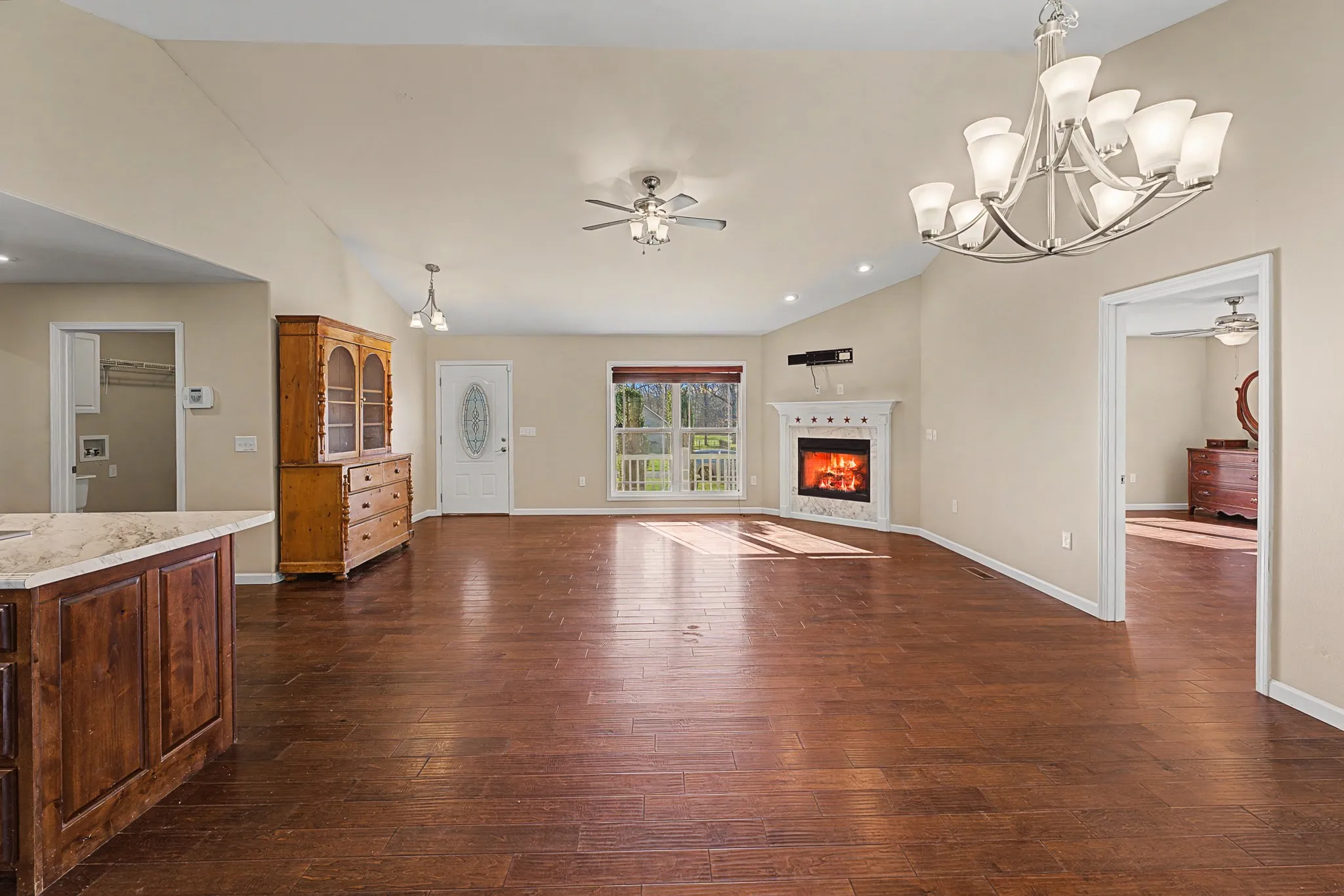 Perfect for lots of family and friends – the open concept living, dining, kitchen has soaring ceilings and a kitchen island to entertain around. Also, the 2-Car garage has been converted to an entertainment room – perfect for a music studio or gaming center! 528 square feet addition