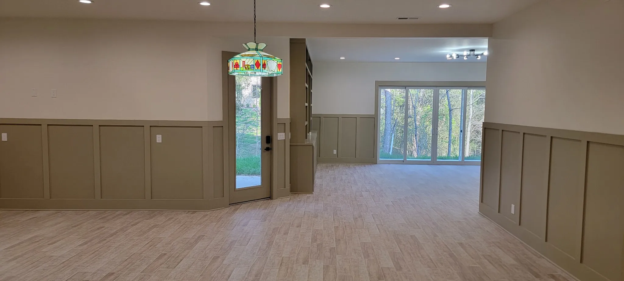 Beautifully finished basement with rec. area, living area, 12′ glass sliders and a private 2 bedroom, fully equipped apartment!