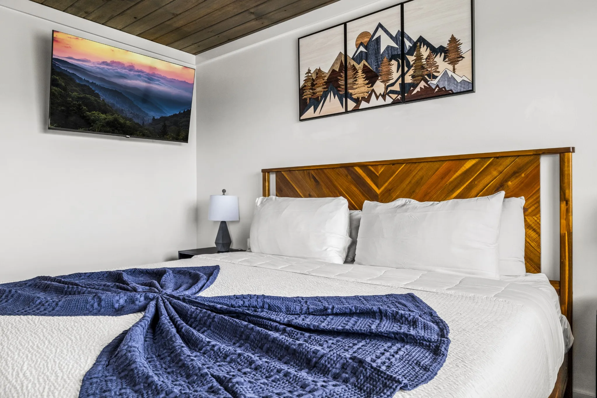ONLINE AUCTION: Freshly renovated and brimming with Smoky Mountain charm, Unit E-106 “Cozy Bear” is a modern rustic 1-bedroom, 1-bathroom condo offering a front-row seat to Gatlinburg’s most iconic vistas. Whether you are sipping coffee on the private balcony as the morning mist rolls over the peaks or curling up on the chic emerald velvet sleeper sofa under the glow of the wood-burning fireplace, this unit offers the perfect blend of cozy and sophisticated mountain living. The interior features an open-concept living area with breathtaking mountain views through large sliding glass doors and an upgraded kitchen fully equipped with stainless steel appliances, a coffee maker, and all the essentials needed for a seamless, income-generating transition. Outside, your private balcony with seating provides an unobstructed, panoramic view of the Smokies—ideal for sunrise coffee or midnight stargazing.