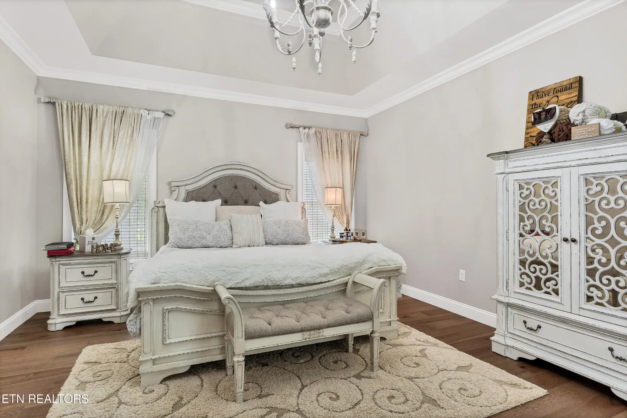 The main level primary suit boasts trey ceilings, a spacious high end spa like bath, and custom designed walk-in closet. Weather you’re relaxing in the over-sized soaking tub or stepping into your large walk-in jetted shower, you’ll find relaxation and retreat with everyday! This master suit was customized with the highest regard for craftsmanship and design.