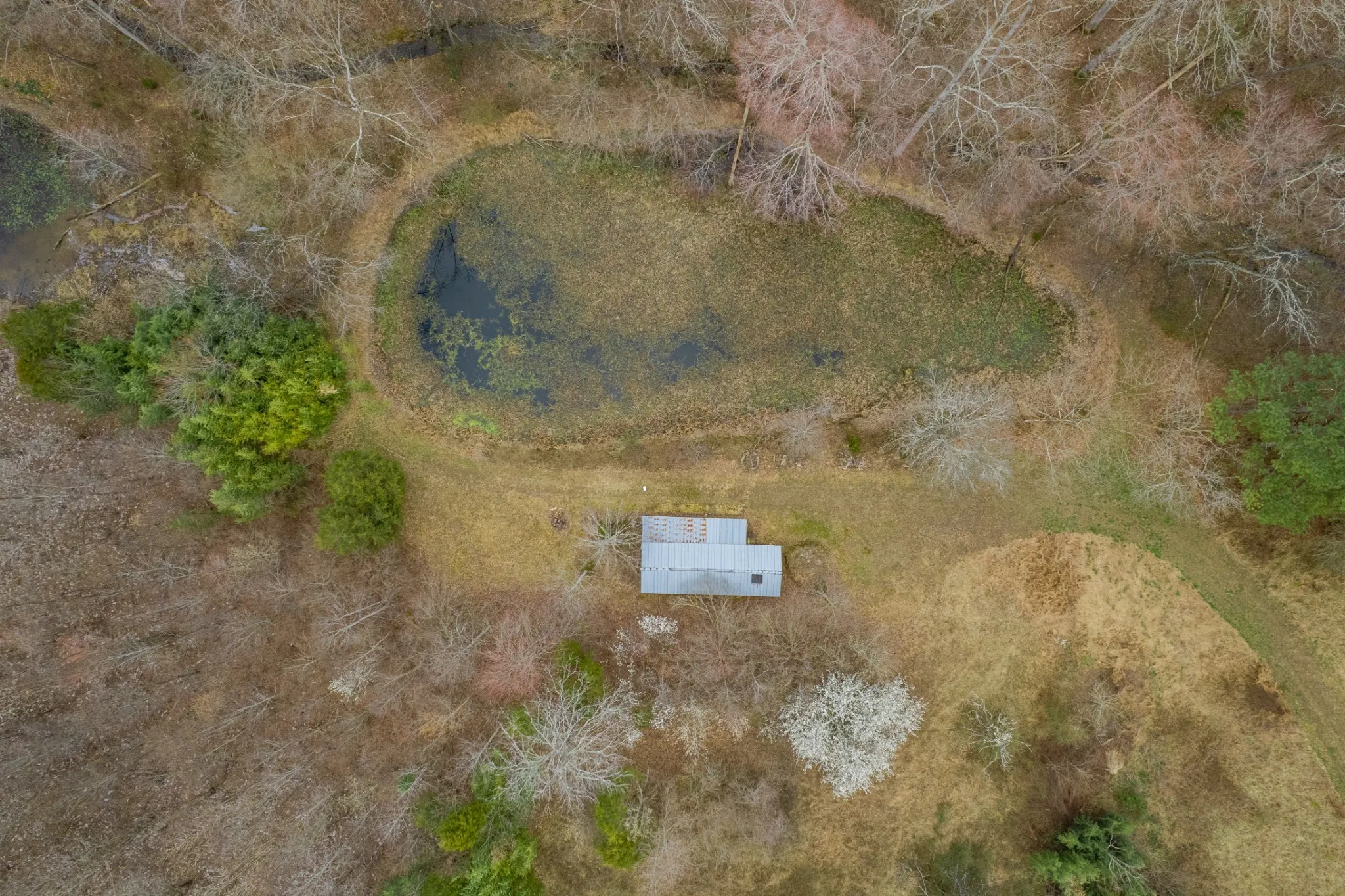 Rare Opportunity – 37 Acres of Prime Hunting Land with Creek, Two Ponds & Established Wildlife Habitat. Don’t miss the chance to own generational property that has never before been offered for sale. This 37+/- acre tract in Lawrence County offers an exceptional combination of multiple water sources, established food plots, and excellent wildlife habitat, making it a true sportsman’s paradise. The property features a year-round creek running through the land, a 1-acre pond, and an additional half-acre pond, creating an ideal environment for wildlife and recreation. The mix of open fields and wooded acreage provides excellent cover and natural travel corridors for deer and other game. This property is already set up for hunting with multiple ladder stands, an elevated quad pod, and several deer feeders for off-season feeding. Large food plot area already established. The seller has also planted Sawtooth Oak trees expected to begin producing acorns within the next few years, further enhancing the habitat. A unique two-story woodshed provides extensive storage, while the upper level features a heated elevated shooting blind with a wood stove overlooking the food plots, offering incredible views during hunting season and enough space to relax or stay overnight. For added convenience, the property includes field dressing winches located at both the woodshed and the red cabin, allowing hunters to back directly in and process game with ease. With its rare combination of creek frontage, two ponds, established food plots, and hunting infrastructure already in place, this property offers an outstanding opportunity for hunting, recreation, or creating a private rural retreat. Properties with this combination of water features and established wildlife habitat rarely become available. Enjoy the privacy of rural Lawrence County while being just a short drive to Lawrenceburg, and Florence, Alabama.