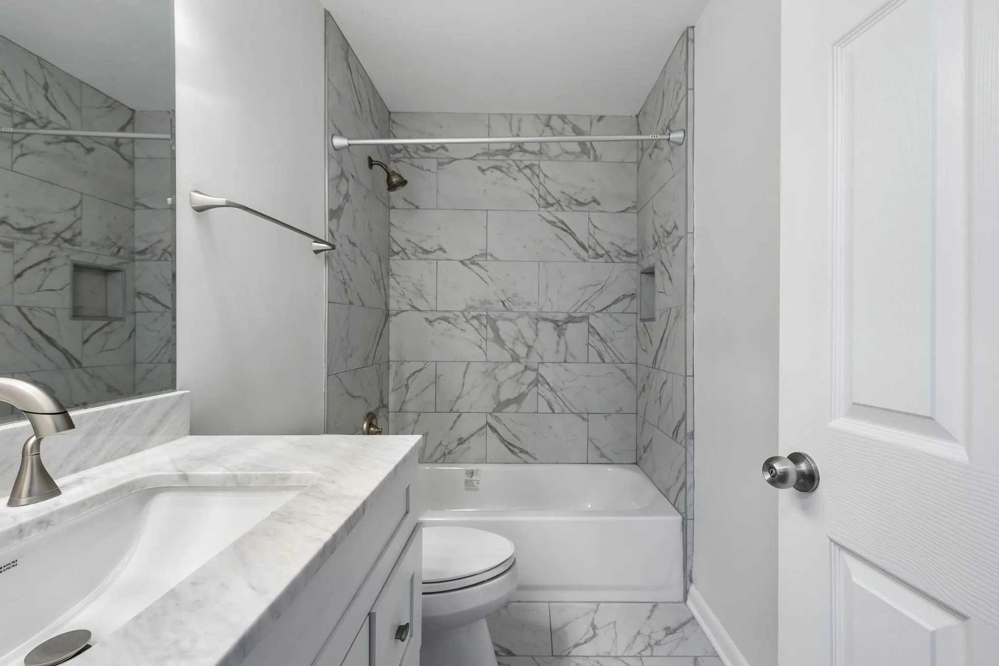 Inside, you’ll find stylish finishes including marble and granite countertops, Moen fixtures, and new flooring throughout. The bathrooms were remodeled in 2024/2025, and the home features practical storage with a linen closet in the hallway, coat closet, storage closet, and a primary bedroom closet organizer.