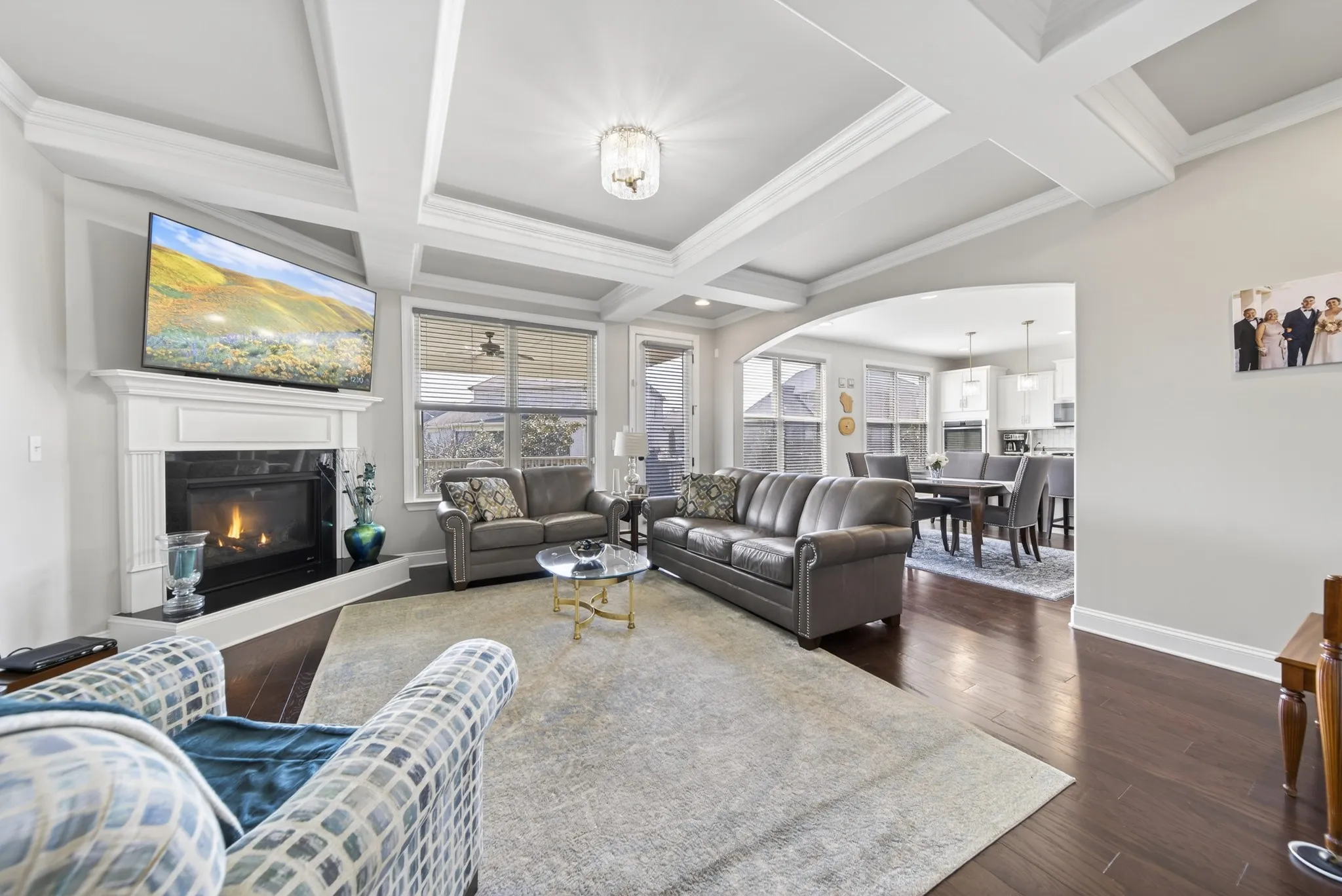 Model Home Condition! Like New! Meticulously Maintained Original Owners! 4 Bedroom with Main Floor Primary Suite! Open Floor Plan with Coffered Ceiling in Main Living Area with Gas Fireplace. Wood floors on Main level, large granite island and big pantry in kitchen, and spacious Formal Dining Room. Beautifully landscaped very usable back yard with perfect sitting area on the Covered back deck! Carpet and Paint are New…. Truly Move in Condition!