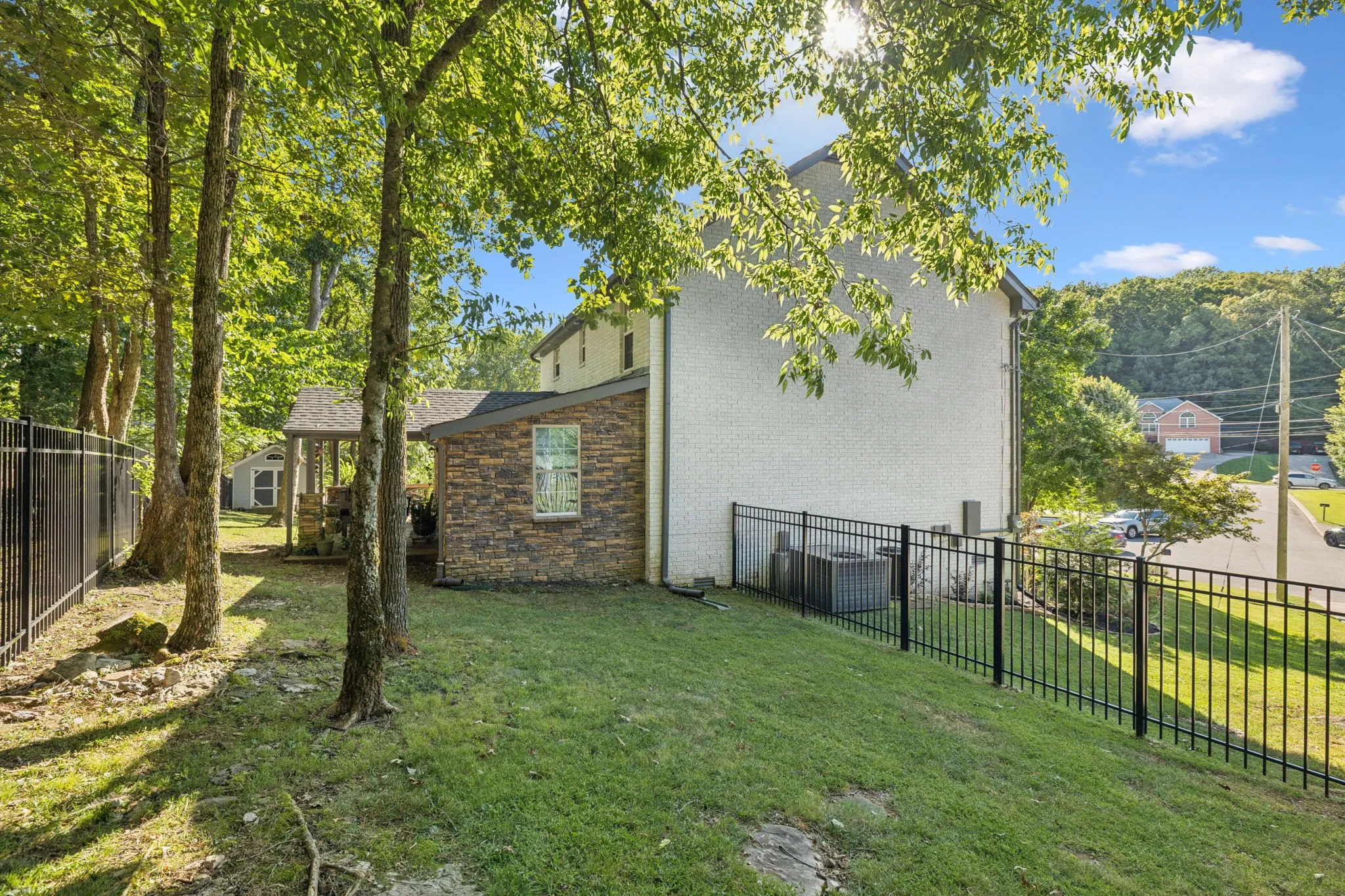 Outdoor living is just as impressive with a covered patio, large deck, fenced backyard, and storage shed—all surrounded by fresh landscaping that creates a peaceful and private backyard setting.