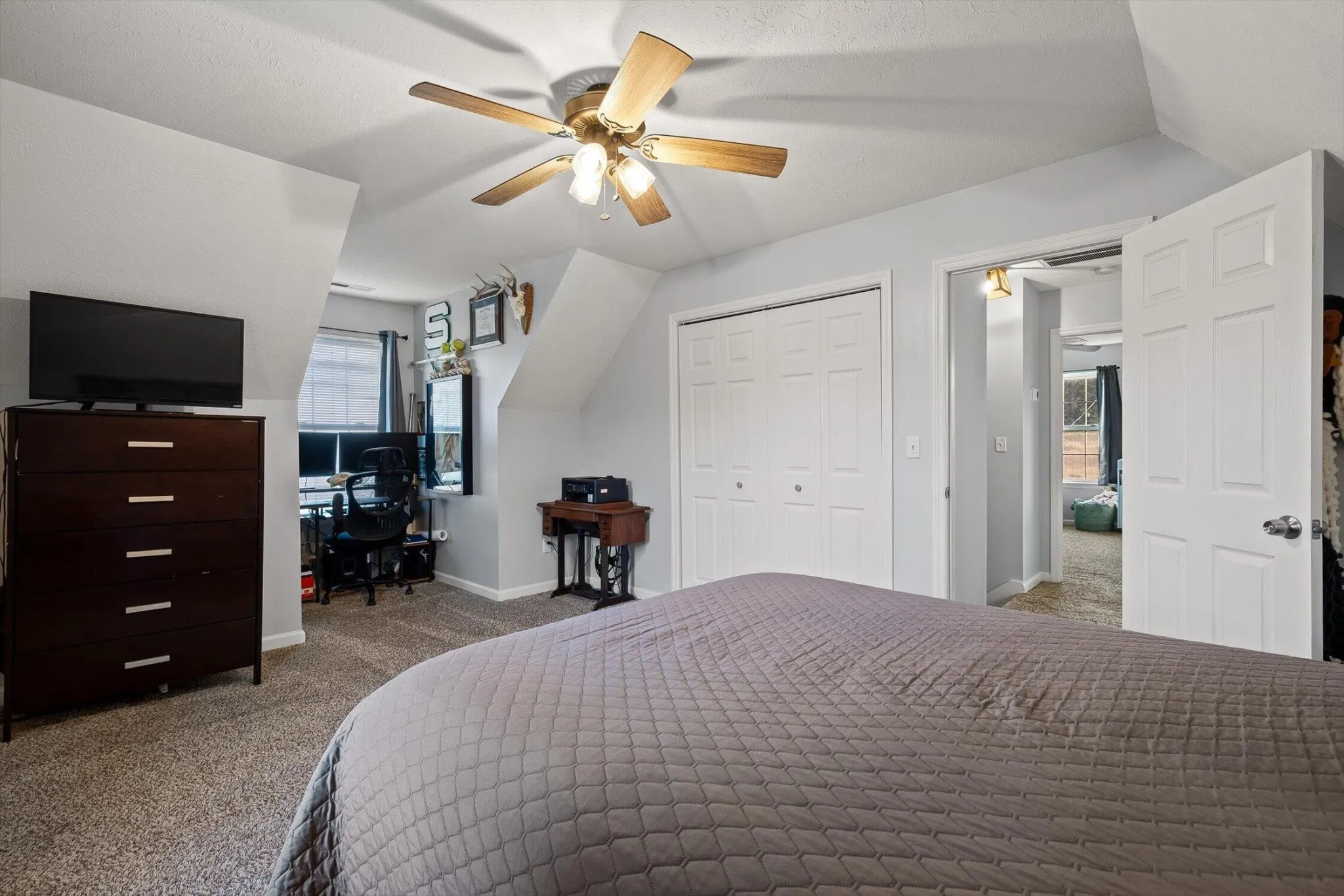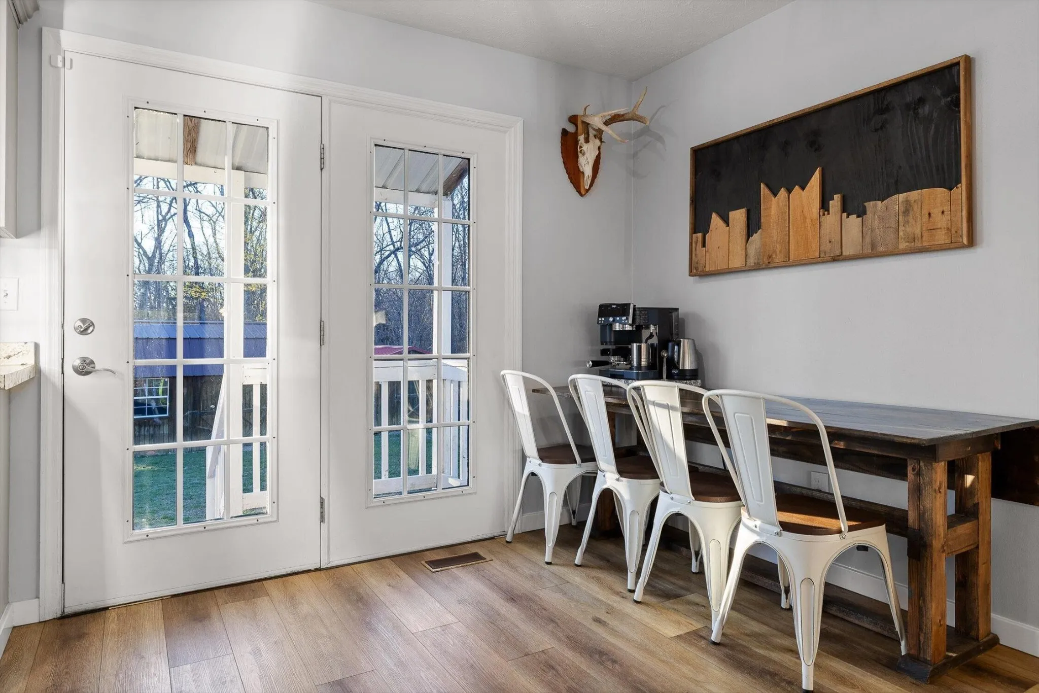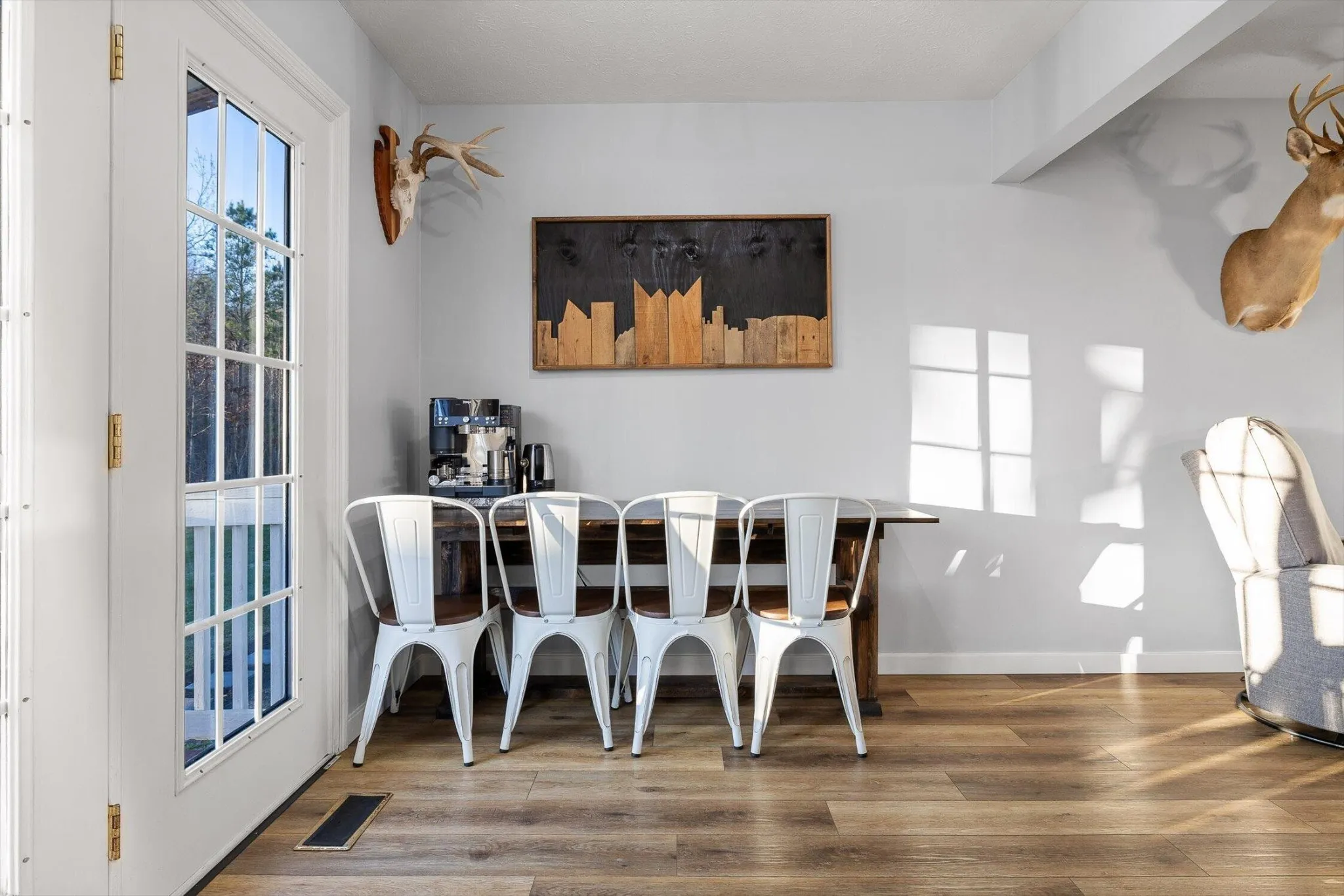 Inside, you’ll find a warm and inviting living space centered around a real wood-burning fireplace. The home also features updated flooring, a bright kitchen with stainless steel appliances, all the cabinet space, a main level primary suite, and a full laundry room for all the extra boot storage.