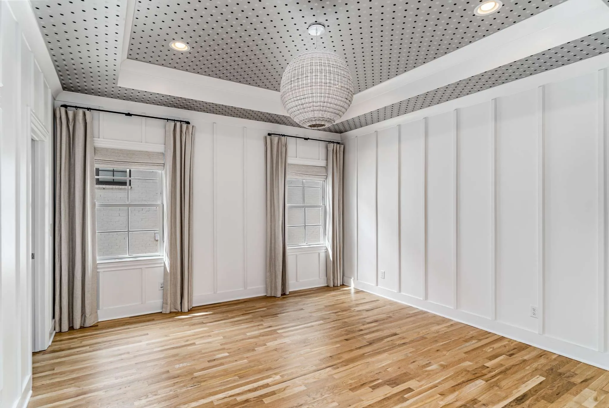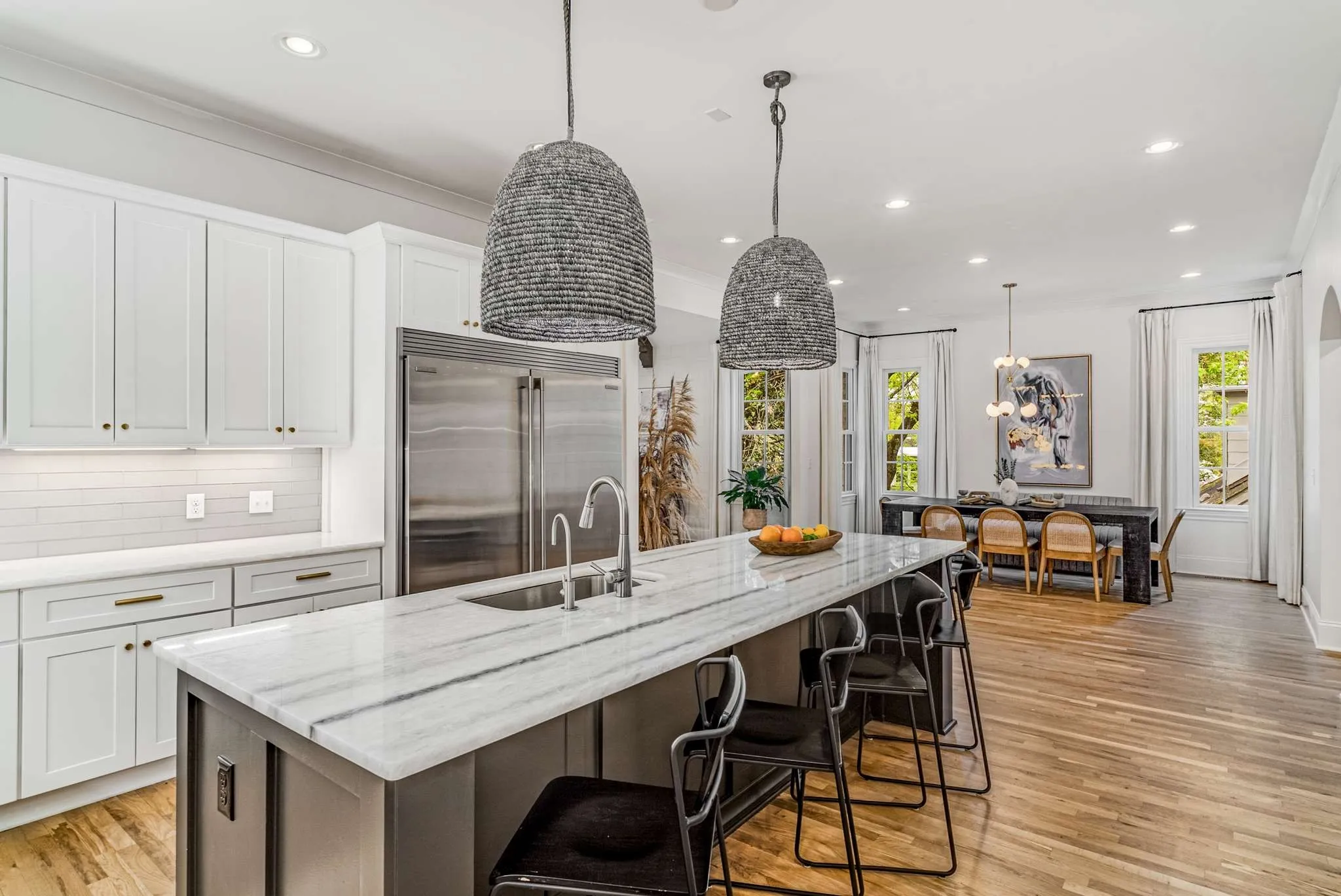 *Seller is offering $8,375 in concessions for buyers closing costs, rate buy-down, etc.* Just moments away from tons of shopping, dinning & entertainment! Custom wall papers, fresh paint, newly refinished hardwoods, and designer light fixtures. The main level boasts soaring ceilings, a modernized fireplace & a marble primary bathroom that exudes modern elegance. The kitchen features a large walk-in pantry, Jenn Air appliances including a 60-inch side-by-side refrigerator, & an oversized island. The open-concept layout seamlessly connects the kitchen and dining to the living area, creating a perfect space for entertaining family & friends. Relax & unwind on the covered patio overlooking the fully fenced backyard. Upstairs you’ll find a bonus space & a custom built-in bar, offering additional areas for recreation & relaxation. 5th bedroom can be multipurpose, with tons of natural light, making it an ideal setting for those who work from home, or an additional bonus room.