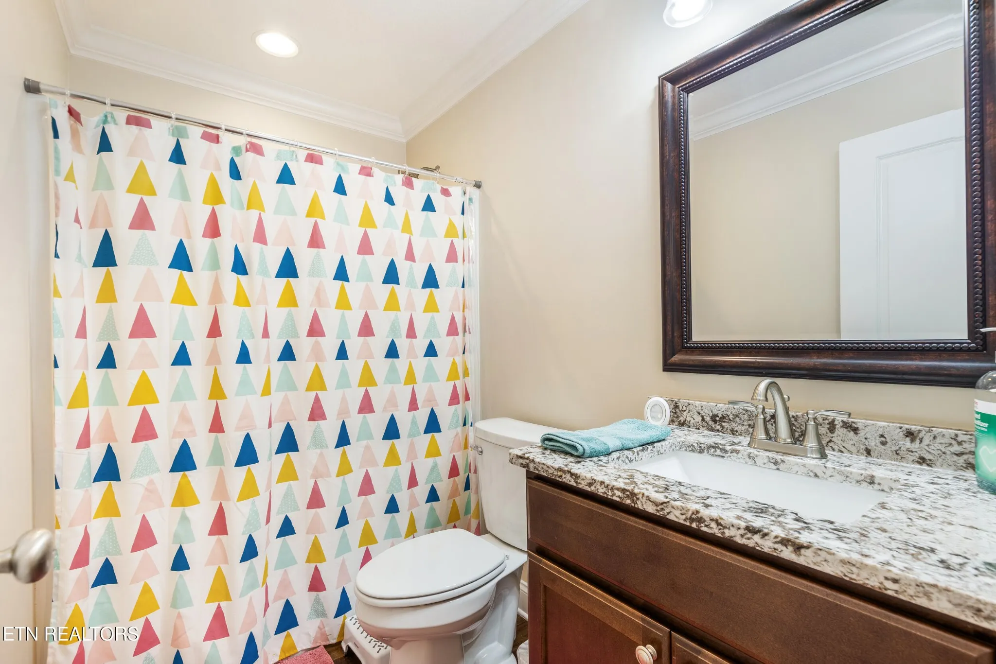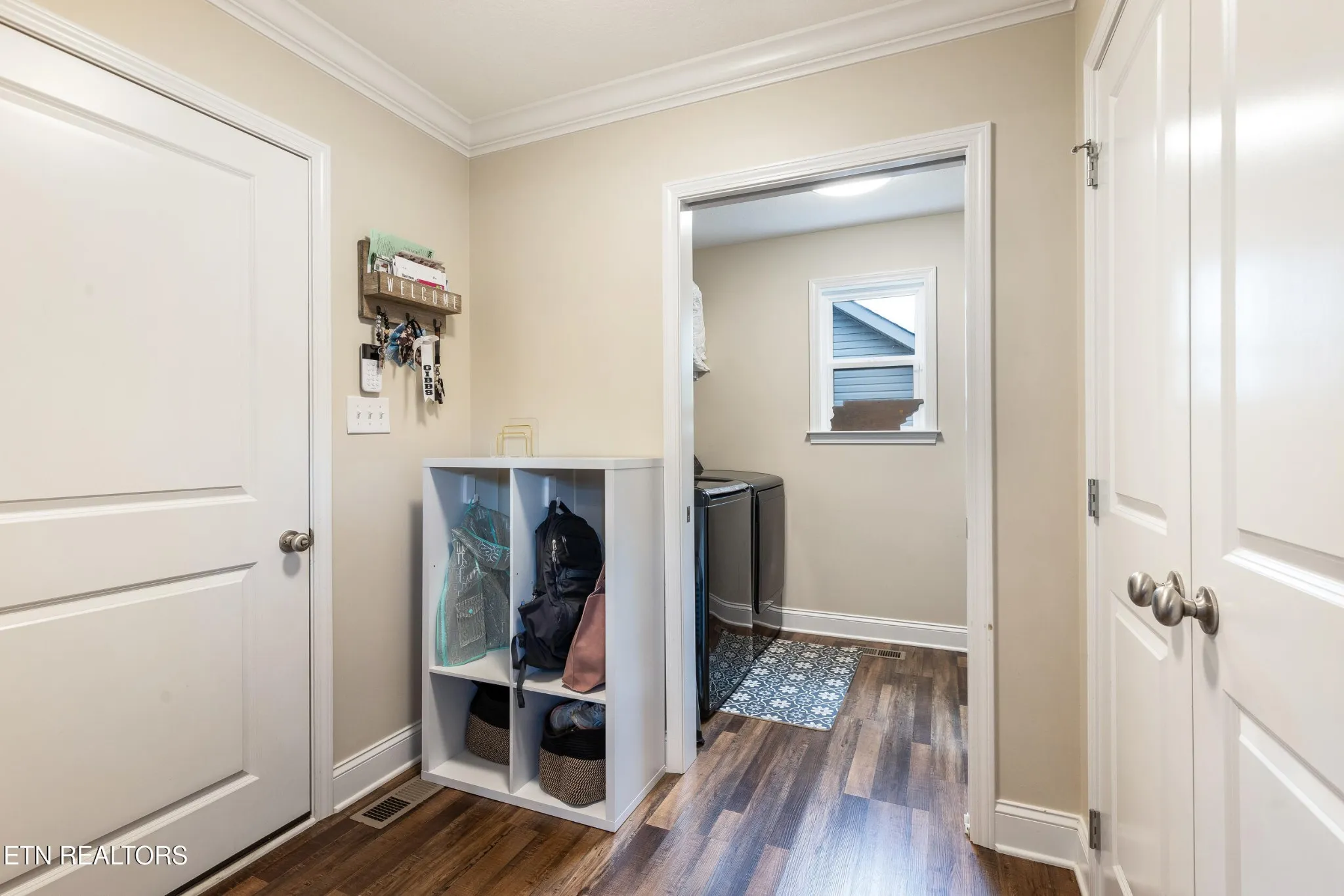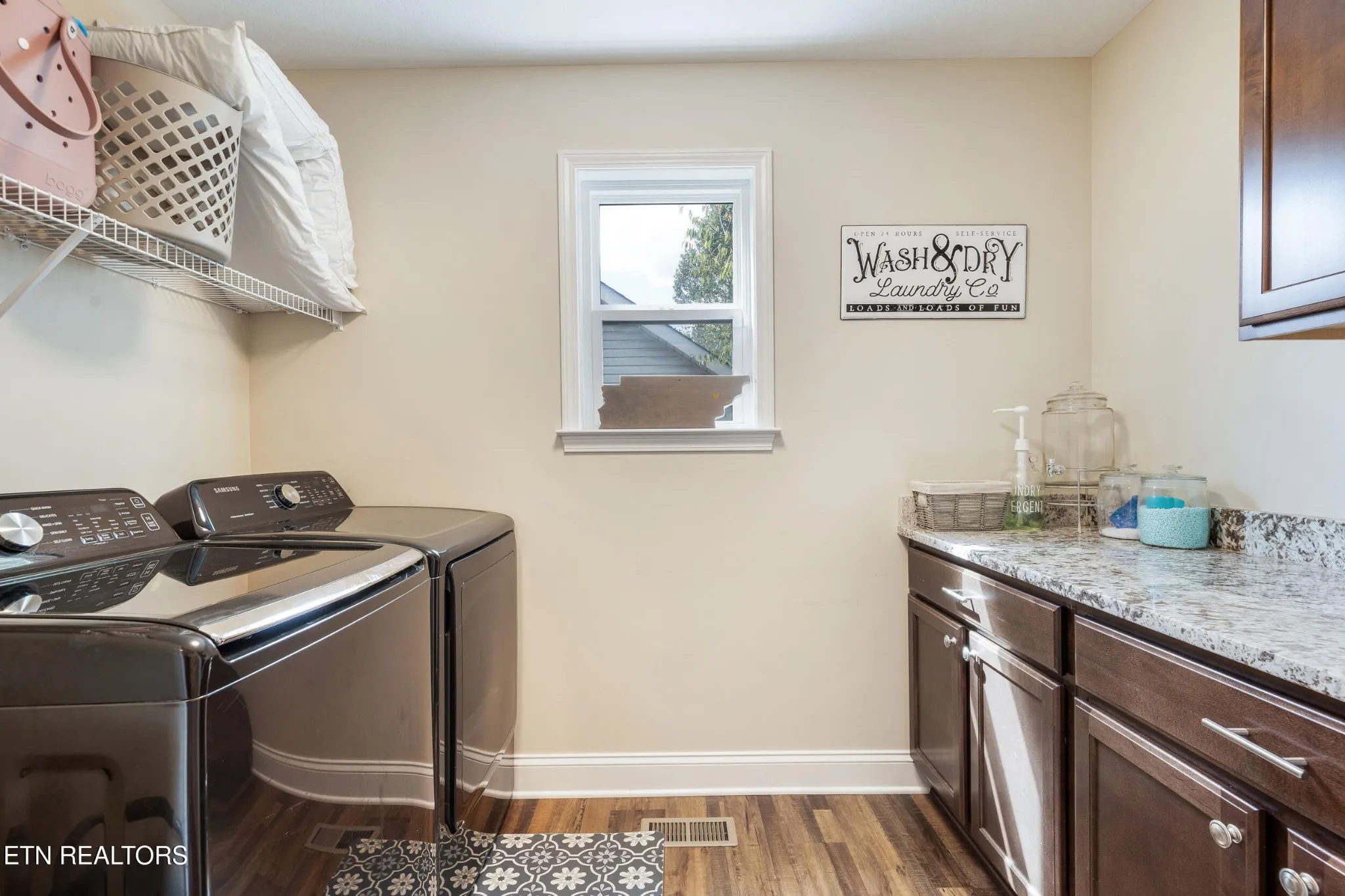 Just off the kitchen, the laundry room offers built-in storage and a granite-topped folding zone, making chores a breeze.