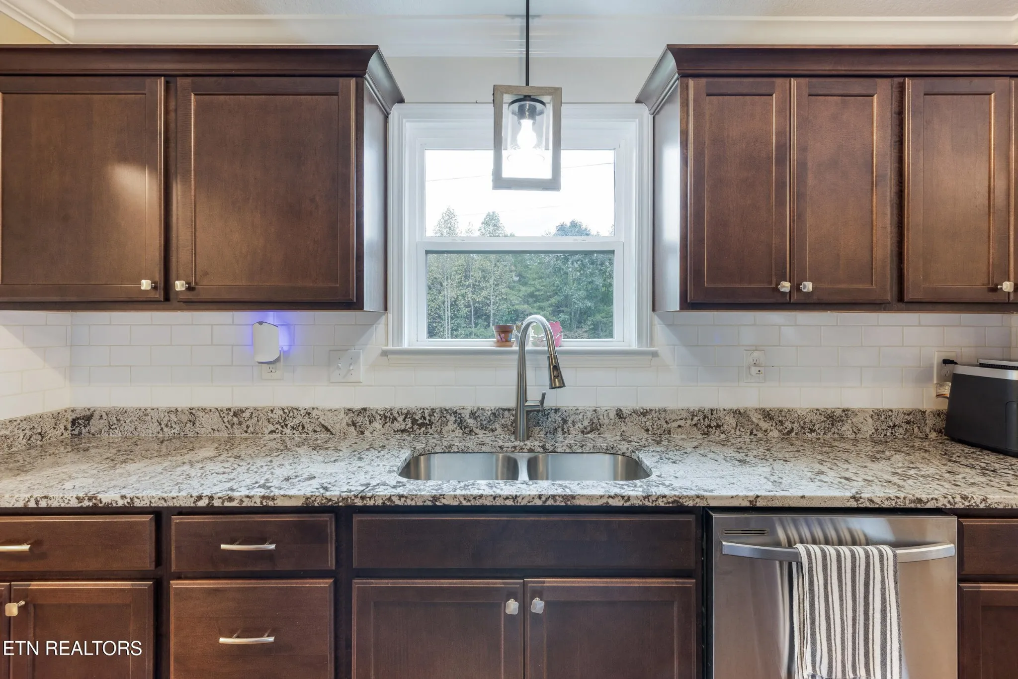 The modern kitchen is a standout — boasting granite countertops, custom cabinetry, a well-appointed pantry, and stainless steel appliances.