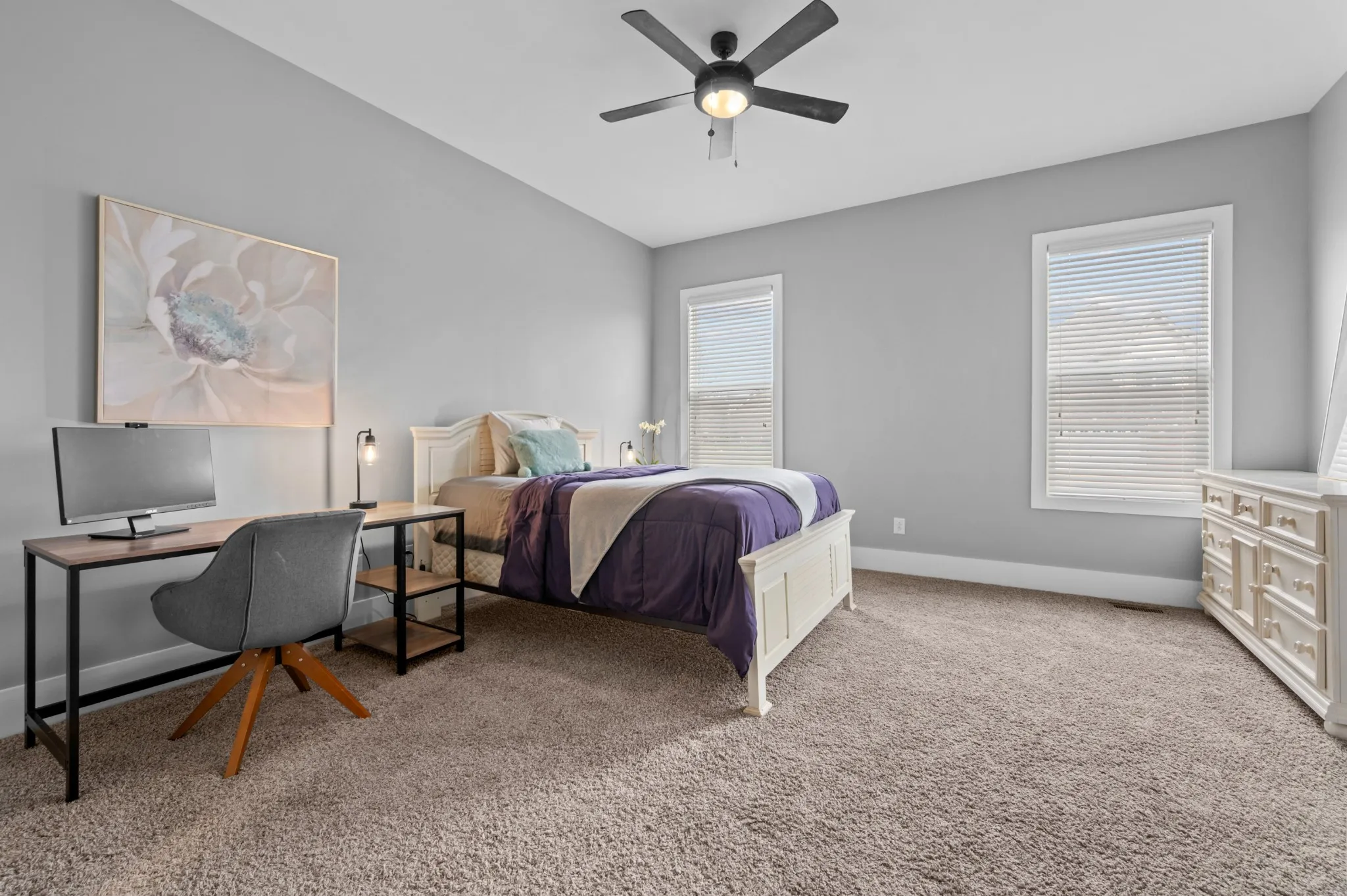 What really makes this modern home next level are the multiple flex spaces: not one, but TWO private home offices, a designated home gym, a bonus/media room with kitchenette, and a designated craft room.