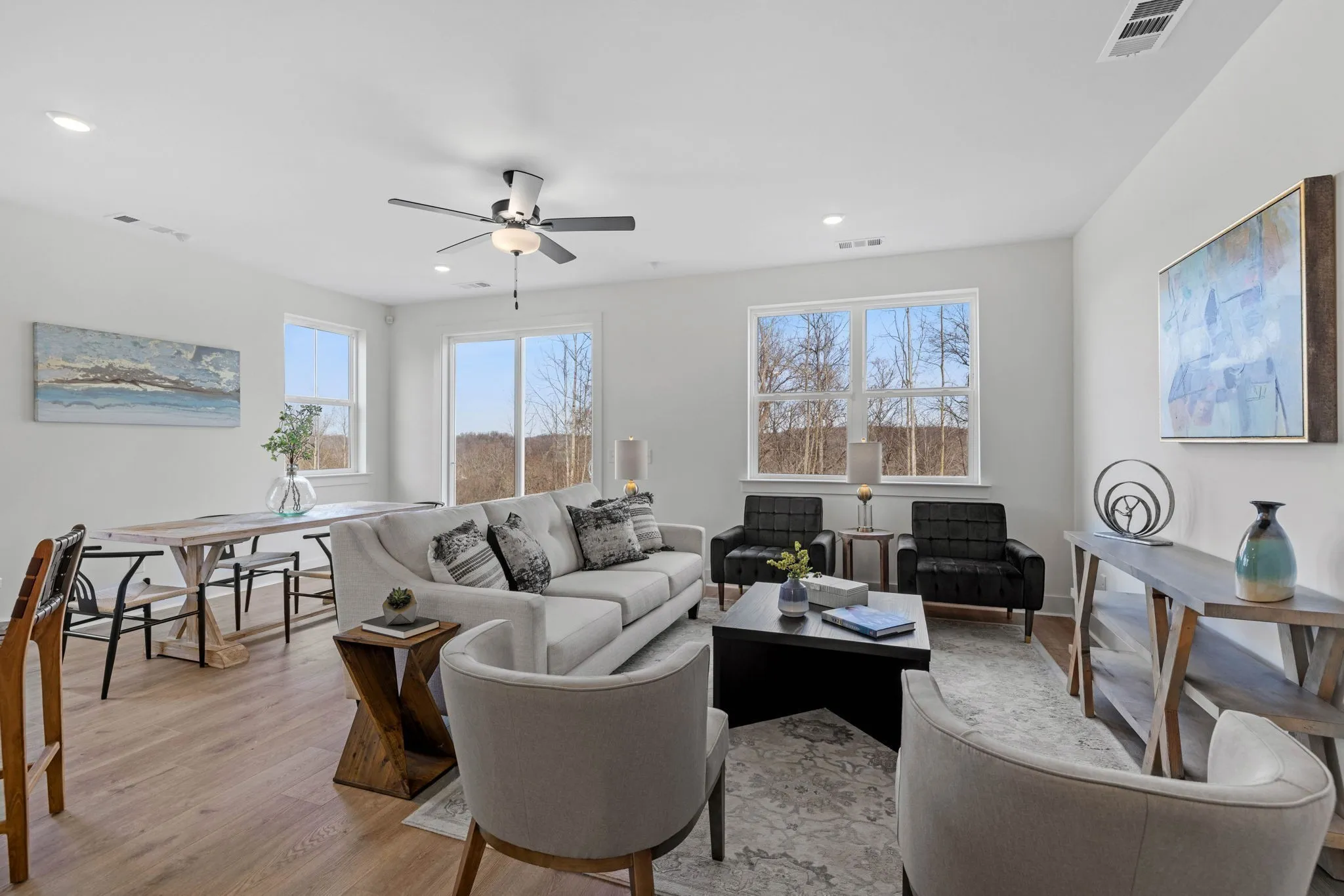FINAL PHASE! END UNIT NEAR CUL-DE-SAC — Gatlinburg-style views just 20 minutes from West End Ave! Welcome to Ridgecrest at Riverwalk, a stunning new construction community perched on a scenic ridge overlooking the Harpeth River. These luxury townhomes feature an expansive owner’s suite with a large walk-in closet and oversized tile shower, a beautiful kitchen with quartz countertops, soft-close dovetail cabinetry made in Tennessee, and plenty of counter space overlooking the open living and dining areas. Enjoy beautiful hard-surface flooring, natural light throughout, and an attached painted and insulated garage. Flexible floor plan offers space for a home office or reading nook. Community amenities include three pools, walking trails, playground, and access to the Harpeth River greenway. Ridgecrest at Riverwalk combines elevated design, scenic beauty, and convenience—just minutes to shopping, restaurants, and parks in Bellevue. Come experience the best new townhomes Bellevue has to offer!