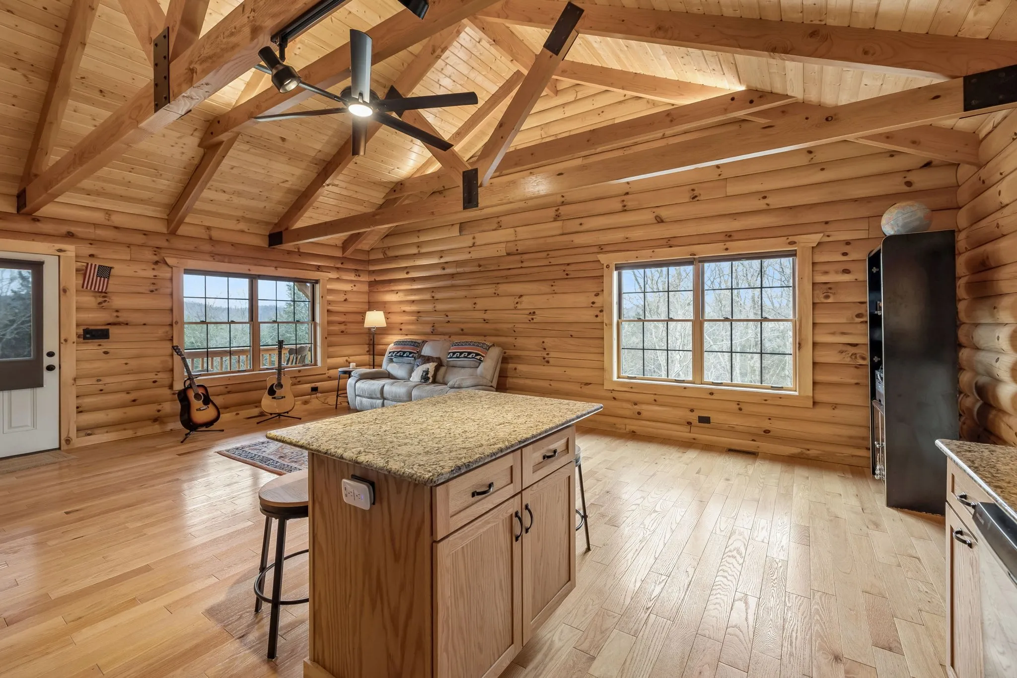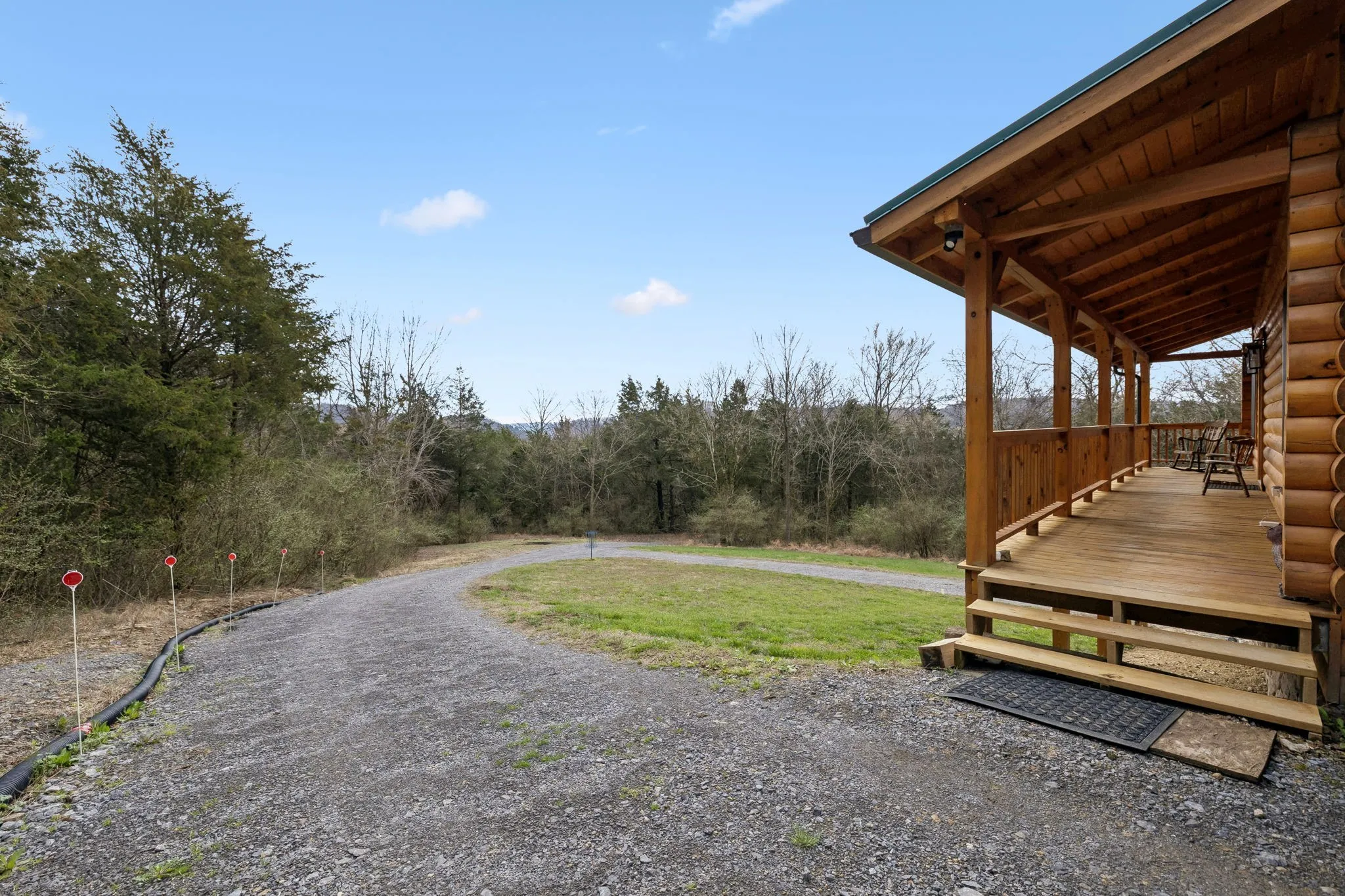 Beautiful Honest Abe log cabin built in 2023 on 62.63 scenic acres! This secluded retreat features Eastern Pine and Douglas Fir logs, red oak hardwood floors, and a cozy Lopi wood-burning stove. Approx. 2,080 sq ft including 2 bedrooms and a full bath on the main level and full finished basement with bathroom and utility room. Kitchen appliances and garbage disposal remain, as well as ceiling fans and all window treatments. Professional wood stain sprayer also remains. Old barn at property entrance conveys. Power, fiber internet, and utility district water already in place. New water line along the road, and water pressure booster pump stays. Floored attic provides excellent storage and includes spray foam insulation. Termite contract in place. Owner cleared a walking/running trail from end of the property to the other lengthwise. Property has at least one spring and there is plenty of mature timber. Owner engineered the driveway to handle the water flow when it rains. Convenient to outdoor recreation with a Cumberland River boat ramp just a short drive away, yet less than 1.5 hours to BNA. C’mon, y’all!