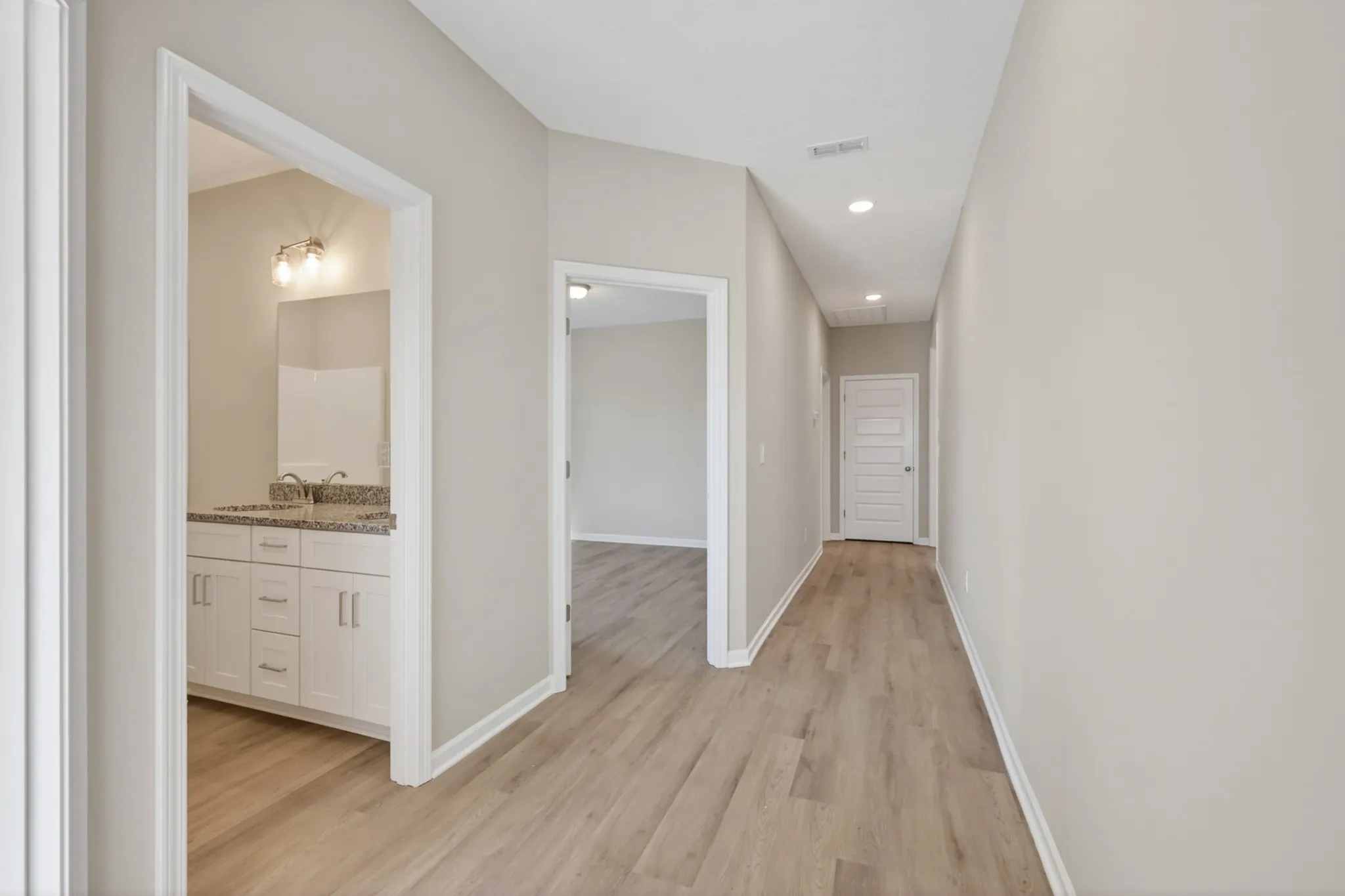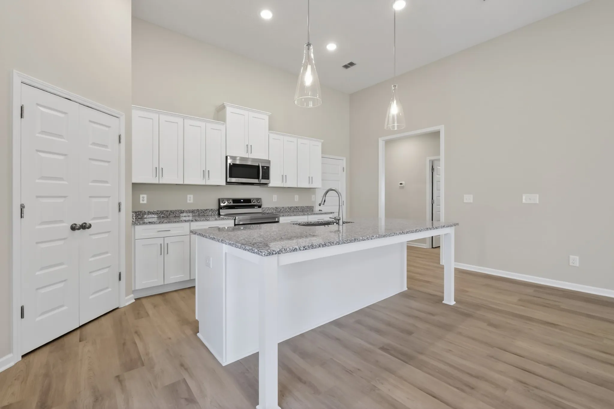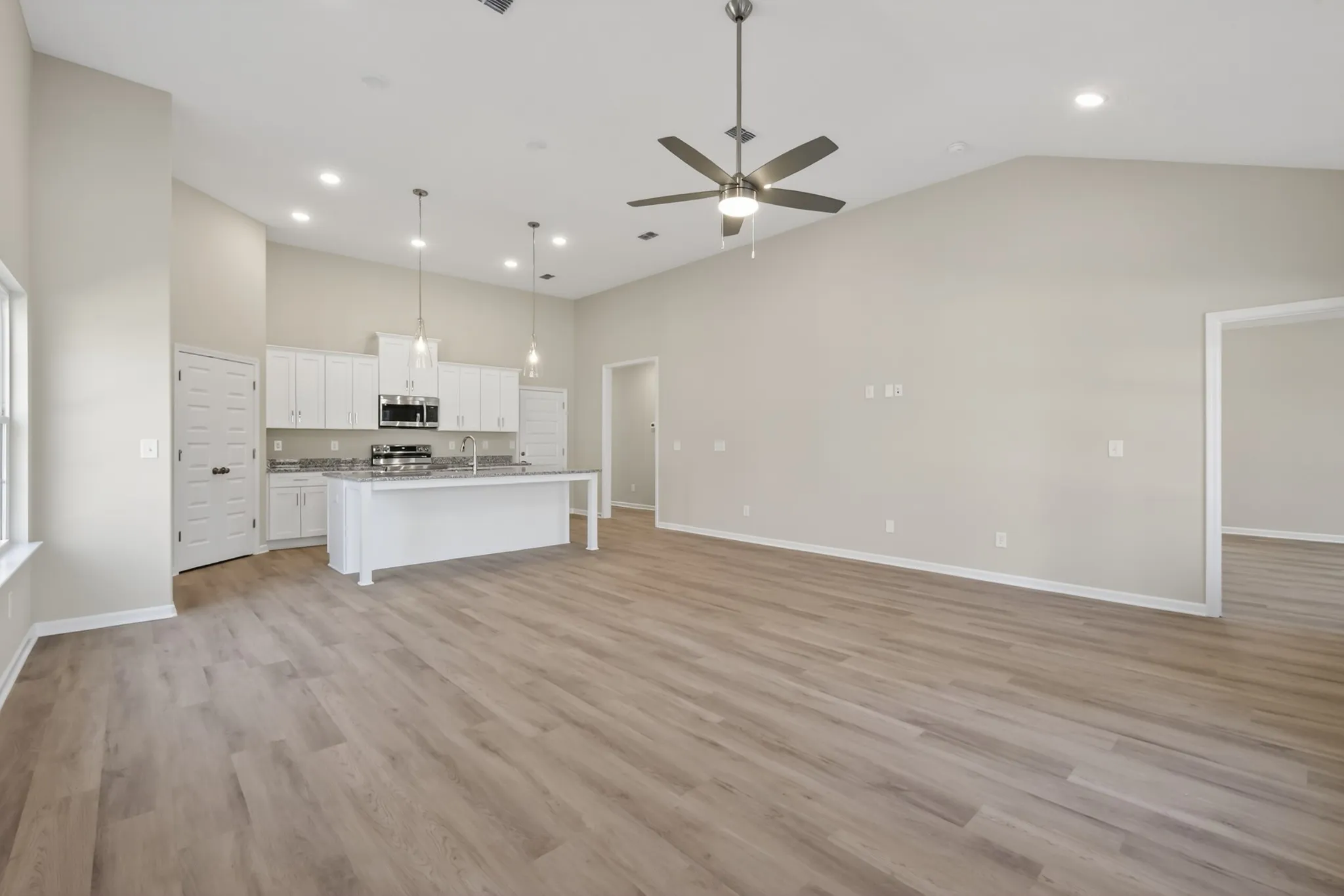 The 1792 Plan offers well-designed living space—all on a single level. This home features 3 spacious bedrooms, 2 full bathrooms, LVP flooring throughout the home, a modern kitchen with granite countertops, stainless steel appliances (no fridge), and 2-car garage with epoxy floors stainless. Enjoy a generous backyard perfect for outdoor living, Enjoy the convenience of a tankless hot water heater and a beautifully landscaped and sodded front yard. Builder will cover ALL closing costs or buy rate as low as 4.99% with the use of the preferred lender and title company! Don’t miss this incredible opportunity!