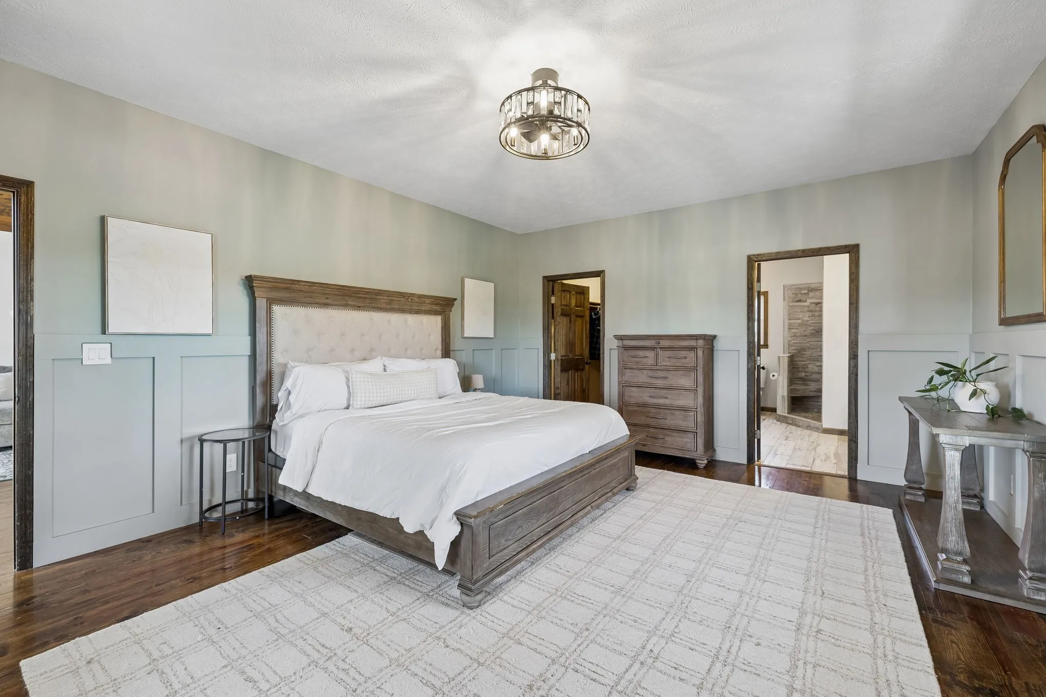The main level features two bedrooms, including a spacious primary suite with soaking tub, separate shower, and double vanities. A second bedroom with its own en suite bath provides an ideal guest suite or second primary option. Two additional bedrooms upstairs offer great space for family, guests, or home office needs.