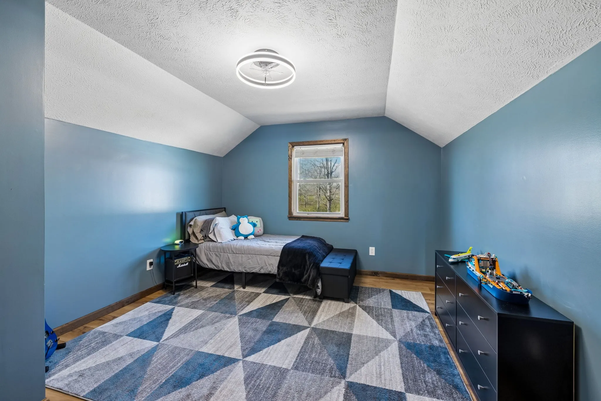 Nature lovers will appreciate the private stocked pond that belongs entirely to the property, complete with a bench for fishing or enjoying the quiet setting. A creek runs through the land, adding to the scenic beauty and peaceful atmosphere.