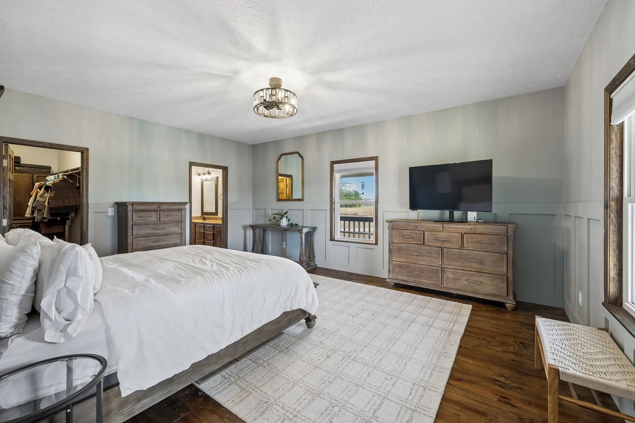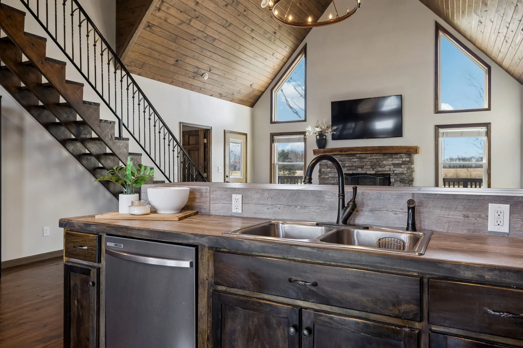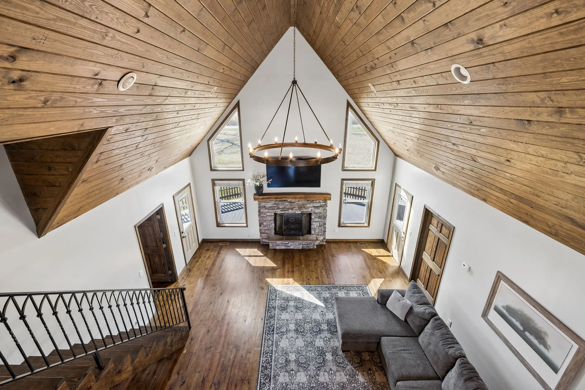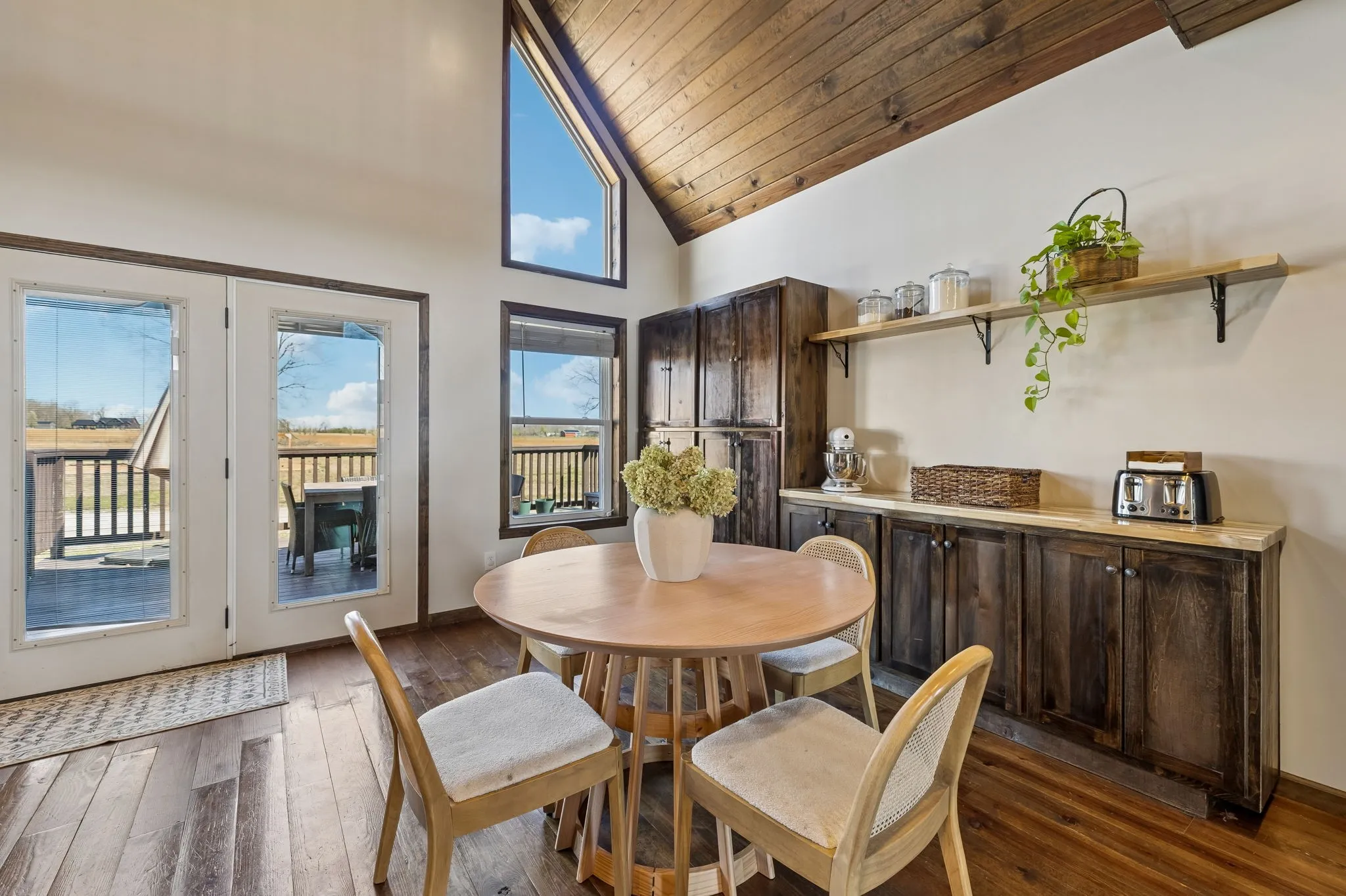 This sun filled home offers soaring ceilings and expansive windows that create a bright, open living space with peaceful views of the surrounding trees and countryside. The layout blends comfort and flexibility with four bedrooms and multiple indoor and outdoor gathering spaces.