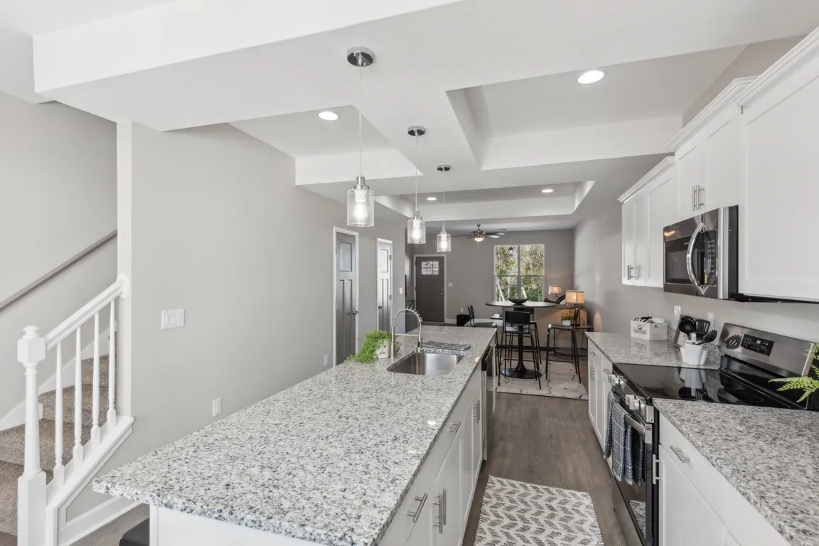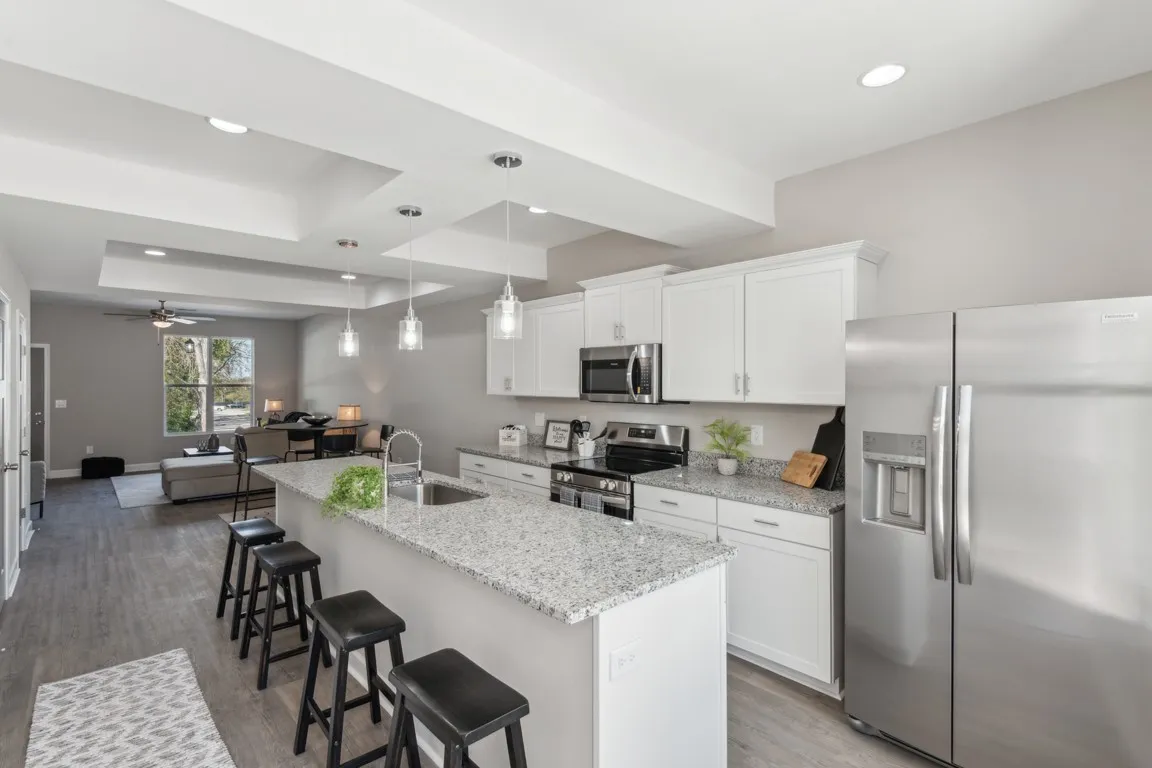 3 Stories of Living Space at 1728 Sq Ft! Come tour this impressive new construction end unit home in the heart of one of Tennessee’s fastest growing cities! Top-of-the-line Energy Star Certified Water heaters with up to $400 in yearly savings! Extravagant Master Suite with private bath and extra large walk-in closet on second floor. Upgrades included at no additional cost: granite countertops, an 11 ft kitchen island for hosting, all tile showers, his and her vanities in master bath, walk in closets, upgraded shelving throughout, 3×6 outside storage room, ceiling fans in living areas and all bedrooms, smart thermostat, stainless steel refrigerator, covered back patio, backyard fence, and a video doorbell. Please note: property is a pre-sale. Completion estimated late spring.