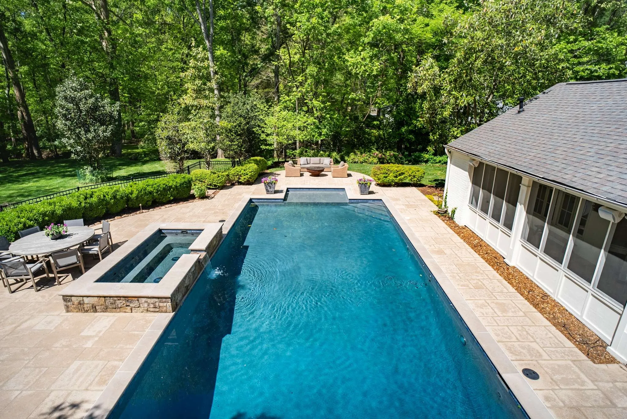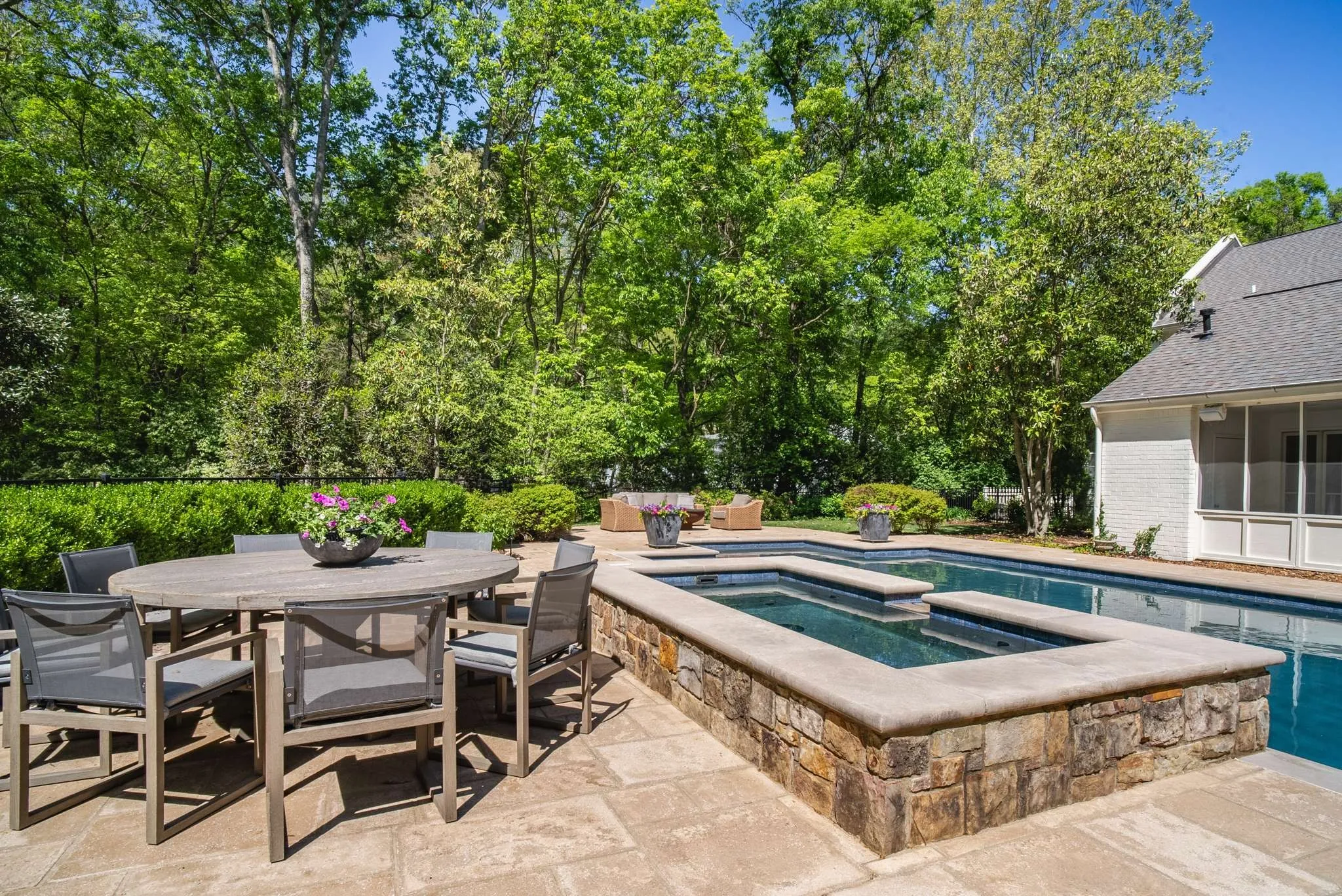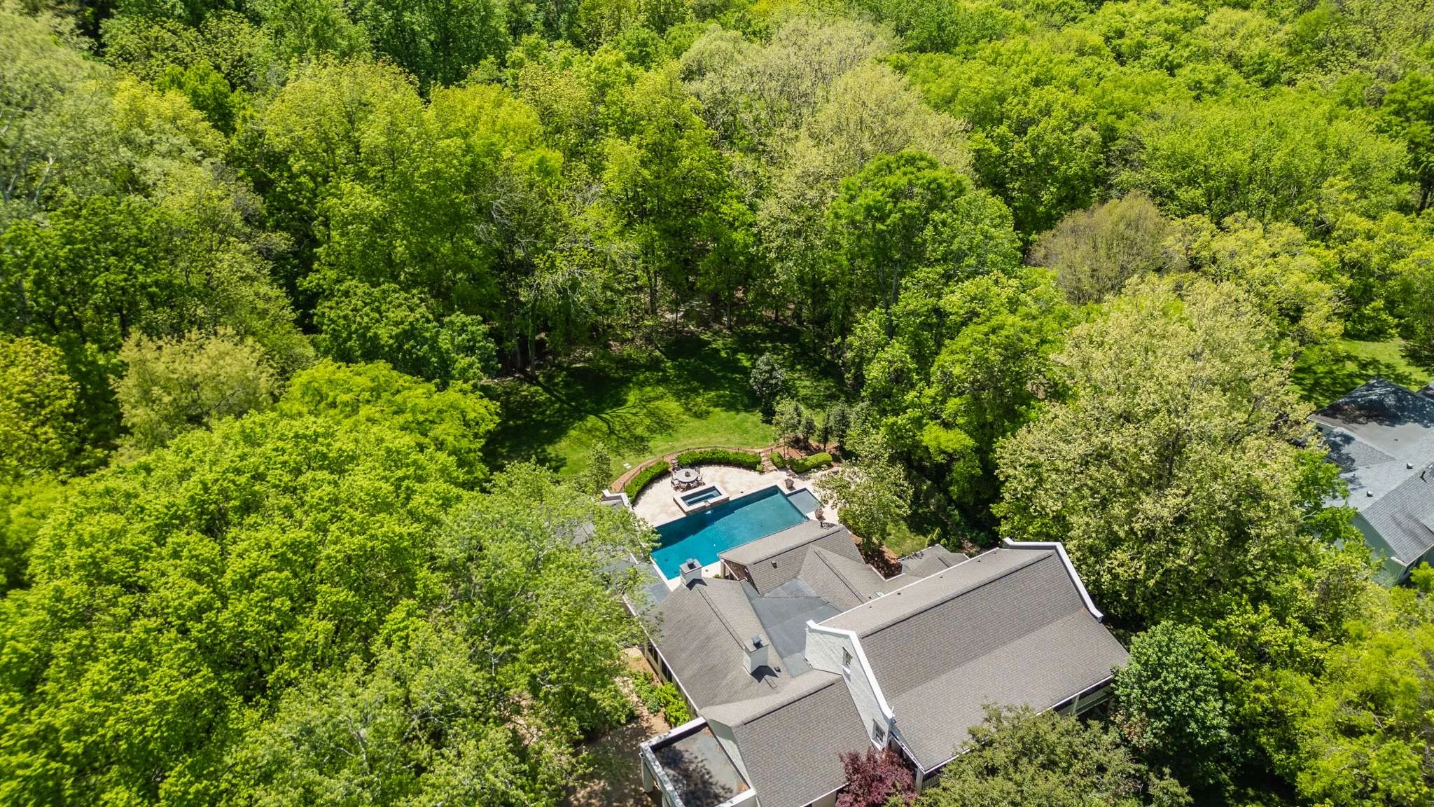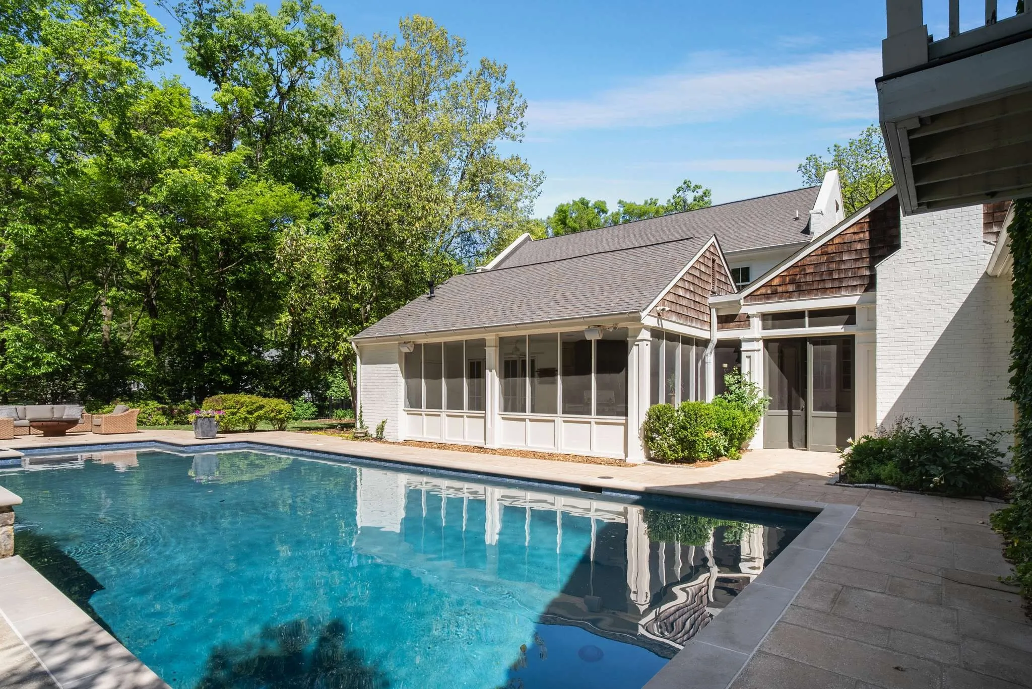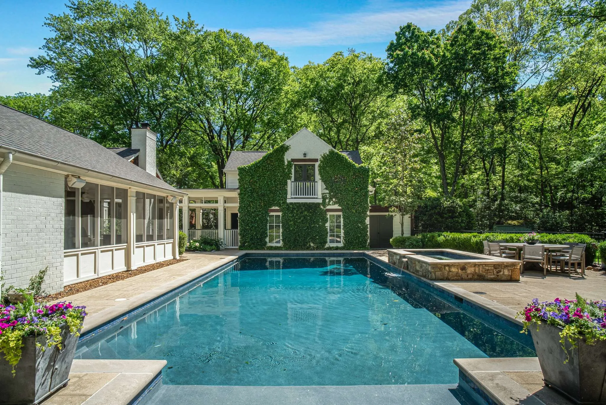 Multiple Offers Recieved: incredible private park like setting that backs up to Radnor Lake State Park! Completely updated home with incredible landscaping, floorpan, hardwoods, hand-hewn barn beams, and quiet dead end street. Heated, saltwater pool(40×20) + built-in hot tub w/spillway. Covered breezeway to garage w/finished office above. 1436 sq feet of porches including fabulous 700sqft screened porch w/wood-burning fireplace. Upstairs kids/teen paradise w/ensuite baths, play area, two laundry room, this house has it all. Incredible walk up attic storage and above garage detached office/opportunity for recording studio/guest suite, etc.