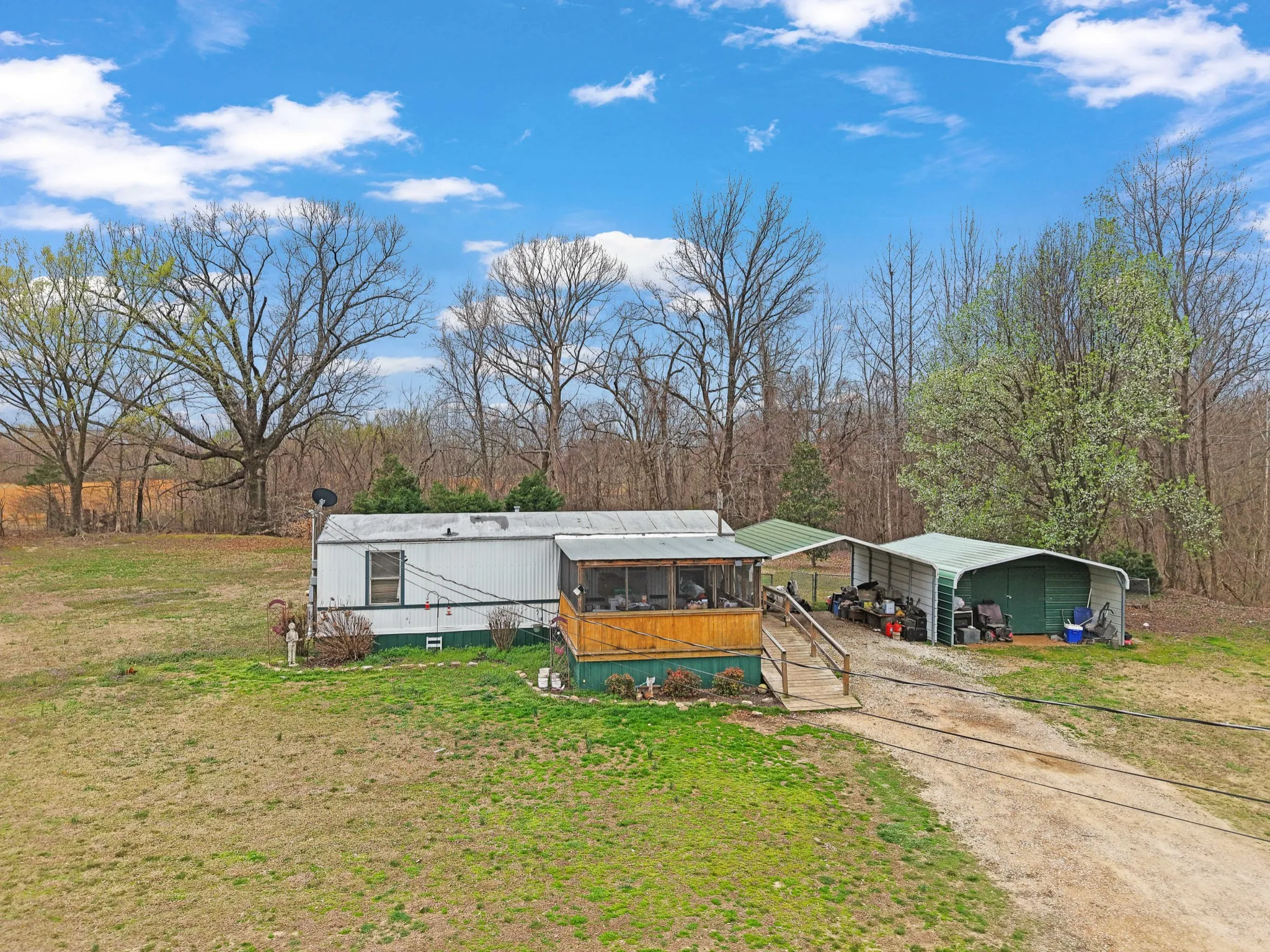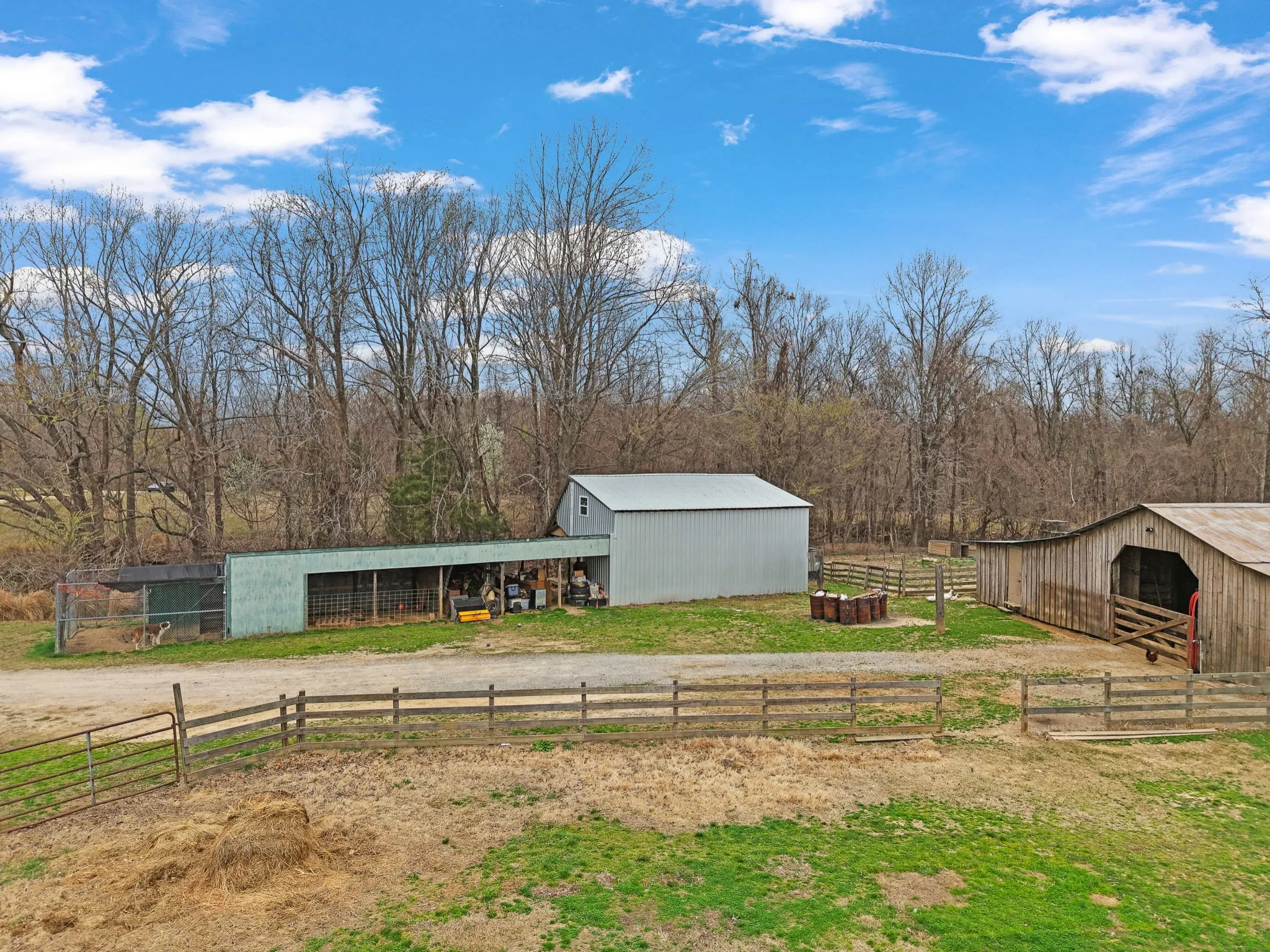 The property is already set up for country living and farm use with a mobile home on site, a large barn with an attached tiny home, and a separate sheep barn, giving you multiple functional structures for livestock, storage, or additional living space.