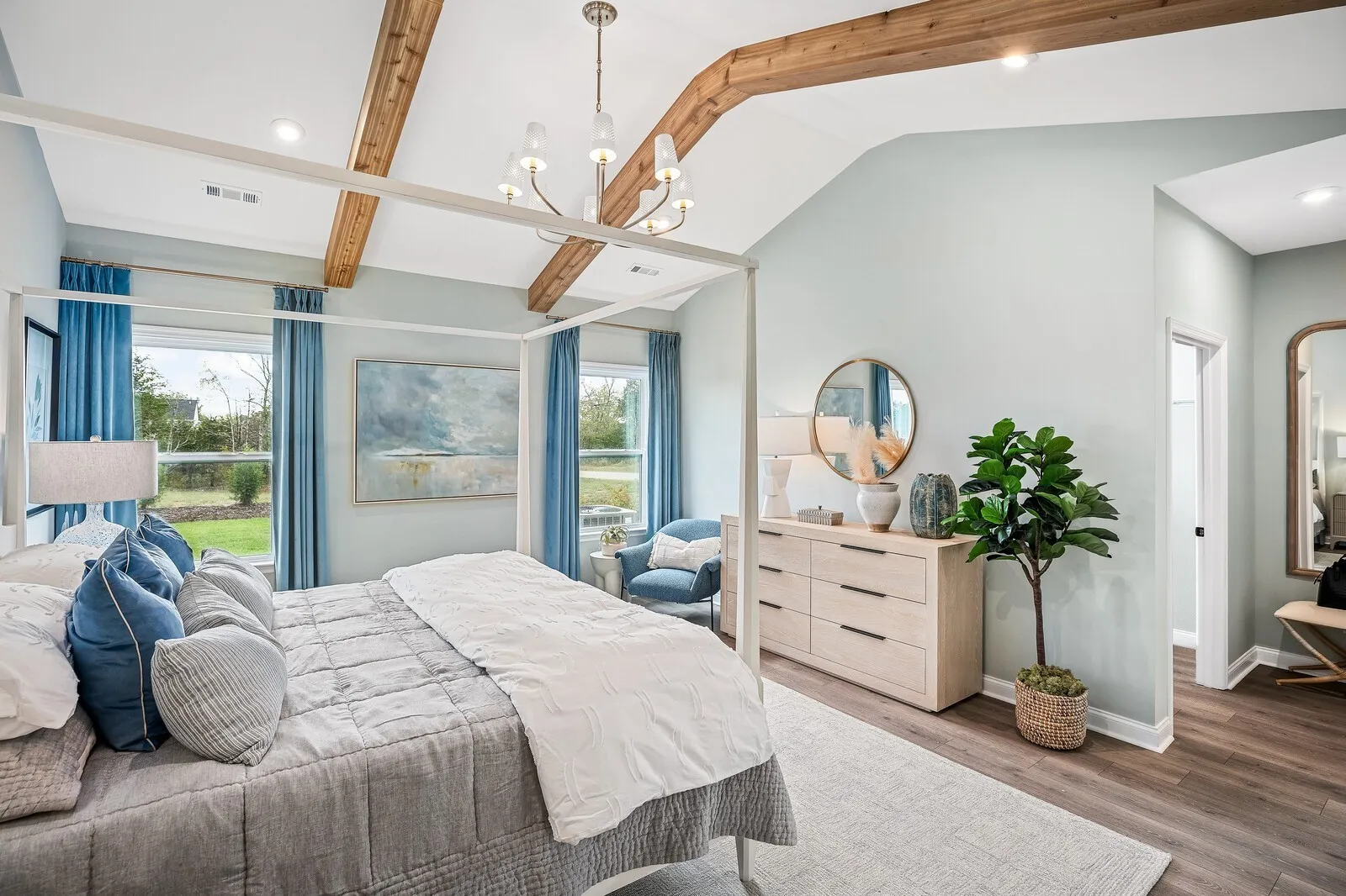 The COURTLAND has the WOW factor you’ve been looking for without feeling ostentatious! The stunning vaulted great room with optional wood beams is breathtaking and is the perfect entertaining space for all family gatherings! Its open concept allows the chef’s kitchen with oversized pantry to be the heart of the home while still having a dedicated dining space for at least 8 chairs. The primary suite has an optional vault which really brings in a sense of serenity! A guest suite on the main provides out of town guests options, while the second floor features two additional bedrooms ,a full bath, and a spacious game room.
