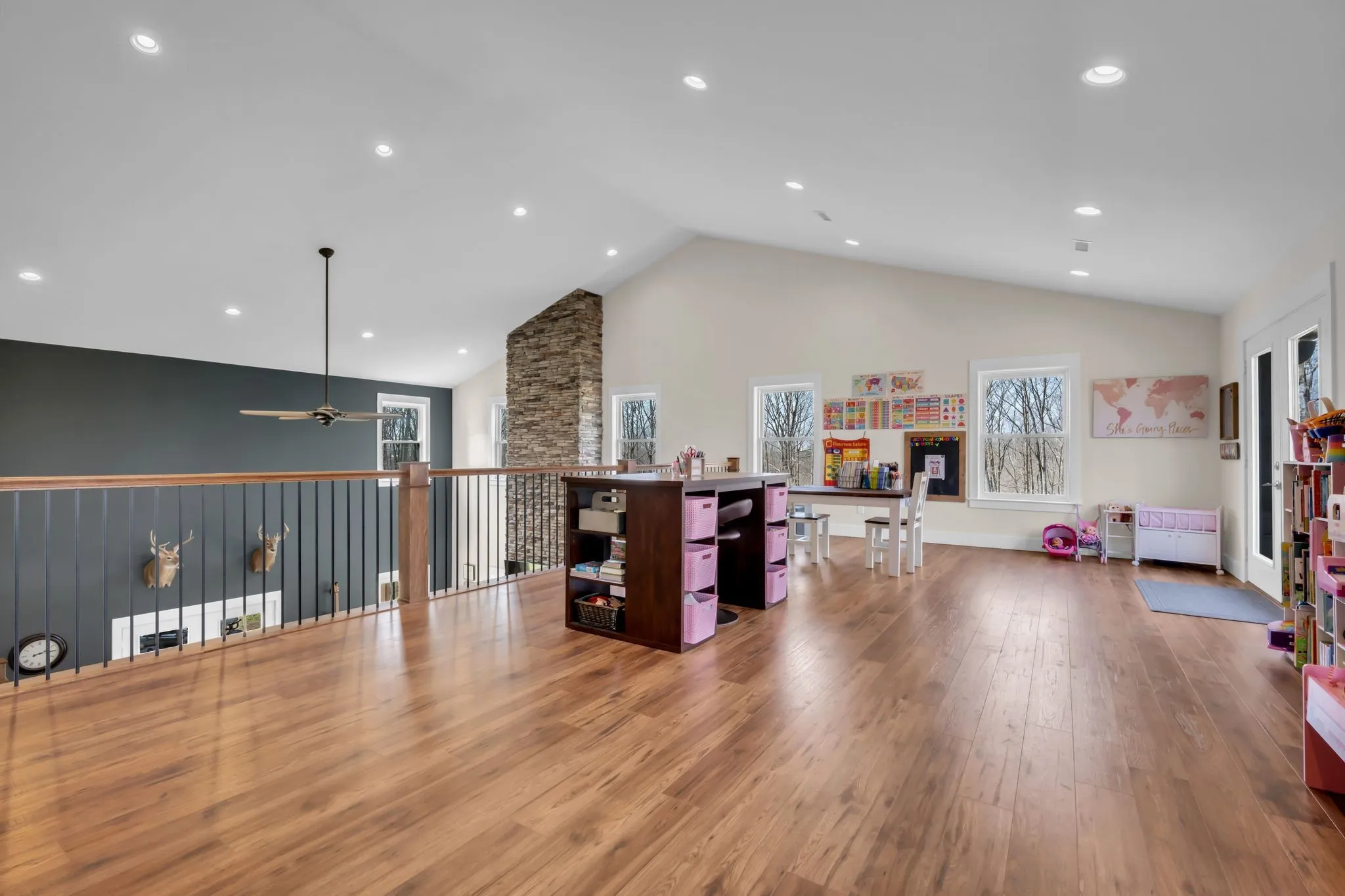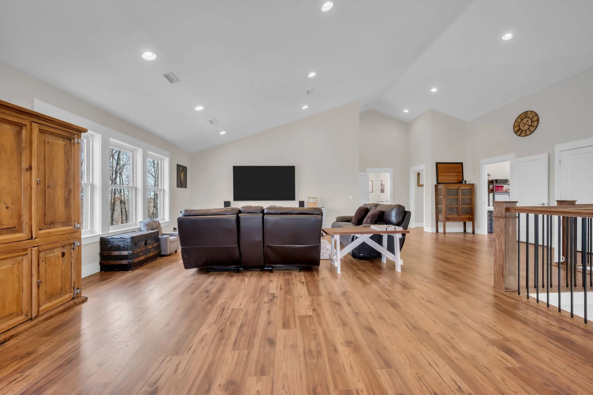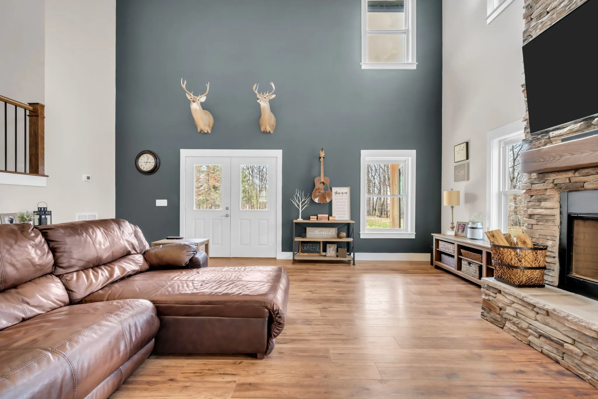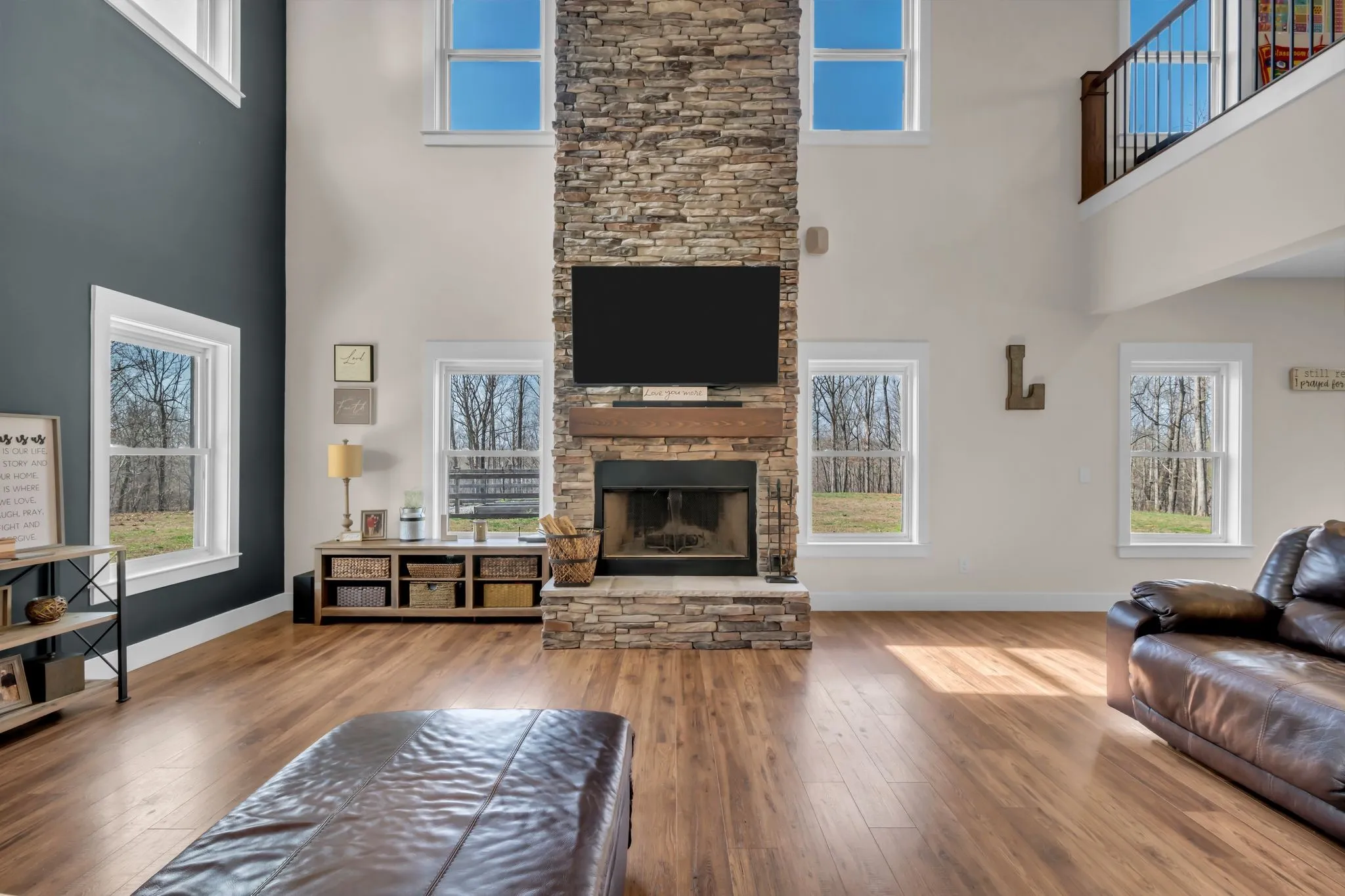 Step inside to a stunning two-story vaulted living room and open concept floor plan that seamlessly connects the living area, kitchen, and dining space. The living room is centered around a beautiful stone fireplace, creating the perfect place to gather with family and friends. The chef’s kitchen features custom soft-close white cabinetry, a large island, and a spacious dining room. The primary suite is located on the main level with a large walk-in closet and includes a beautiful bath with a large walk-in shower and a freestanding tub. A second bedroom with a spacious closet is also located downstairs. The spacious utility room offers plenty of room for laundry, storage and added functionality. Upstairs you will find a huge bonus room ideal for a theater, homeschool space, playroom or large gathering area. There is also a craft room that makes a great home office, along with two additional bedrooms and a large bathroom. One bedroom currently features a home recording studio with a built-in vocal booth, which owners will remove and restore to bedroom space if desired by the buyer. The oversized garage includes 13 foot ceilings and 10×10 garage doors, along with a water softener, whole house filtration system, and oversized well pressure tank that ensures consistent water pressure throughout the home. A rare opportunity to own a beautiful home on 15 private acres minutes from Nashville. FYI.. *AT& T fiber internet available*