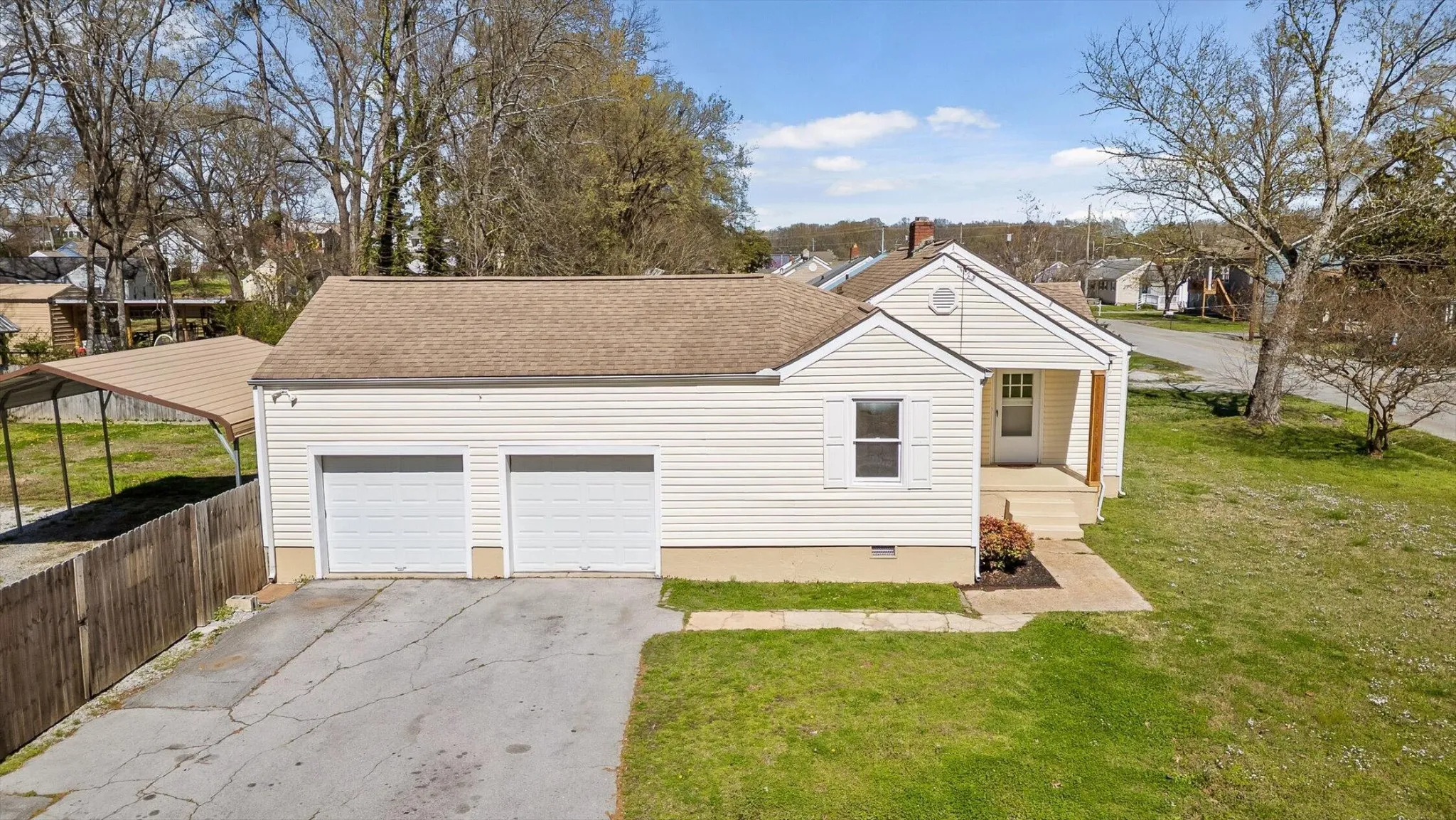 Inside, you’ll find a freshly updated interior featuring bright living spaces, modern finishes, and a comfortable layout designed for everyday living. The renovated kitchen offers updated cabinetry and countertops with stainless appliances. The refreshed living room offers a warm and inviting atmosphere with newly refinished hardwood floors. This charmer offers two bedrooms, 1 ½ renovated bathrooms, a large laundry space, an incredible flex space off the kitchen that could serve as a dining room or family room, and an additional heated-and-cooled space over the two-car garage! Lots of possibilities here! Outside, the spacious fenced backyard offers room for outdoor entertaining, gardening, or simply relaxing. Plus, additional parking options with the included carport and double car entry gate. With its convenient location near I-24, East Ridge amenities, and downtown Chattanooga, this property offers both accessibility and charm.