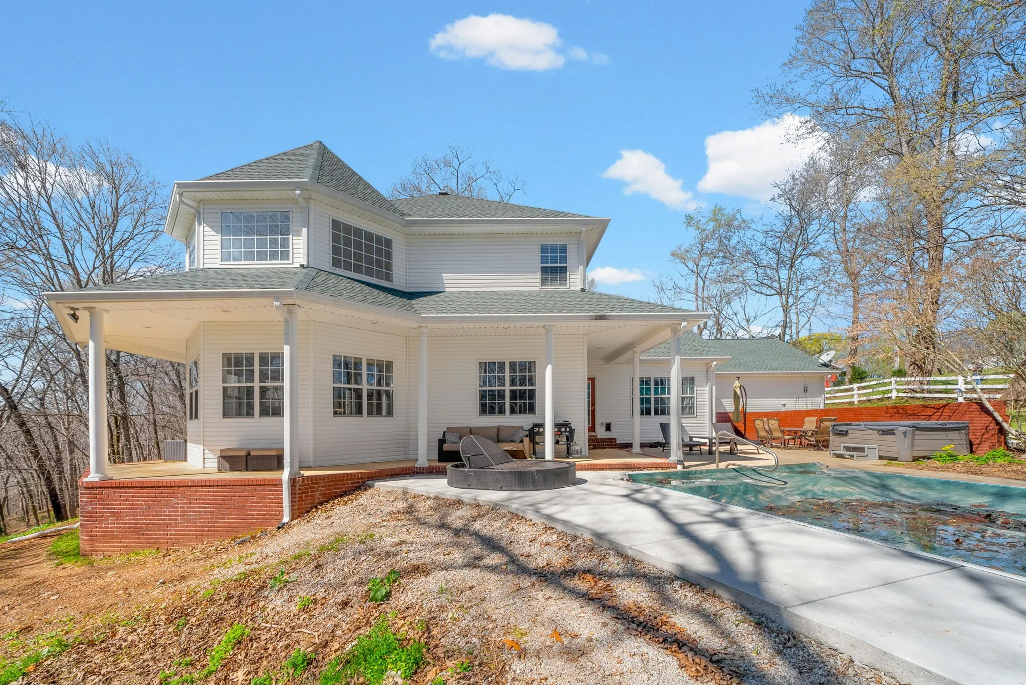 Welcome home to your private farmhouse retreat! Situated on just over 10 acres, this beautiful 3-bedroom, 2.5-bath home also includes a 828 sq. ft. 1-bedroom, 1-bath GUEST HOUSE—perfect for guests and extended family. Inside the main home, you’ll find a warm and inviting living space with a gas log fireplace and a spacious, thoughtfully designed kitchen ideal for gathering and entertaining. The home features a blend of carpet, hardwood, and tile flooring throughout. The primary suite offers a relaxing escape with a garden tub, custom his-and-hers tile shower with dual showerheads, and double vanities. Step outside and enjoy everything this property has to offer, including an in-ground pool, a 40×30 shop, and a 35×40 barn—perfect for hobbies, storage, or animals. Two established pastures are already in place for horses, with plenty of additional acreage available to expand. Whether you’re looking for space to spread out, room for animals, or the perfect place to entertain family and friends, this property offers the best of country living with endless possibilities.