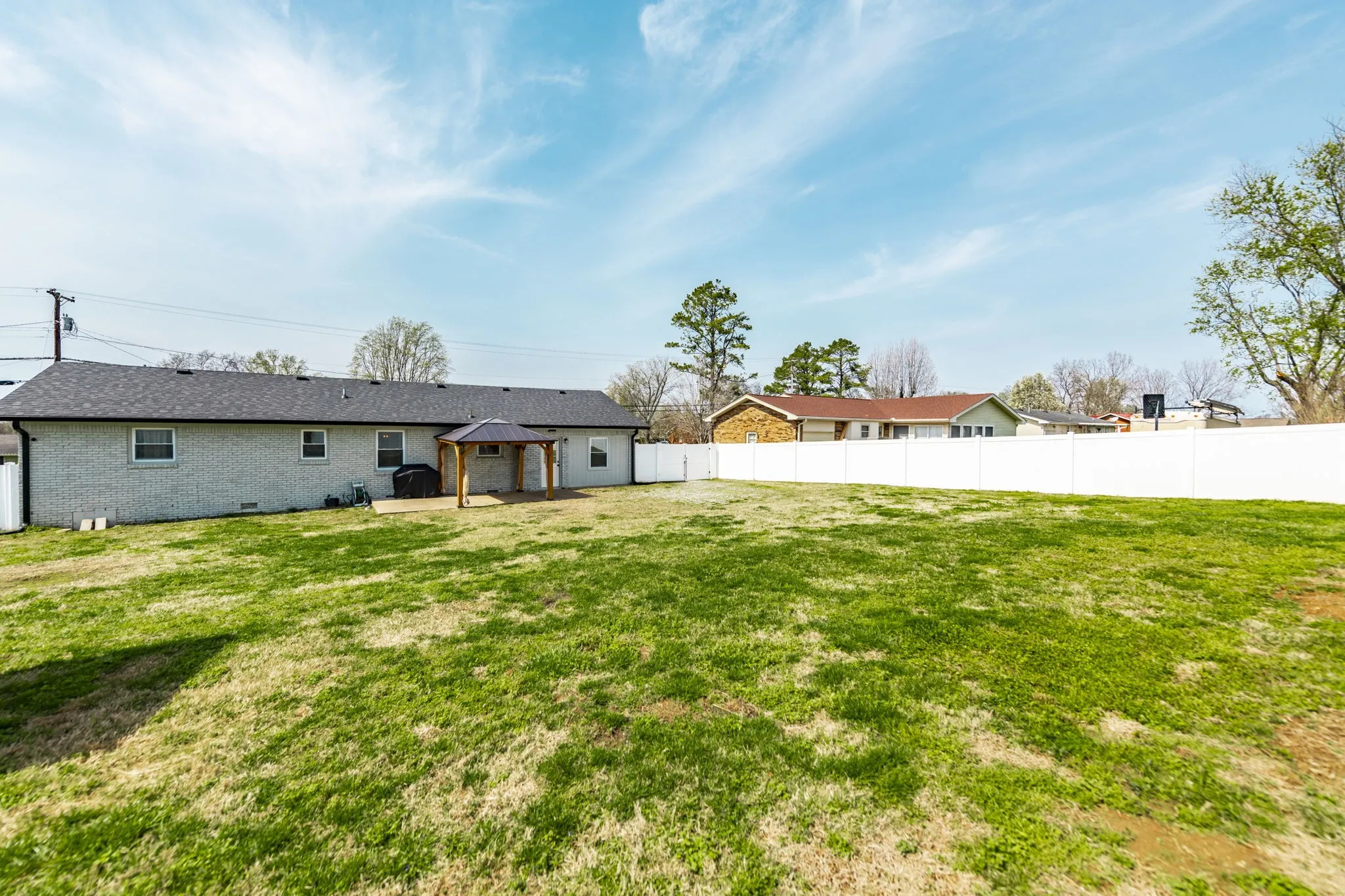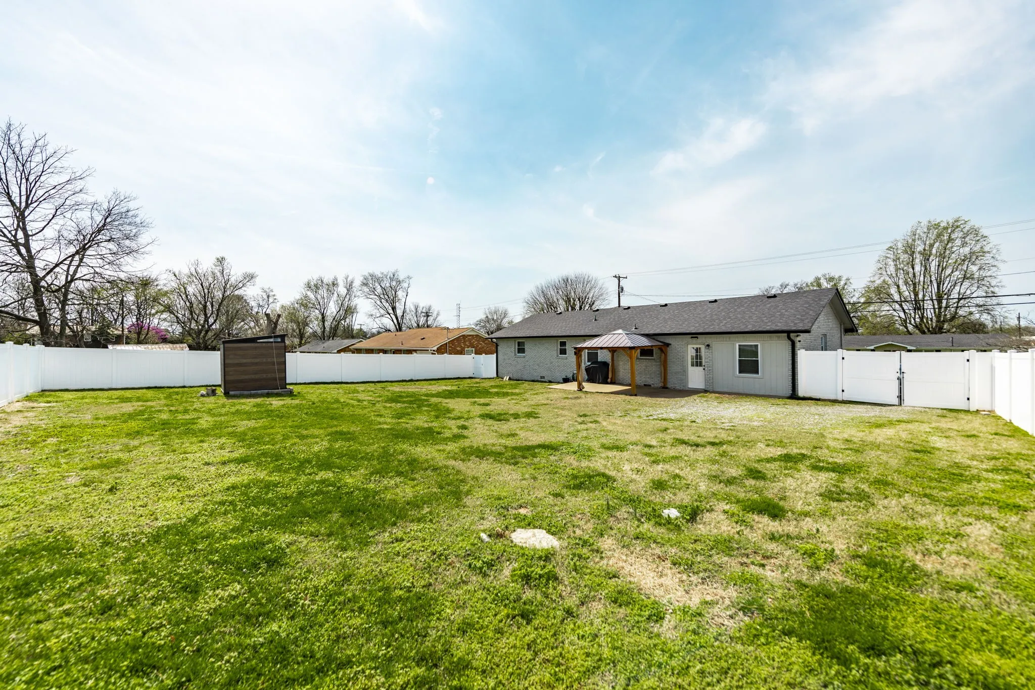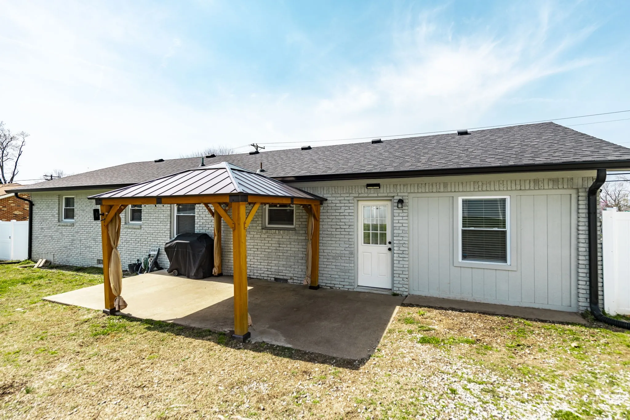 Welcome home to this renovated, mid-century modern with functional living space offering over 1,600 sf! This 3-bedroom, 1.5-bath home features a desirable open floor plan with zero carpet throughout, offering both style and easy maintenance. The spacious living room flows seamlessly into the kitchen, creating the perfect setup for everyday living or entertaining guests. The kitchen is equipped with granite countertops, ample cabinetry, and an island that can remain. A converted garage adds a versatile flex room, ideal for a home office, playroom, workout space, or second living area. Step outside to the backyard that is enclosed with a new, tall white privacy panel fencing, providing a spacious and secure area for outdoor enjoyment! Gazebo and Storage Building also to remain! New HVAC installed in October of 2025 & Roof is 5 years old! Conveniently located close to downtown Gallatin and just minutes to Old Hickory Lake, this home also offers quick access to new retail, grocery stores, and a variety of restaurants, making it easy to enjoy everything the area has to offer.