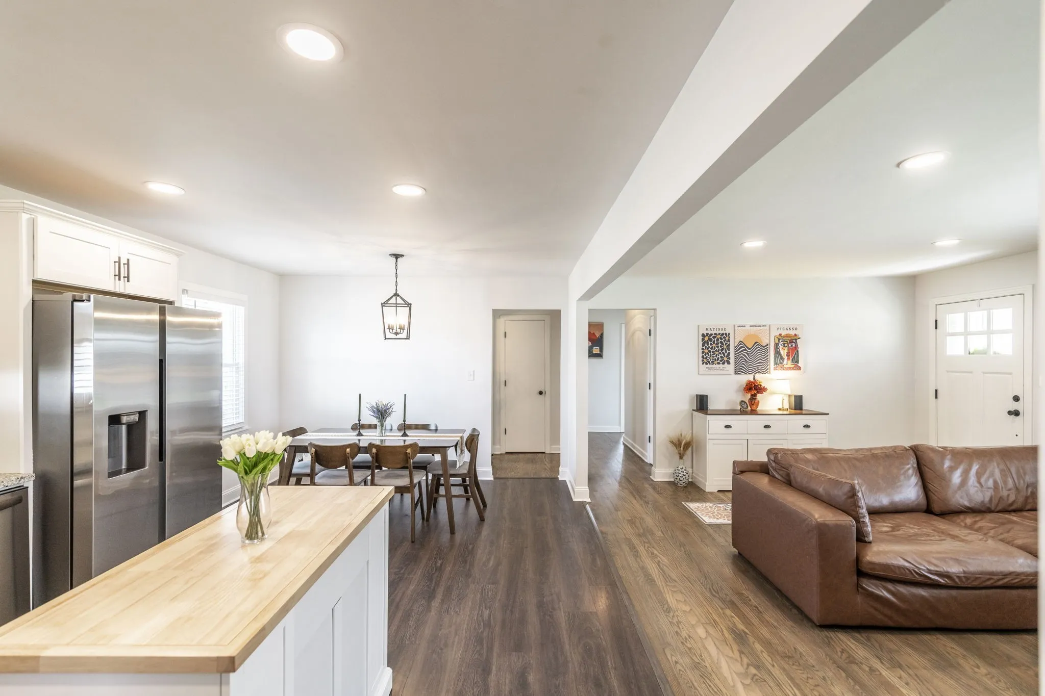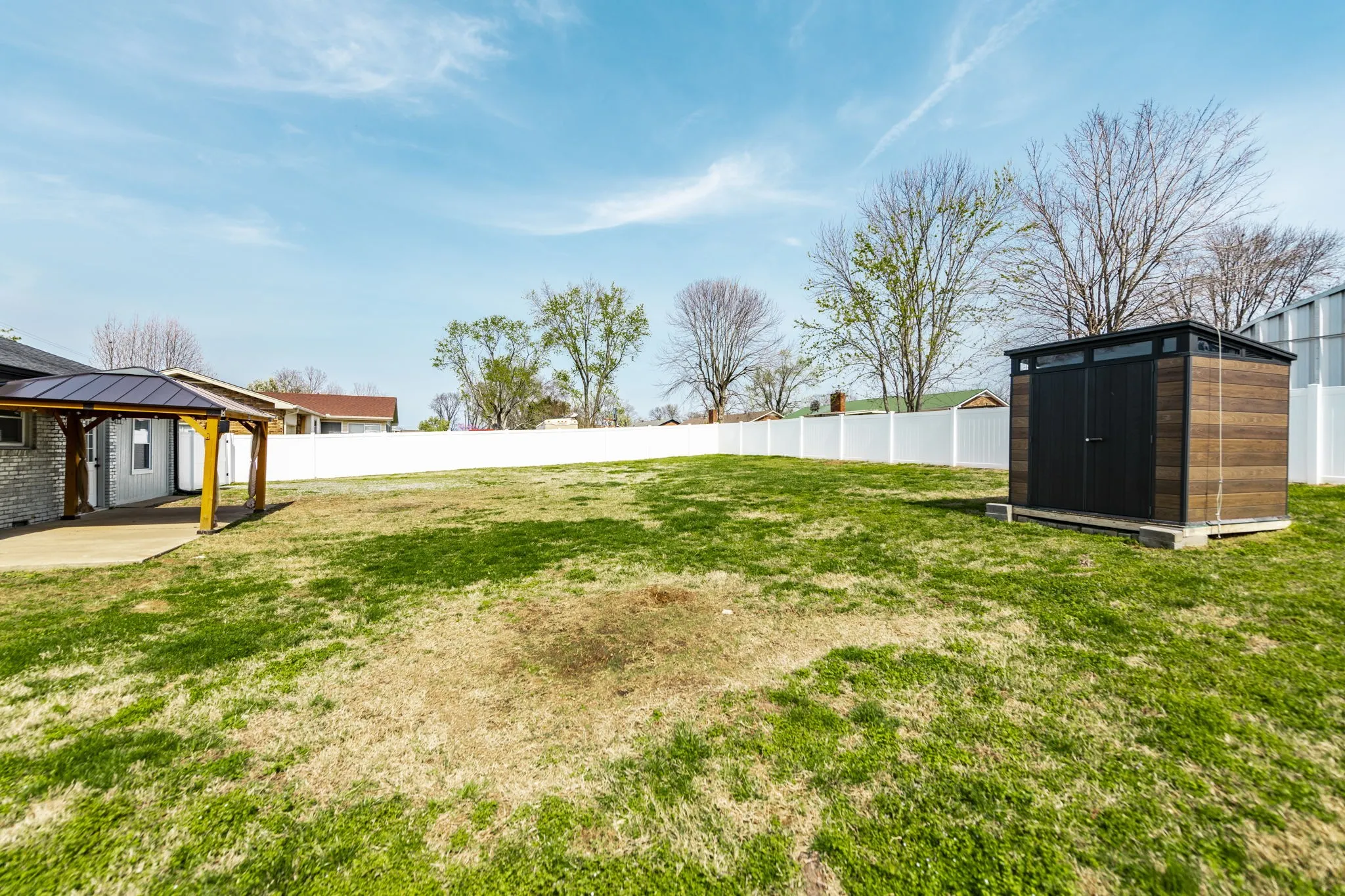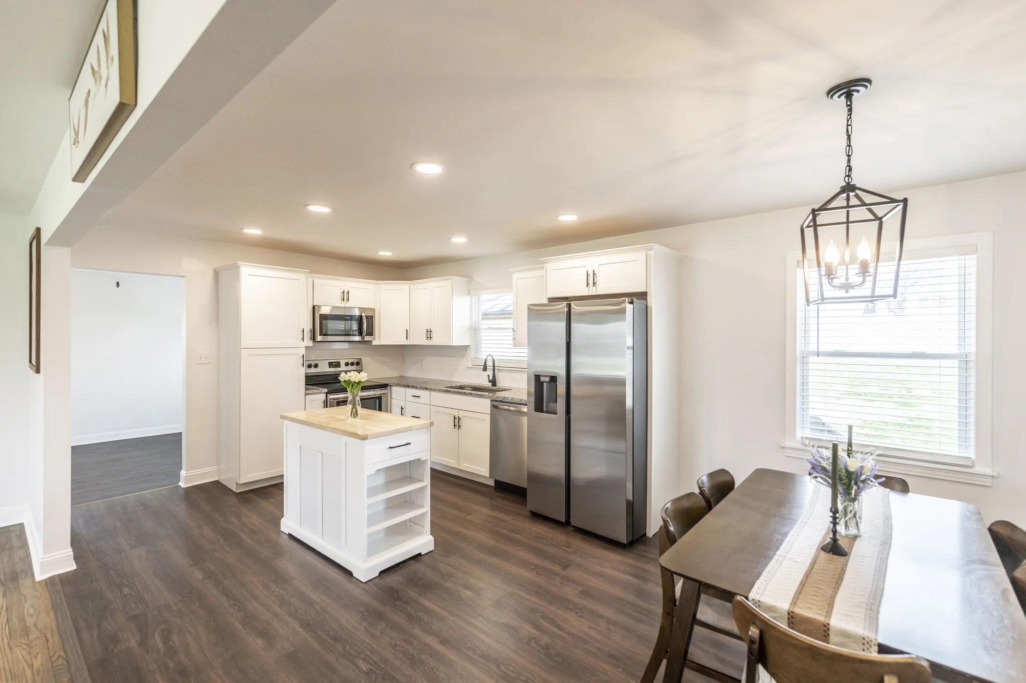 Welcome home to this renovated, mid-century modern with functional living space offering over 1,600 sf! This 3-bedroom, 1.5-bath home features a desirable open floor plan with zero carpet throughout, offering both style and easy maintenance. The spacious living room flows seamlessly into the kitchen, creating the perfect setup for everyday living or entertaining guests. The kitchen is equipped with granite countertops, ample cabinetry, and an island that can remain. A converted garage adds a versatile flex room, ideal for a home office, playroom, workout space, or second living area. Step outside to the backyard that is enclosed with a new, tall white privacy panel fencing, providing a spacious and secure area for outdoor enjoyment! Gazebo and Storage Building also to remain! New HVAC installed in October of 2025 & Roof is 5 years old! Conveniently located close to downtown Gallatin and just minutes to Old Hickory Lake, this home also offers quick access to new retail, grocery stores, and a variety of restaurants, making it easy to enjoy everything the area has to offer.