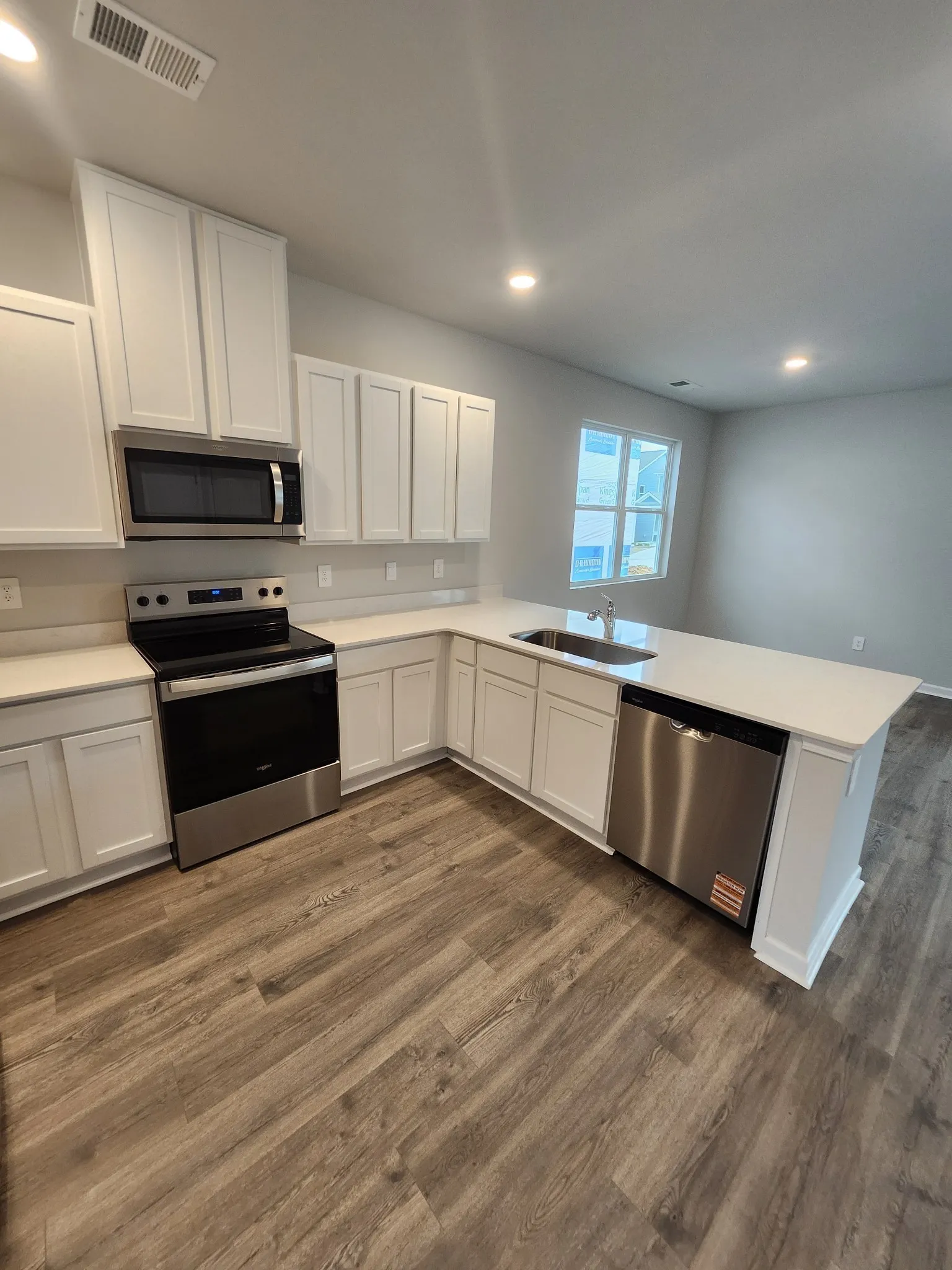 The kitchen is a highlight, featuring quartz countertops and stainless-steel appliances, creating a stylish and efficient space for cooking. The generous counter space and modern finishes make it easy to create culinary masterpieces or simply enjoy a quick meal with family. The adjoining living area offers plenty of room for relaxation and socializing, while the dining space is ideal for family meals or hosting guests.