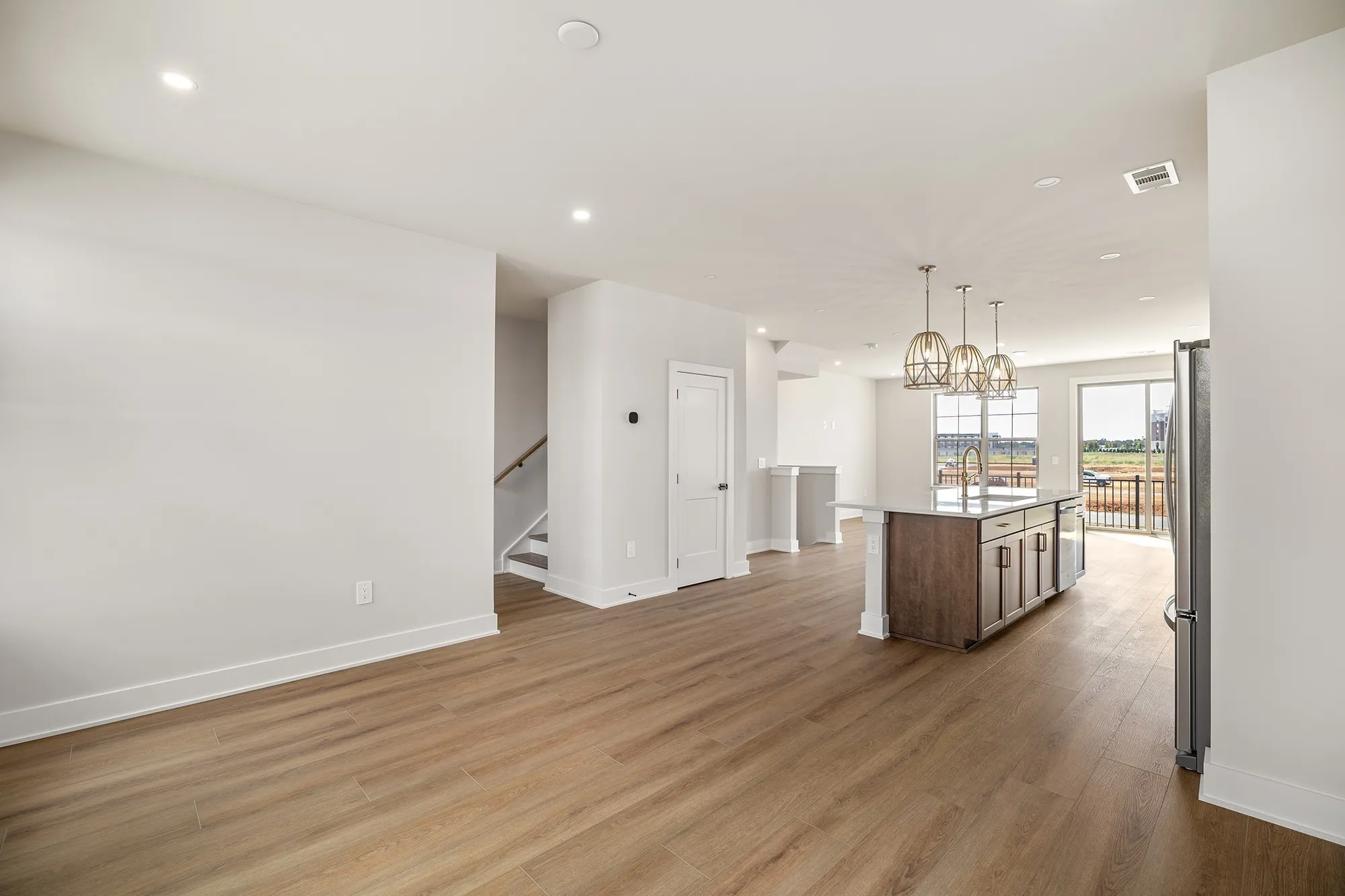 Welcome to your future dream home at Meadowlark! This three story Sunnybell floorplan is the perfect blend of convenience and functionality. Walk in the front door and enter the cozy foyer. Down the hall you will find entry to the attached two car garage as well as a guest bedroom with a full bath. The second floor is a spacious open floorplan flowing effortlessly from the great room to the kitchen and casual dining area. This space is ideal for entertaining especially with the option for the alternate kitchen island which adds more counter and seating space. On the third floor you will find two additional bedrooms, a shared hall bath with dual vanity sinks, and laundry space. In addition, the third floor holds the primary suite complete with dual walk-in closets, dual vanity sinks, and private water closet.