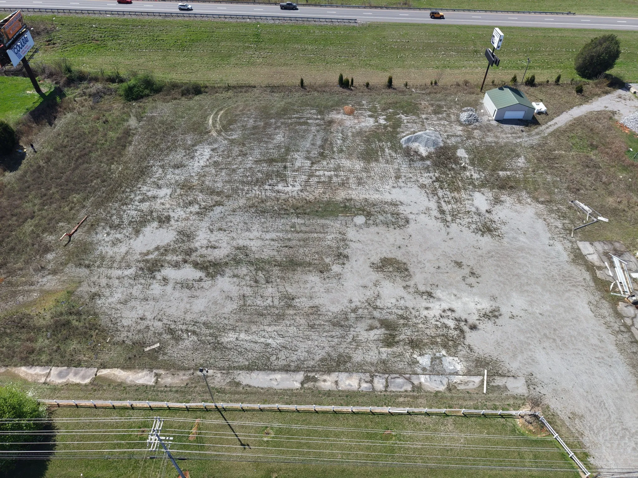 Property has excellent visibility from I-24 and located immediately off I-24 with +/- 475 frontage along west side of Alfred Thun Rd. and +/- 476 along east side I-24. There is a 1904 SF office building and a 900 SF storage shed. Zoning is M-2- General Industrial with utilities at property.