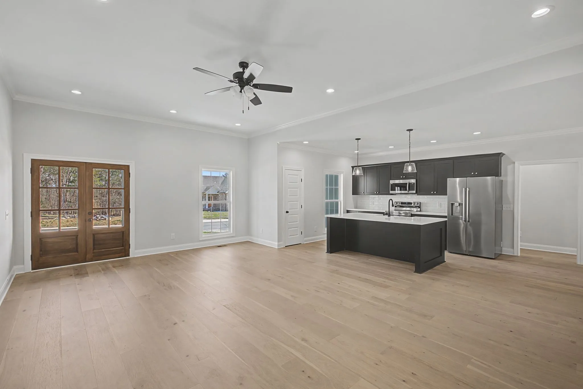Move-in ready! New Construction meets modern farmhouse charm located in the boutique sized addition of the existing Stonegate Subdivision on +/- .56 acre lot! This stunning new build features crisp board-and-batten siding, bold accents, two car garage, front yard sod, and landscaping for timeless curb appeal. Inside, the open concept layout is filled with natural light, gorgeous hardwoods, carpet, quartz tops throughout, custom closet built-ins, creating a seamless flow between the kitchen, dining, and living. Enjoy soft close black cabinets, island, and a built in pantry for extra storage. The spacious primary suite features a beautiful bath with double vanities, soaker sub, and a gorgeous tile shower. Relax on the rocking chair front porch or enjoy a more private setting on the spacious rear covered porch overlooking a lovely back yard. Conveniently located near schools, recreation and the heart of Shelbyville – this one is yours to call home! Builder is offering up to $10,000 in closing assistance. Stainless steel appliances to include refrigerator.