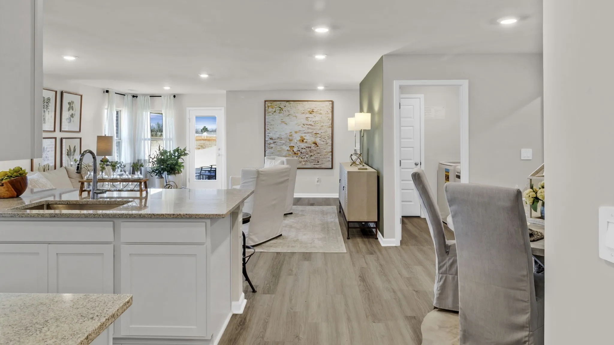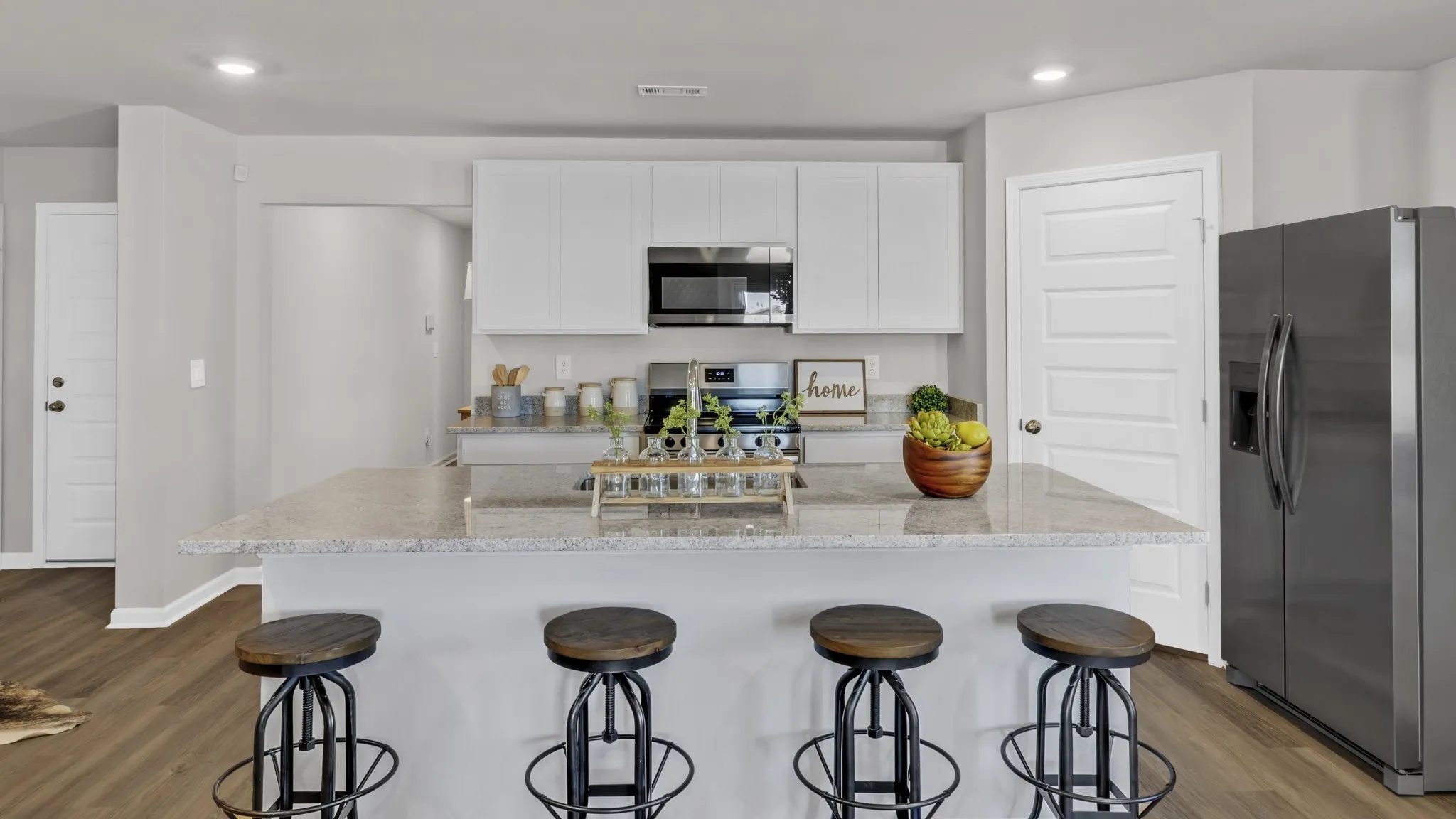 MOVE-IN READY! The Lakeside home offers 5-bedrooms, 3-bathrooms, and over 2,000 sq ft. Two bedrooms share a full bath near the entry, while two more, a bath, and laundry are on the opposite side. The kitchen features granite or quartz countertops, an island, stainless steel appliances, and a pantry, all open to the dining and main living rooms. The primary suite includes a double vanity, walk-in shower, and a spacious walk-in closet. A back porch completes this inviting layout. Photos may be of a similar home and are for representational purposes only. America’s Smart Home