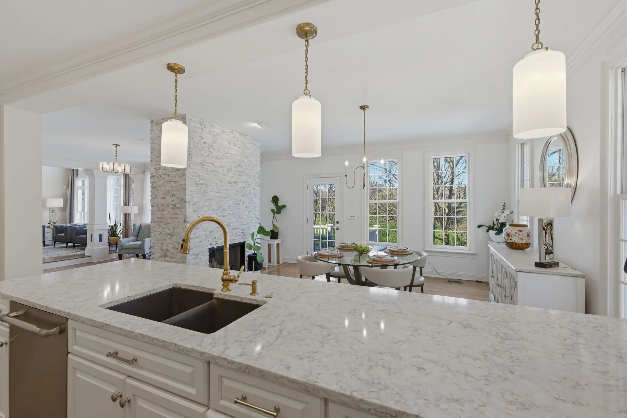 Located in the highly sought-after McGavock Farms community in the heart of Brentwood, this beautifully updated home offers space, natural light, and a private park-like backyard with a peaceful creek. The main level features a renovated white kitchen with JennAir appliances, quartz countertops, island seating, and abundant cabinetry, complemented by warm, designer-selected finishes that add character and contrast throughout the home. Two dining areas provide flexibility for both everyday living and entertaining. A dramatic two-story great room with a wall of windows and a two-sided stacked stone fireplace fills the home with natural light. The upgraded primary suite, six bedrooms, and five and a half baths provide excellent space for family and guests. The walkout basement includes a gym, media room, and billiard space, while the three-car garage features epoxy floors and workshop space. Zoned for Scales Elementary, and walk-able to Brentwood Middle & Brentwood High Schools. Just minutes from Brentwood’s grocery, retail, dining, and I-65 access with convenient access to downtown Nashville.