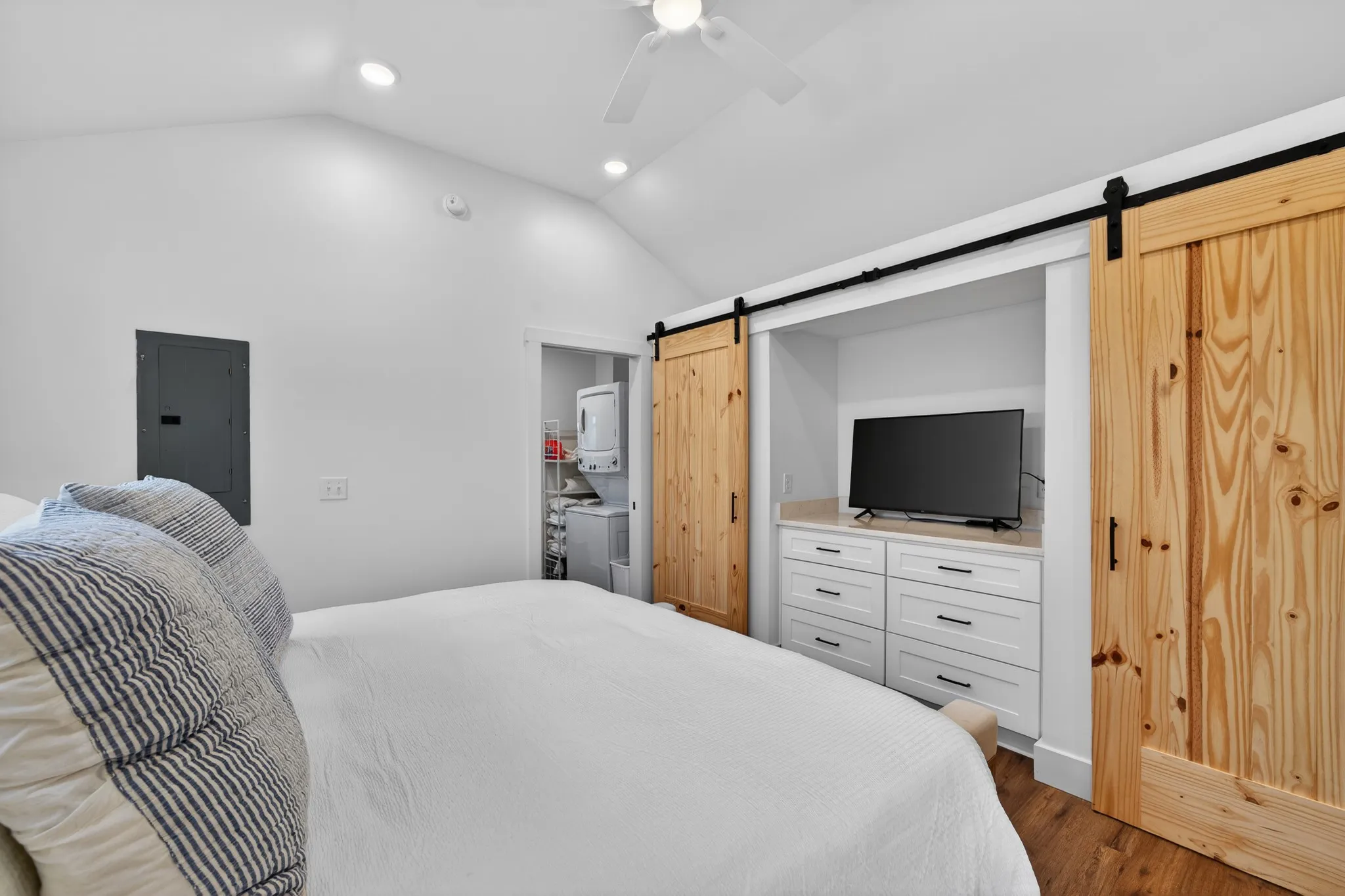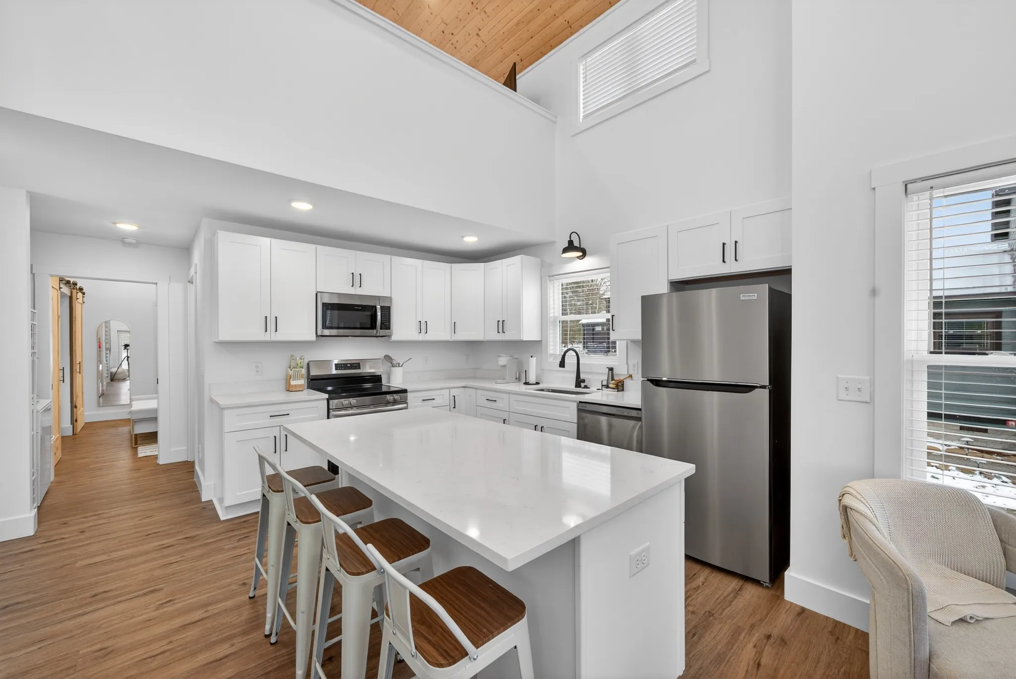 Own a piece of WATERFRONT paradise in the gated Retreat at Water’s Edge. This brand new, never-lived in, fully furnished custom home offers stunning panoramic views of the quiet lake, and high-end finishes. The private cottage, with vaulted ceilings, natural wood, designer kitchen, main-floor primary suite, and massive porch, is a unique opportunity to acquire your year-round vacation property for personal use, or as an income-generating asset, or both.