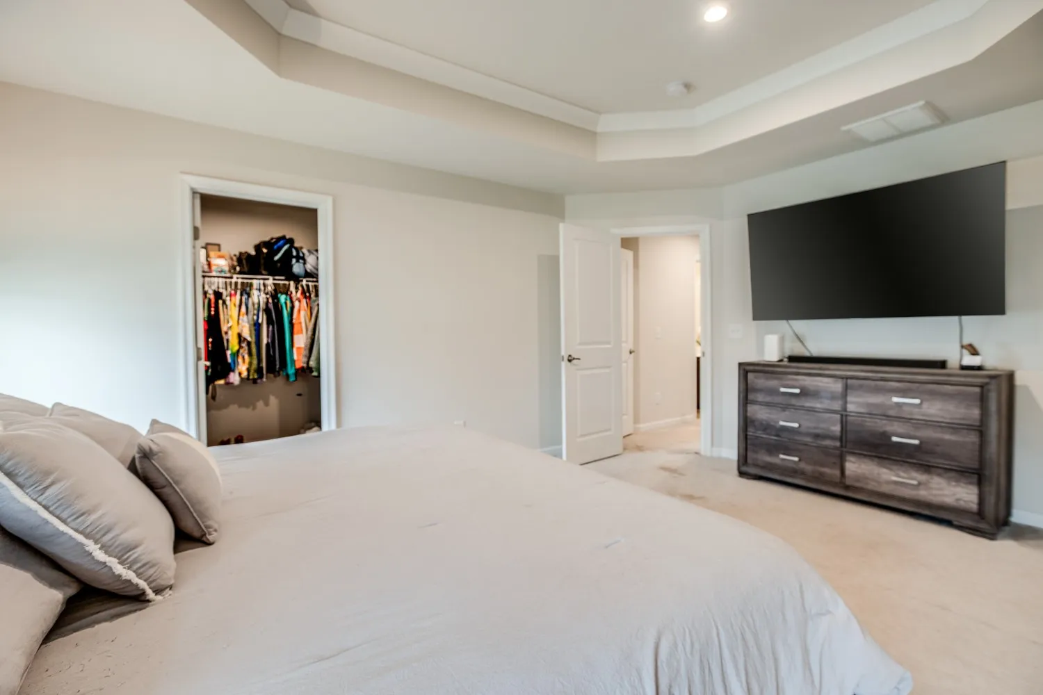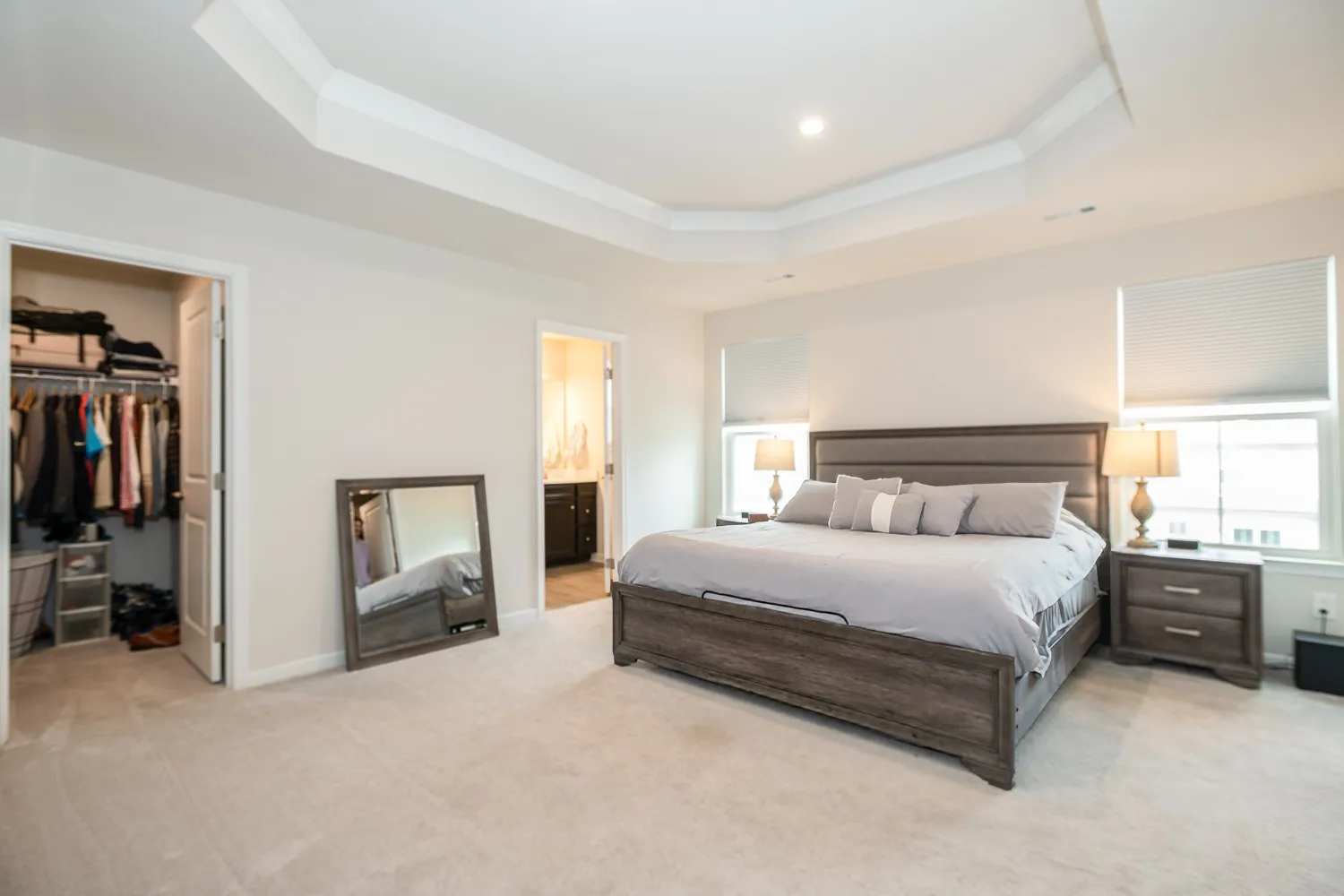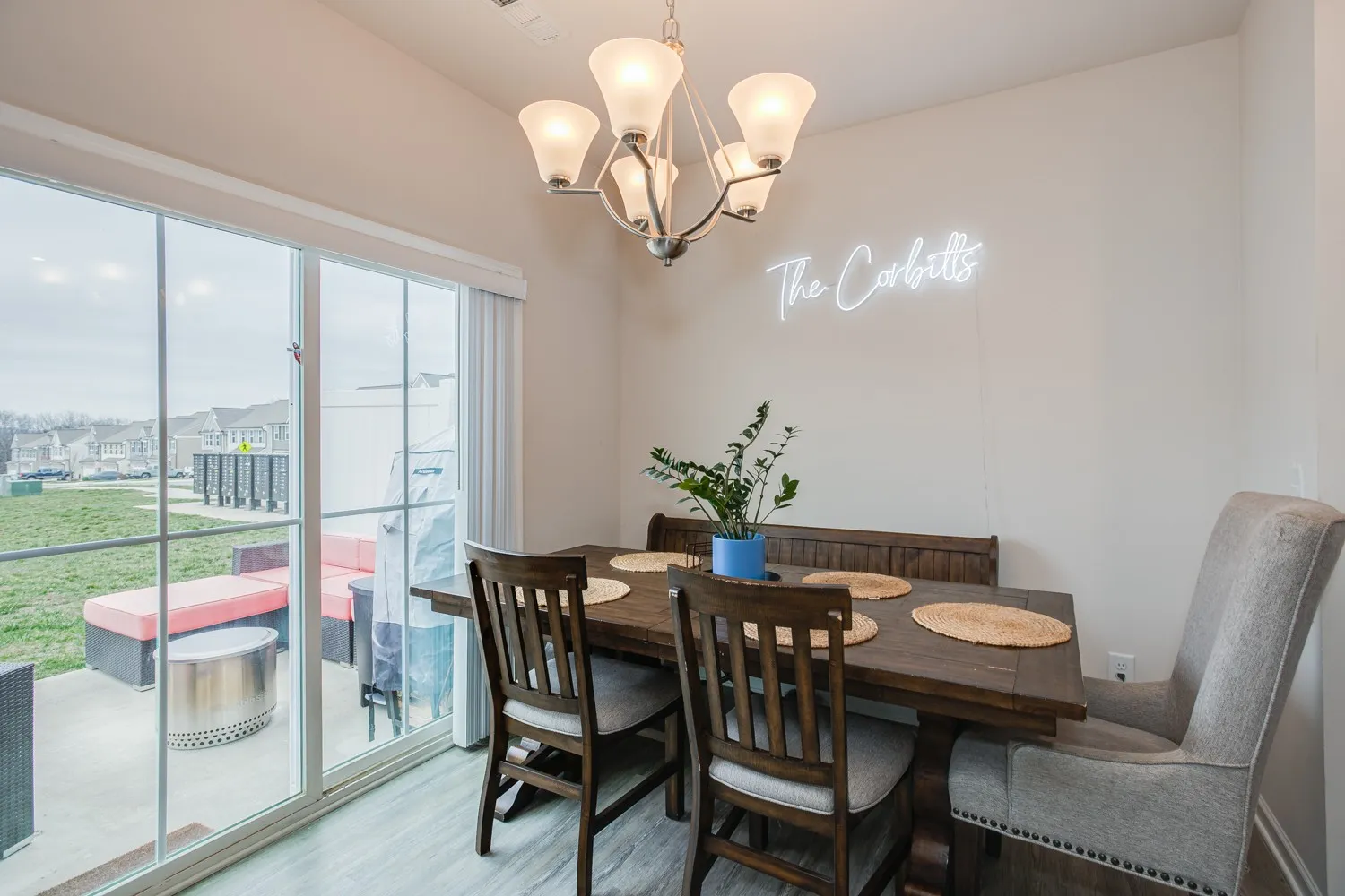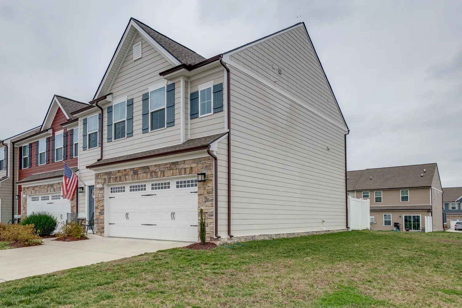 End unit with grassy lawn behind home and the ability to fence in at tenants expense! Spacious 3 bedroom, 2.5 bathroom with a 2 car attached garage. Open floor plan. The kitchen has quartz countertops, stainless appliances, and LVP. Large Owners suite with treyed ceiling features his and her walk in closets, Dual vanities in Owner’s Bath with 2 head Roman shower. Secondary bedrooms are spacious with tons of natural lighting. Electric car charger in garage. Fabulous neighborhood!