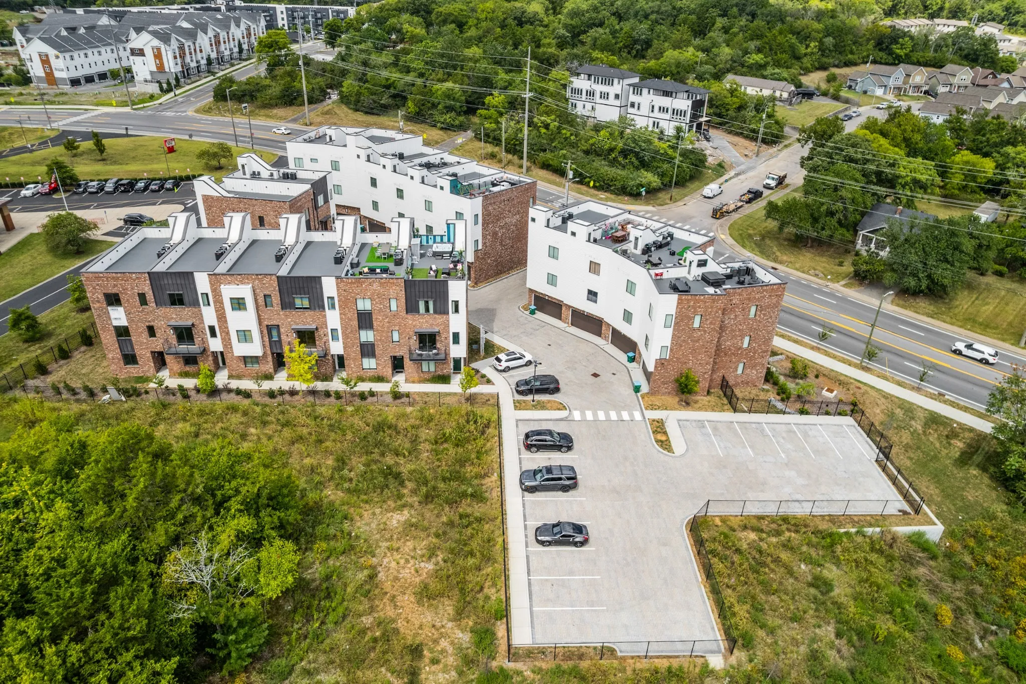 Positioned within the evolving East Bank and Riverside development corridors, this neighborhood is poised for significant growth with forthcoming parks, retail, and dining destinations. Residents will enjoy seamless connectivity—just minutes from major highways, East Nashville, Germantown, and Downtown—offering a balance of convenience and vibrant urban living. These 3-story townhomes feature 4 bedrooms and 4 full bathrooms, along with an attached 2-car garage and additional guest parking. The open-concept living area flows into a sophisticated designer kitchen, ideal for everyday living and entertaining. Bedrooms on each level provide comfort and privacy, complemented by generous walk-in closets. Premium finishes throughout include stainless steel appliances, quartz countertops, upgraded fixtures, real hardwood floors, and expansive natural light. A spacious rooftop terrace showcases panoramic views of the downtown skyline and Cumberland River—perfect for both unwinding and hosting guests. With strong rental demand in this rapidly developing area, these homes present exceptional potential for both long-term and short-term investment opportunities.