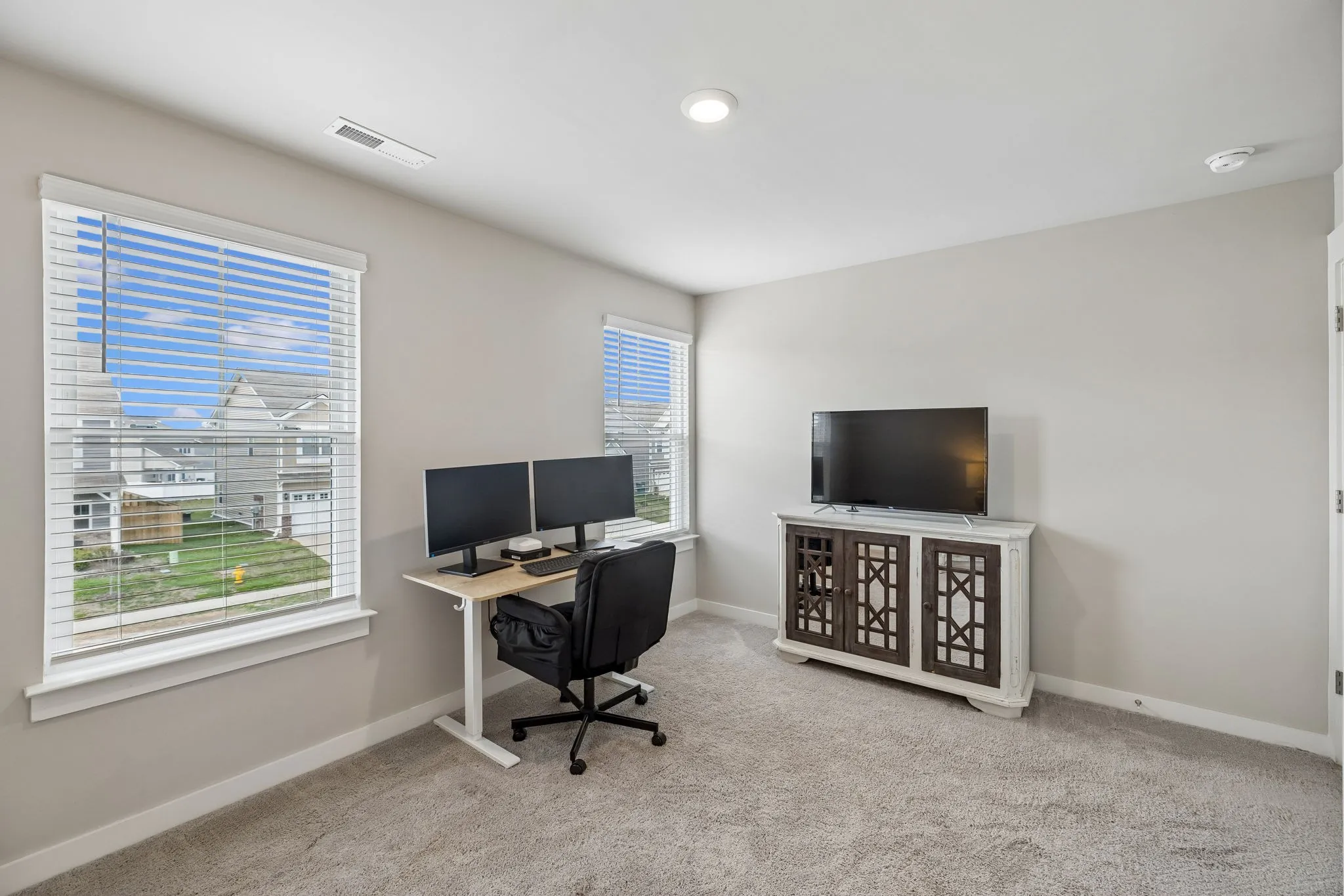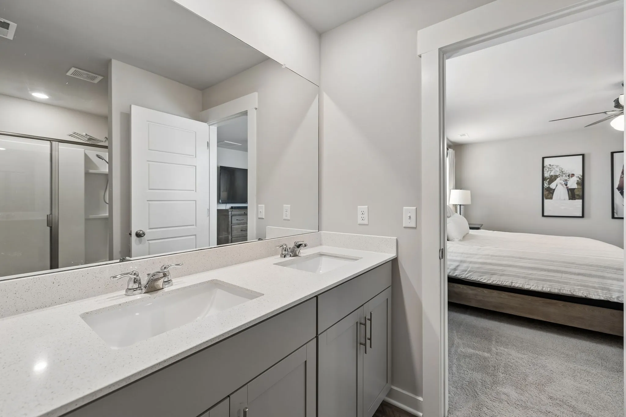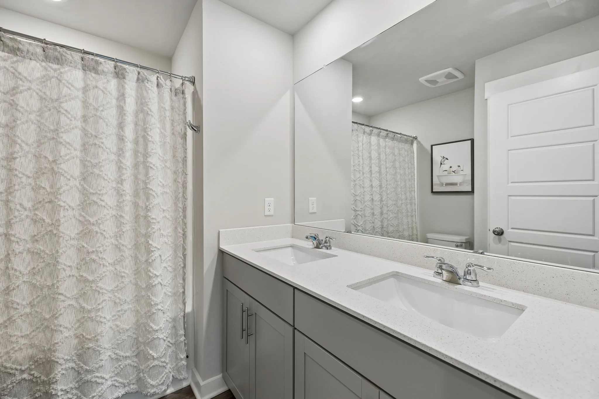 Upstairs, you’ll find four bedrooms, two full bathrooms, and a centrally located laundry room for added convenience. The primary suite offers a relaxing retreat with a walk-in closet, double vanities, and a walk-in shower.