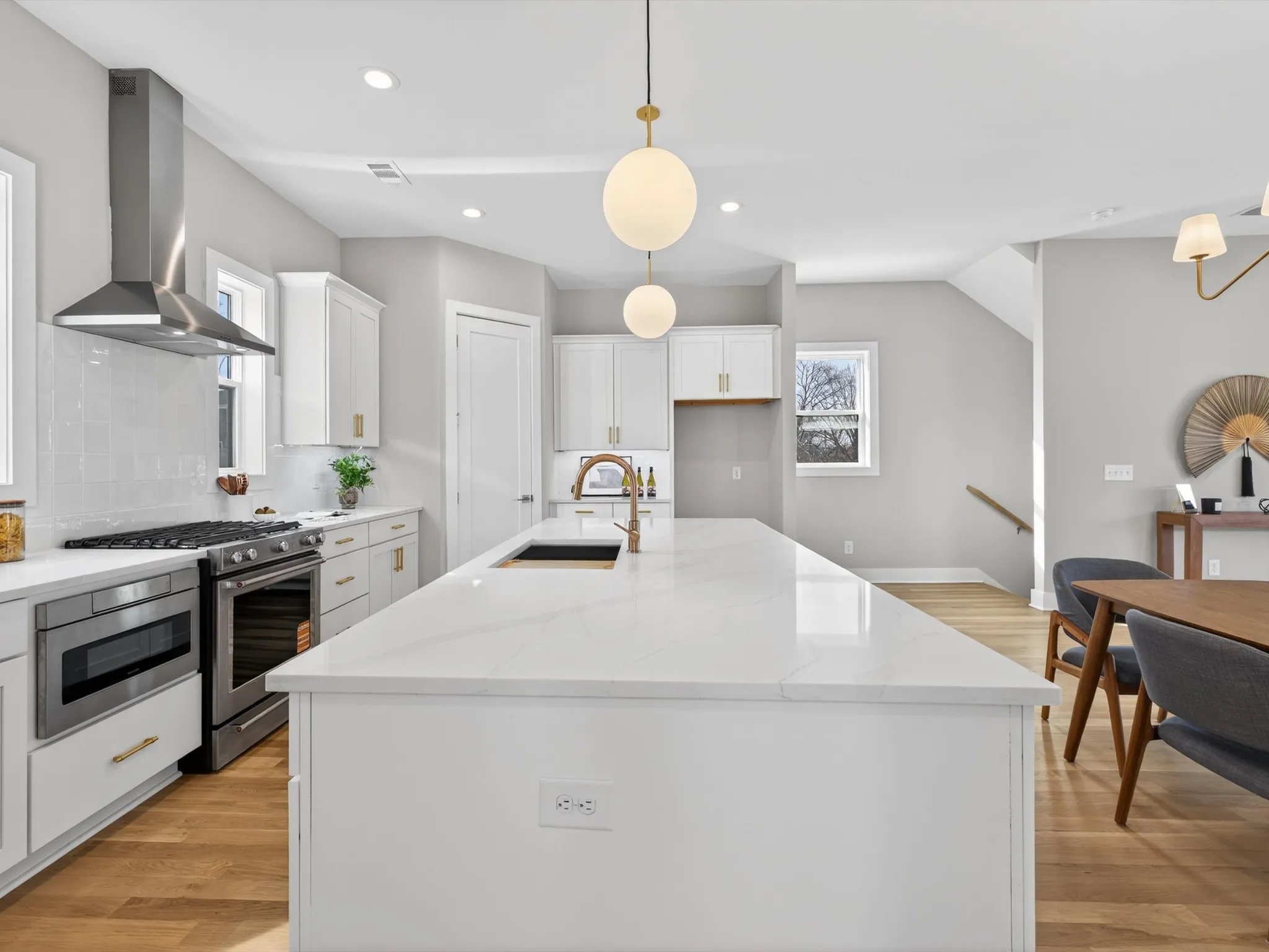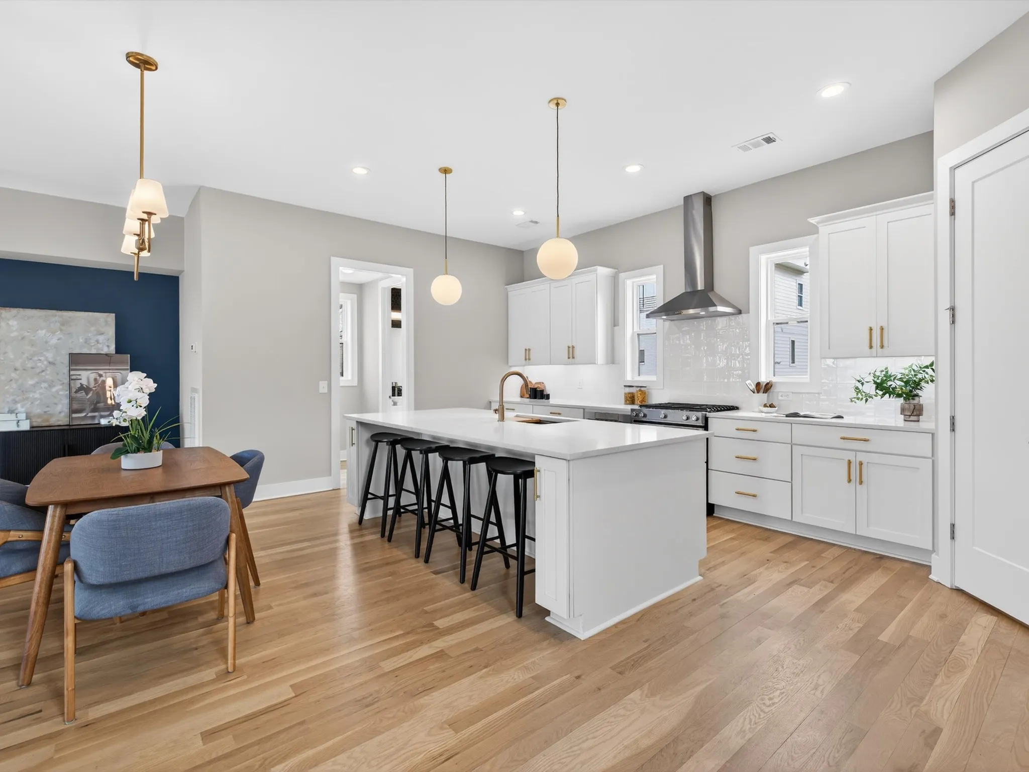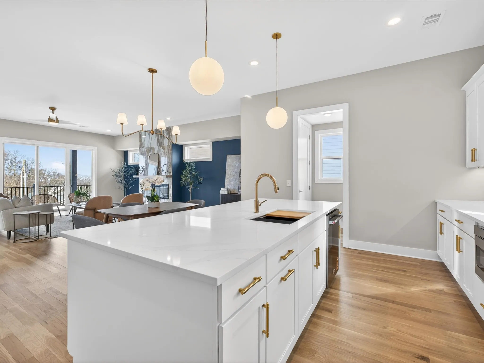 The versatile floor plan features a private first-floor suite with its own entrance, full bath, walk-in closet, and wet bar—ideal for guests, multi-generational living, or rental income potential. Inside, you’ll find refined finishes throughout, including quartz countertops in every space, soft-close cabinetry, designer lighting, and 2×6 exterior walls with R-19 insulation.