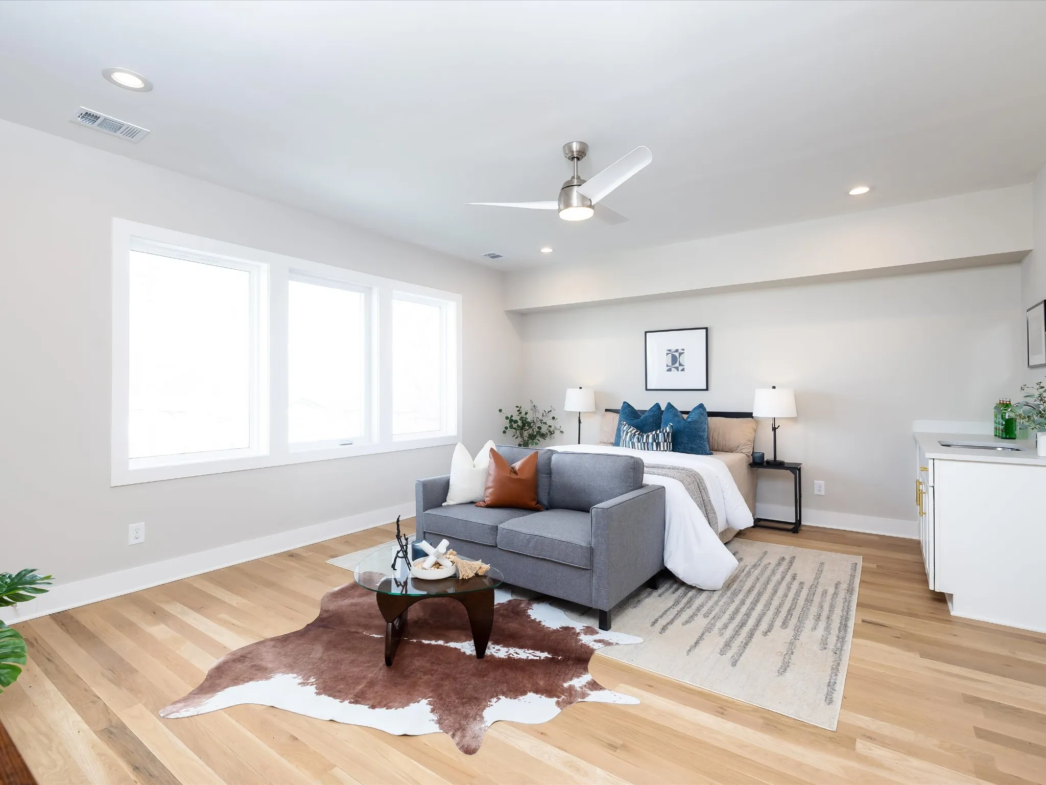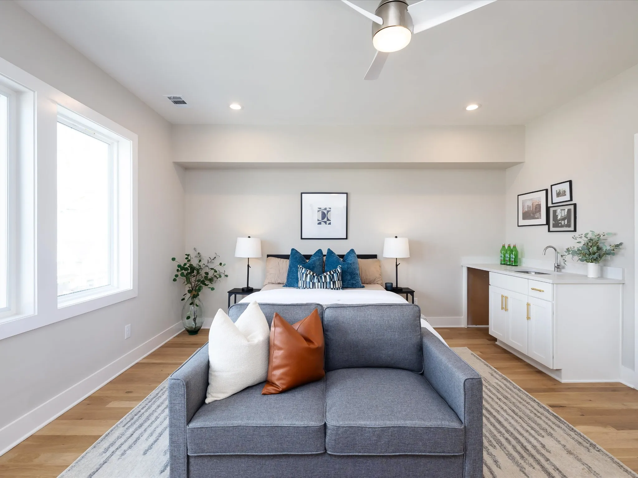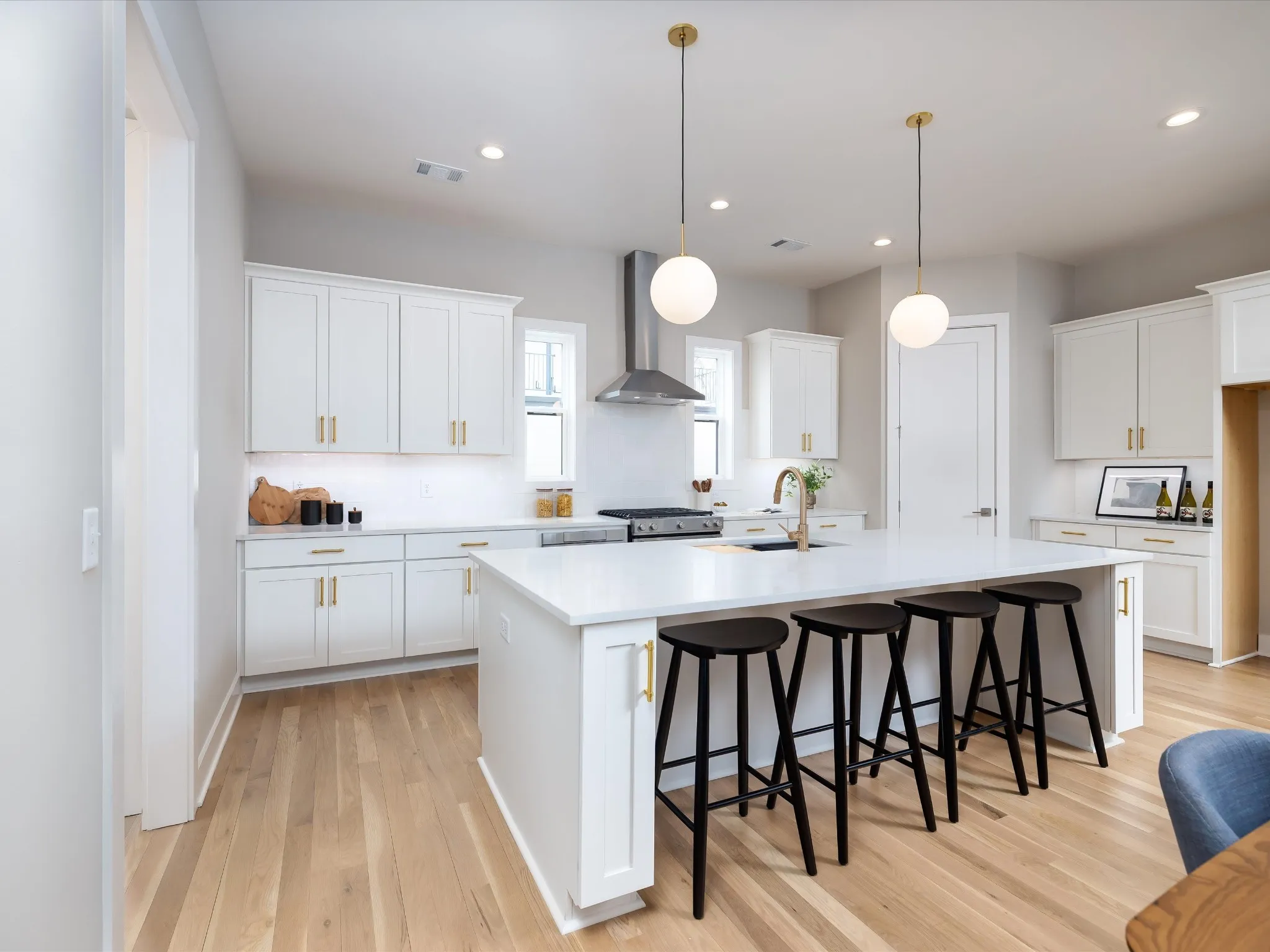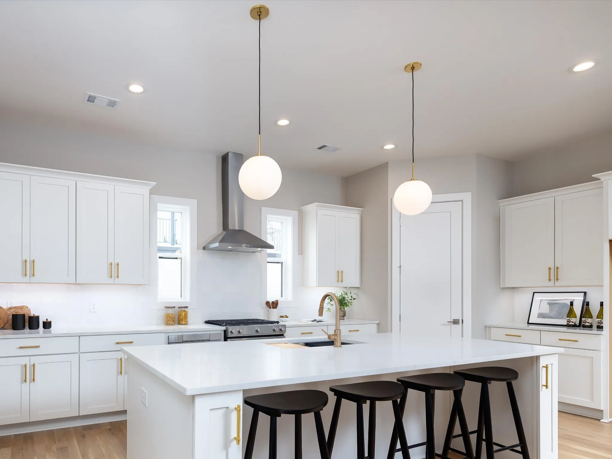 The versatile floor plan features a private first-floor suite with its own entrance, full bath, walk-in closet, and wet bar—ideal for guests, multi-generational living, or rental income potential. Inside, you’ll find refined finishes throughout, including quartz countertops in every space, soft-close cabinetry, designer lighting, and 2×6 exterior walls with R-19 insulation.