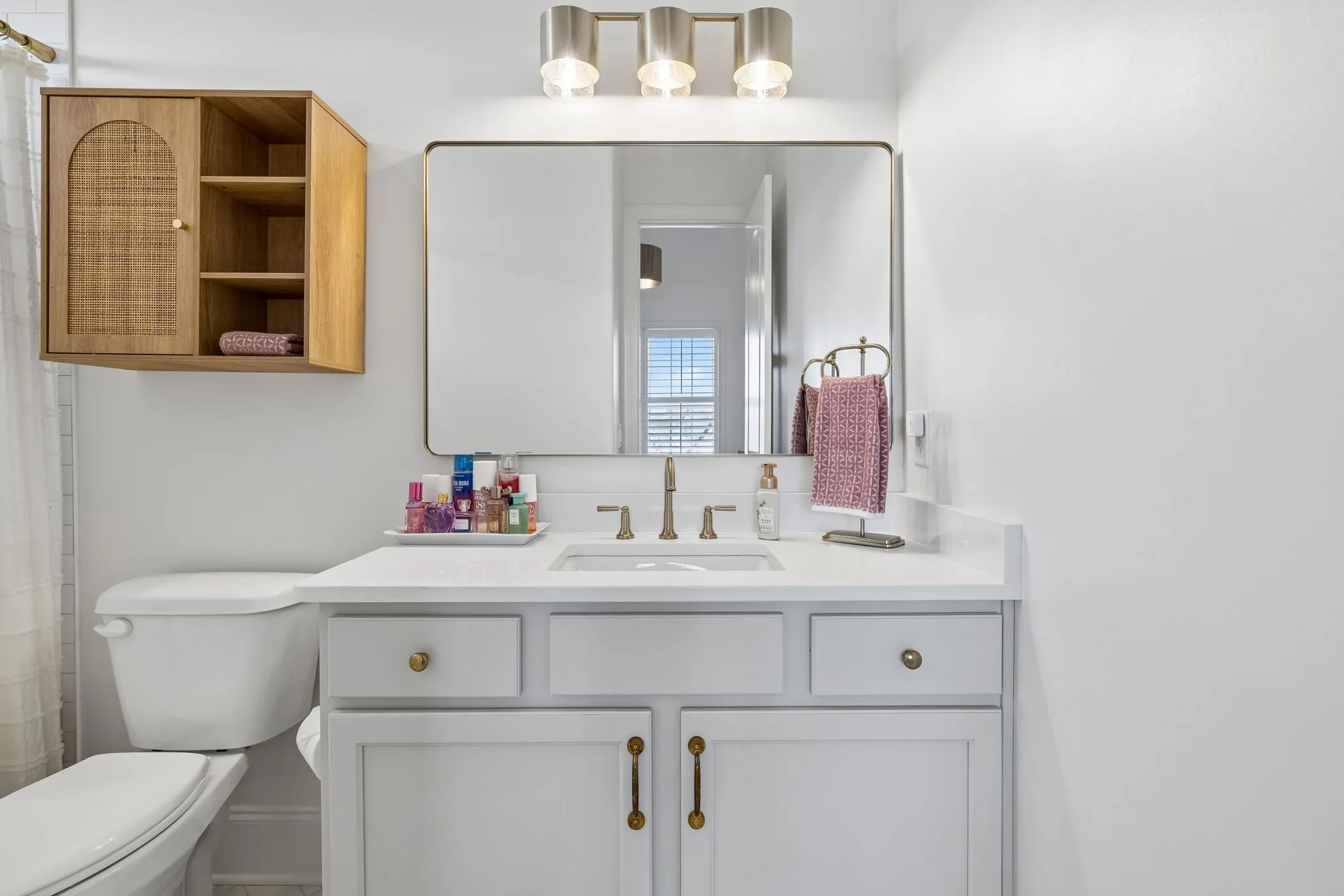 The main level offers incredible flexibility with two bedrooms, including a spacious primary suite, along with a formal dining room featuring a wet bar/butler’s bar for elevated entertaining. Additional highlights include white oak flooring, a large guest bath with designer wallpaper, an oversized laundry room, a built-in locker/drop zone, and dual staircases.