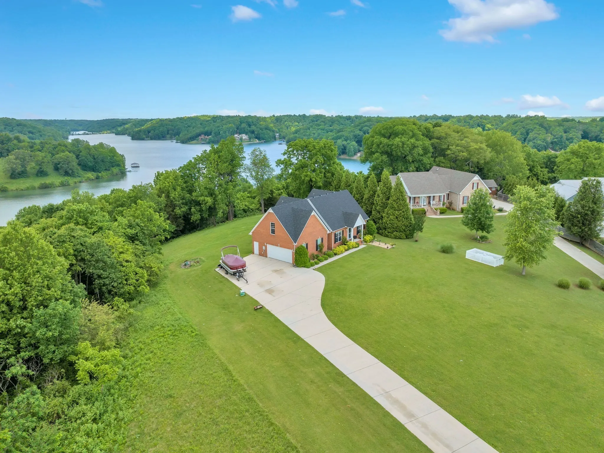 This home has always been a full time home, but this home would be great for a vacation home. NEW half bath downstairs for visitors. 15 minutes from Lynchburg Square & Jack Daniel’s Distillery. 5 minutes to 2 boat launches. Panoramic million dollar view of Tim’s Ford Lake from this beautiful property. NEW roof January 2024, NEW Main HVAC in May 2024. Large lot on a quiet cul de sac has direct lake access via attached TVA property (through a 9 ft wide cleared pathway that leads to the lake). Just a few minutes to toes in the water. Plenty of room to park your kayak or boat by the lake. The wide shoreline is perfect for camping, picnics, fishing. Kitchen has a wall oven & built in range, island with a lake view. The breakfast/dining area has sliding glass doors that open to the large main level deck, overlooking the beautiful Tim’s Ford Lake. Two story Living Room with custom built African slate fireplace. Hardwood floors throughout the main level. Master Suite is on the main level. 2nd floor includes a long enclosed Sun Room with spectacular lake views year round, no matter the weather. 2 more bedrooms, plus office. 550 sq ft of potential bonus room space. Plug in your RV with 50 amp by garage for extra accommodations. Underground utilities to the home so less power outage concerns. Large concrete drive with plenty of room for your boat, camper & vehicles.2 acres to play! Target practice allowed. NO HOA! Ask about preferred lender discount.