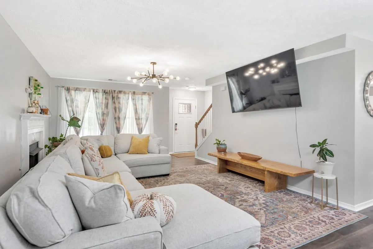Extensive upgrades throughout include new windows, hardwood stairs, hardwood flooring and trim in all bedrooms, and fresh trim paint. Updated lighting and ceiling fans add a clean, cohesive look.