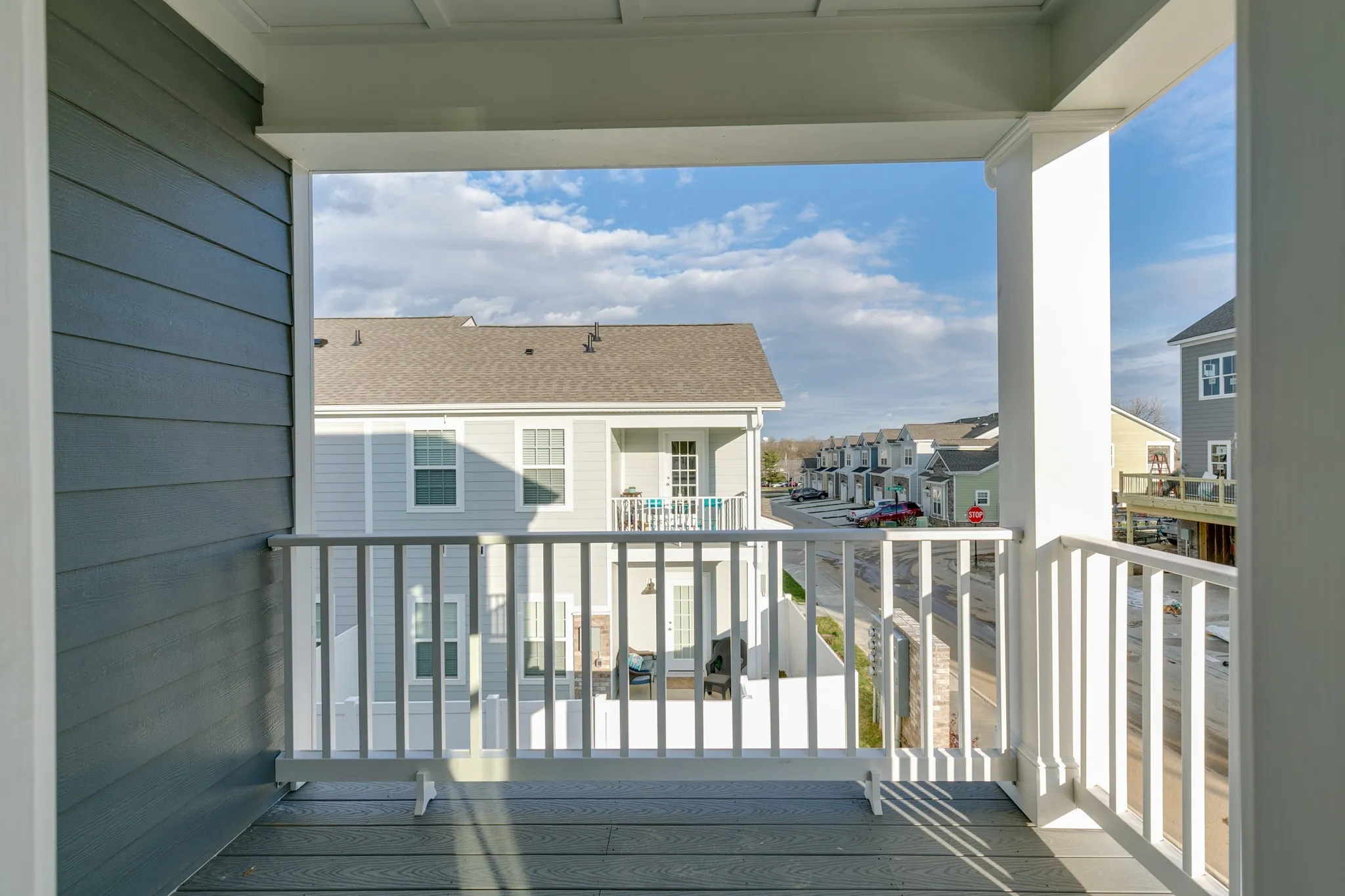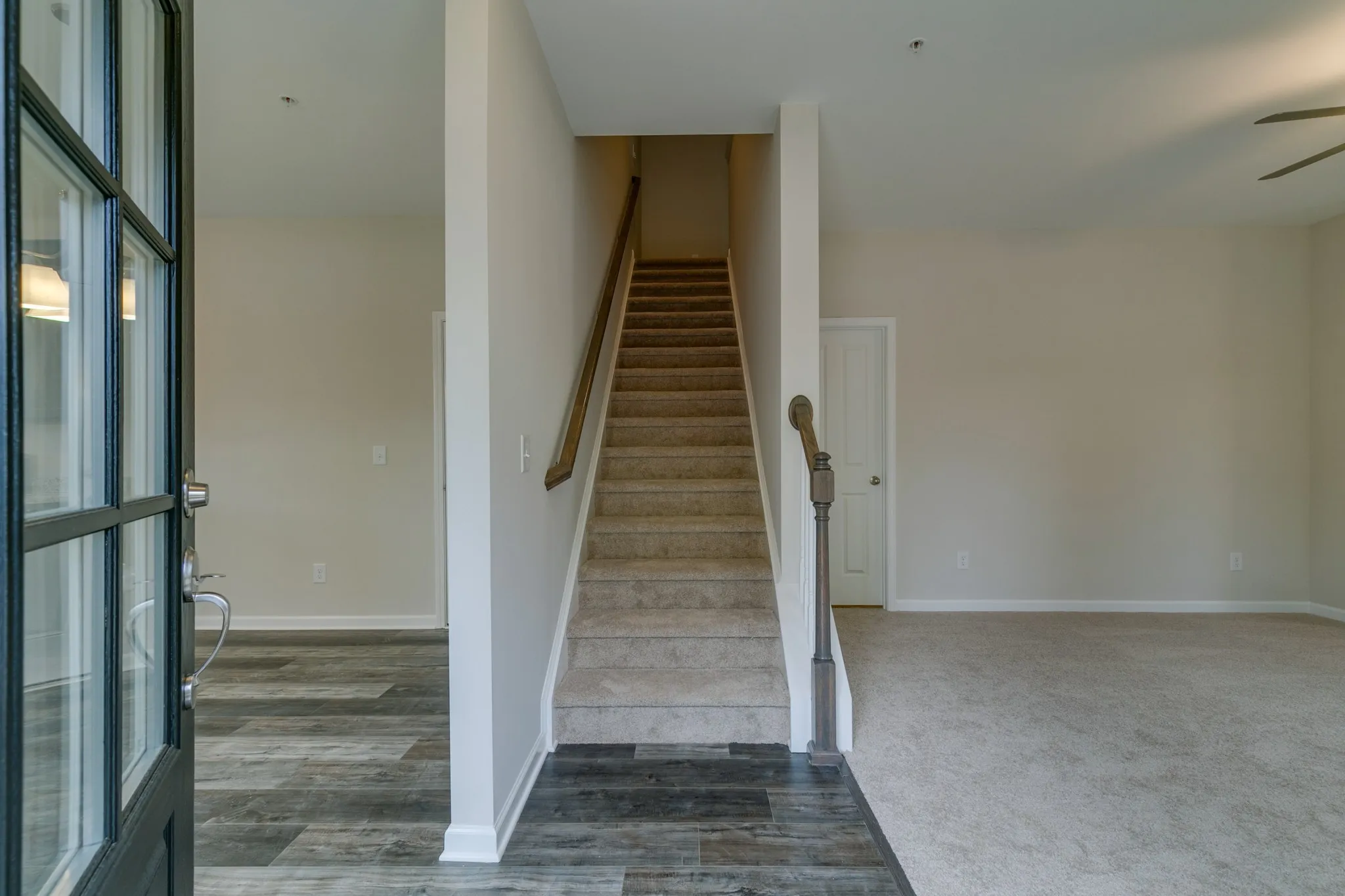 Upstairs, two additional bedrooms and a full bathroom provide flexibility for guests, a home office, or additional living space, while maintaining privacy from the main-level suite.