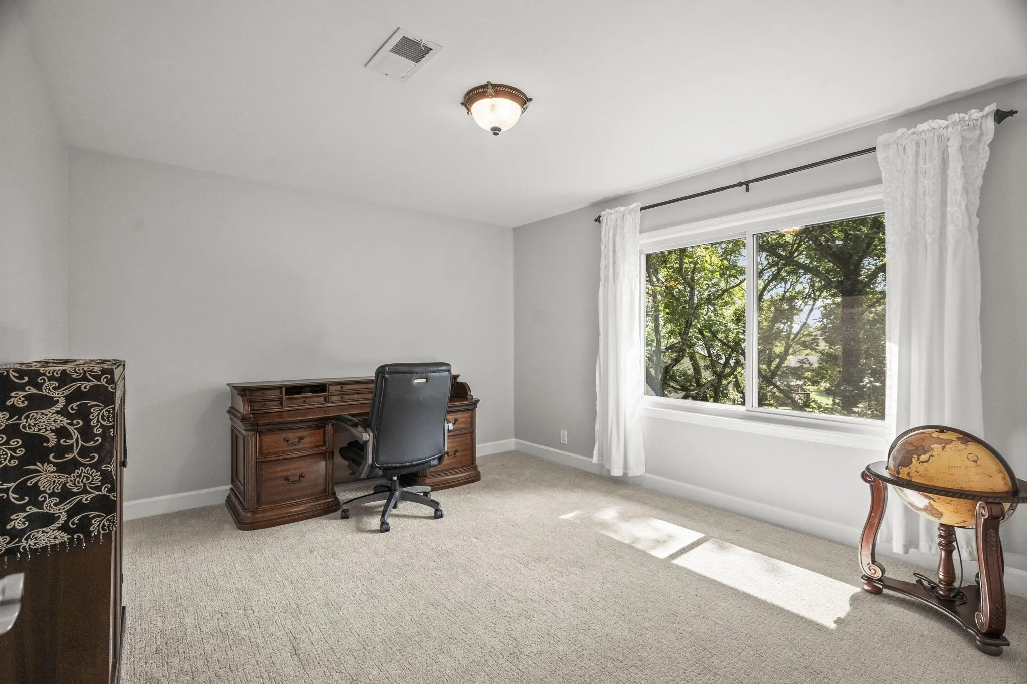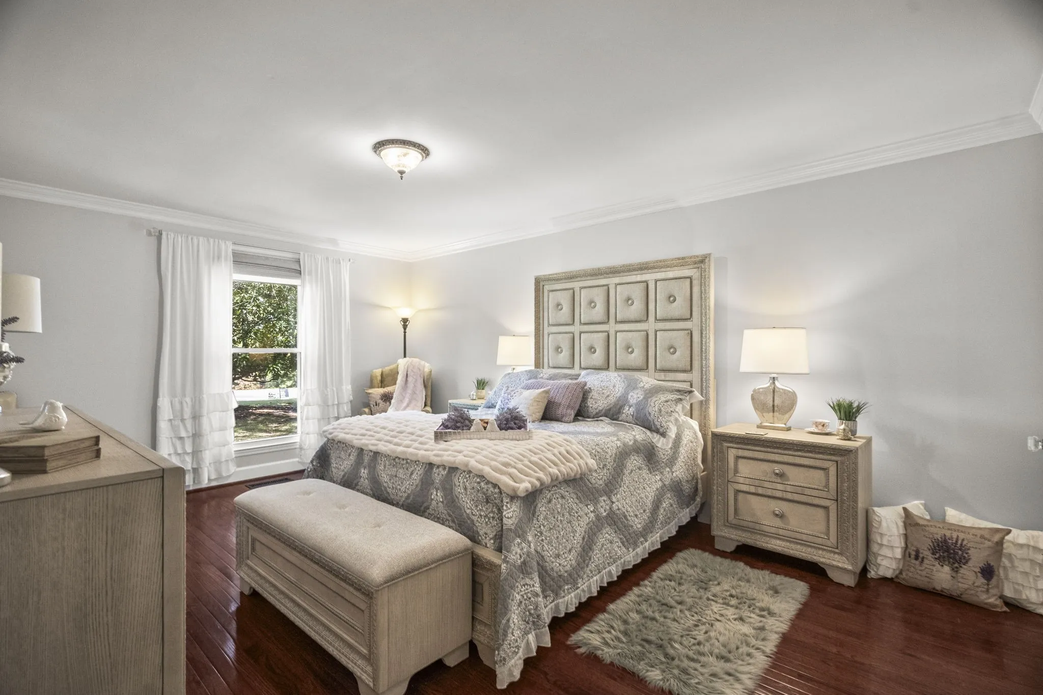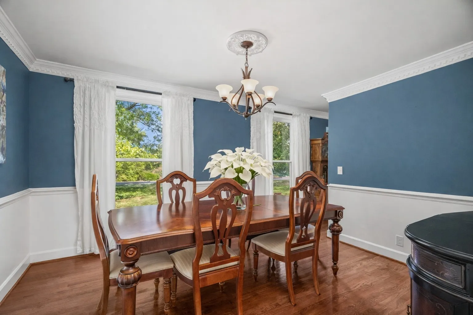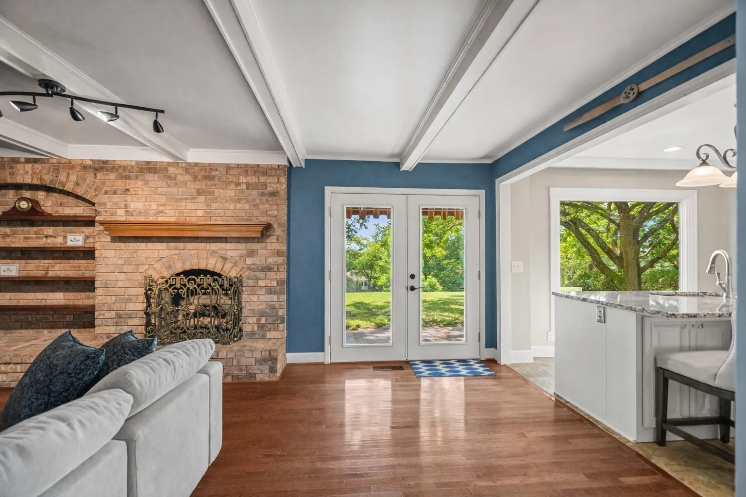 Elegant Flooring: Gorgeous real hardwood floors flow throughout the main living areas, while new carpet upstairs adds a cozy touch.