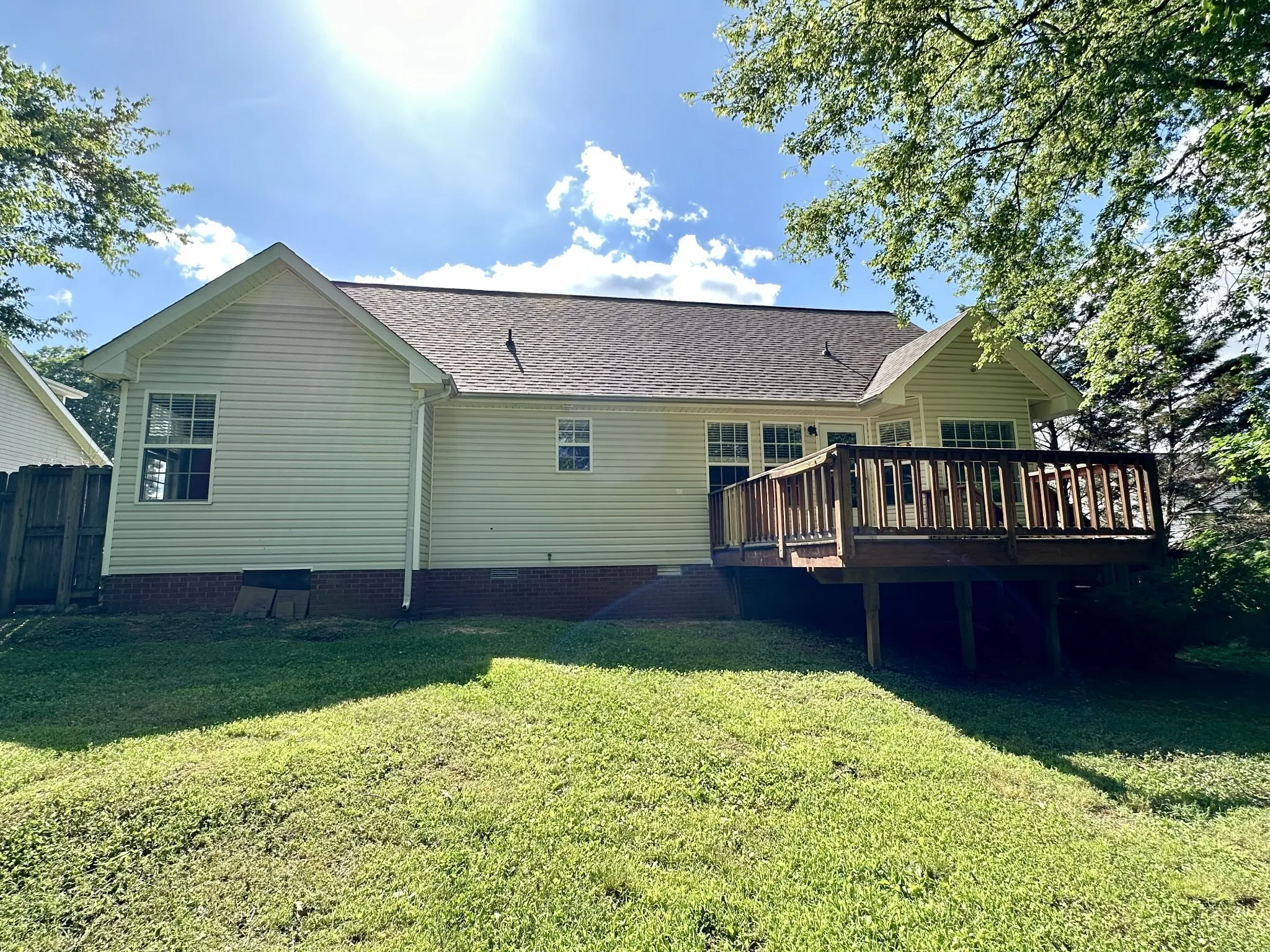 Beautiful 3-bedroom, 2-bath ranch-style home featuring vaulted ceilings, an open and spacious floor plan, and abundant natural light throughout. The inviting country kitchen offers a cozy eat-in area, perfect for everyday dining. A split-bedroom layout provides added privacy, with a generously sized primary suite set apart from the secondary bedrooms. Upstairs, a large BONUS room offers flexible space for a home office, media room, or playroom. Step outside to enjoy the fully fenced backyard and relaxing back deck, all surrounded by mature trees that provide a peaceful, private setting.