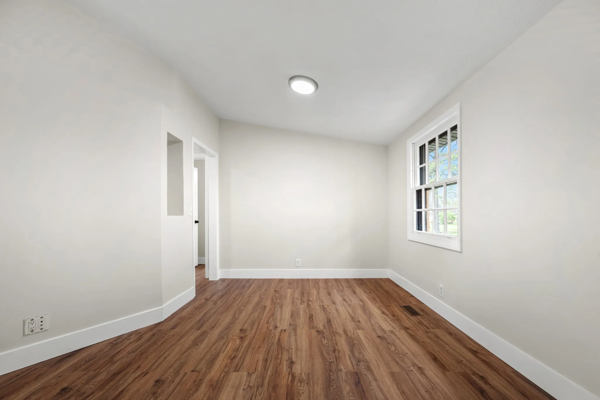 The interior is cozy and comfortable, and it has been recently renovated. Significant upgrades include a New Roof in 2023 and HVAC system installed in 2023. Quartz countertops, New light fixtures, and New flooring installed in 2026. Additionally, the seller is offering a $2,500 credit for a New Refrigerator and providing a one-year home warranty for the buyers.